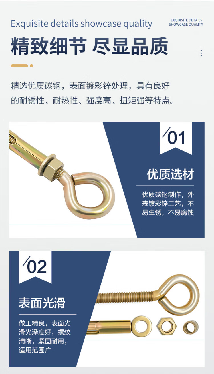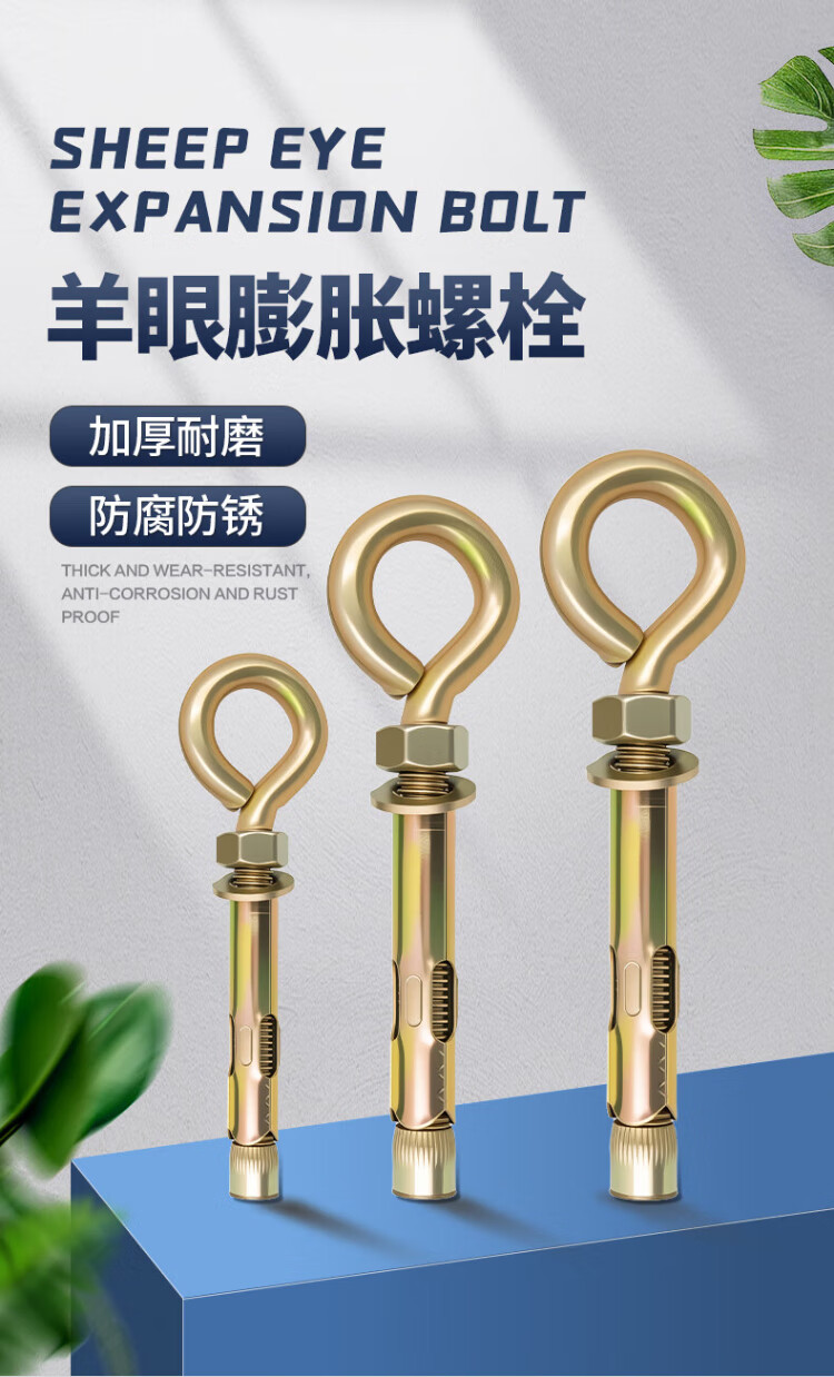 Tianhou Expansion Screw Sheep's Eye Lifting Ring Galvanized Lifting Ring Inner Expansion Circle Sandbag Swing Hook Pull Explosion M6*65 (10 pcs.)