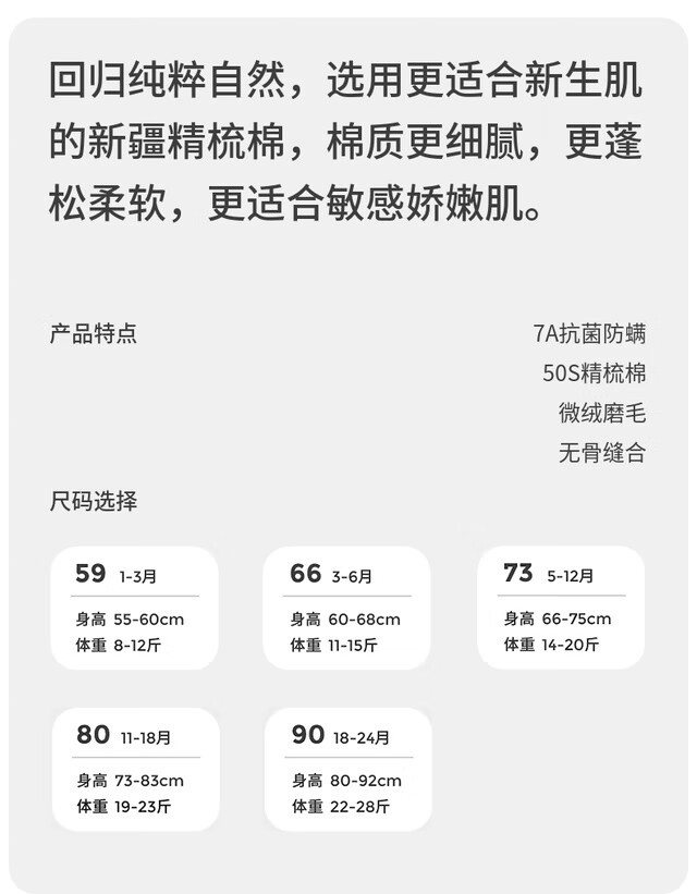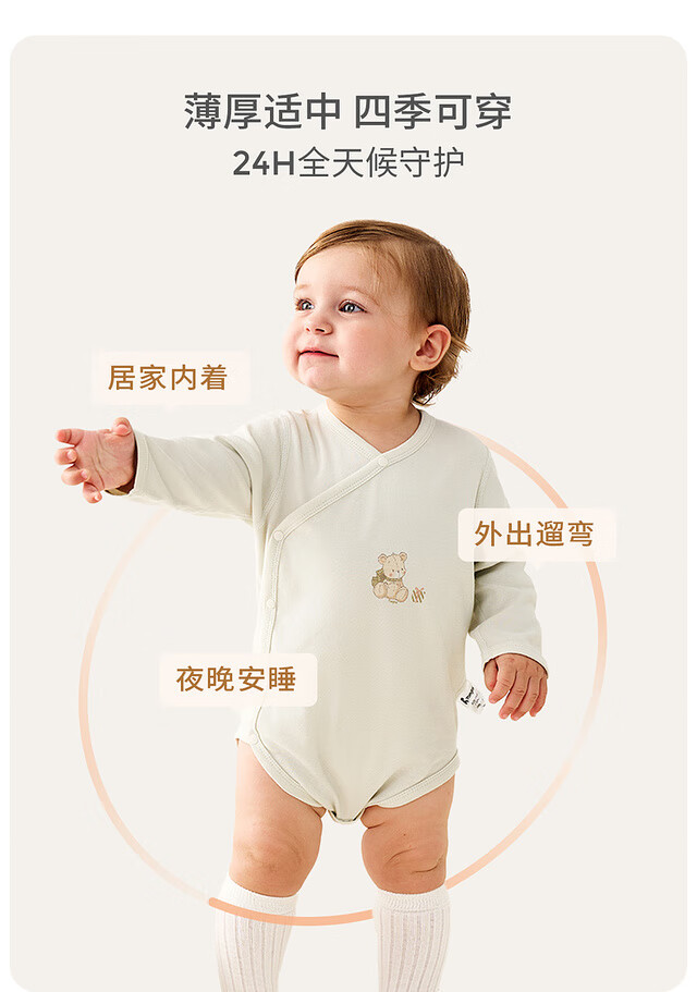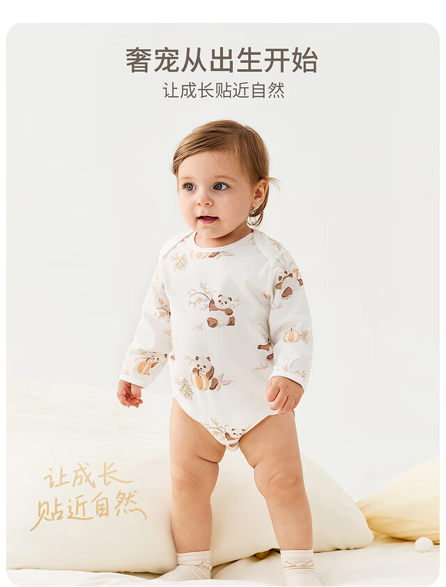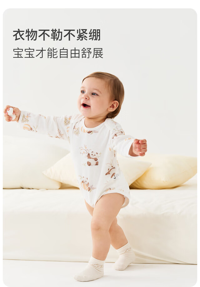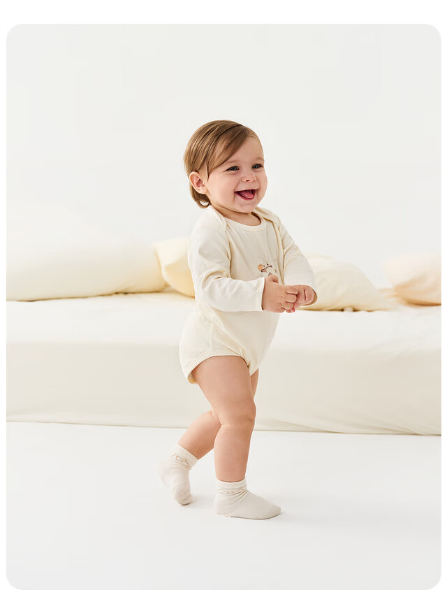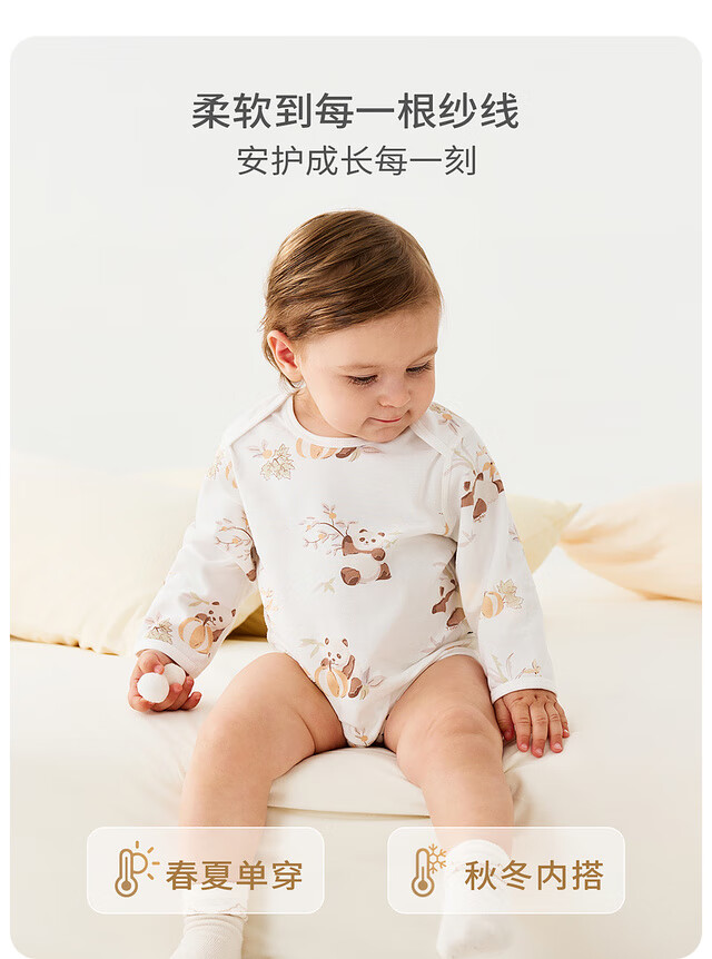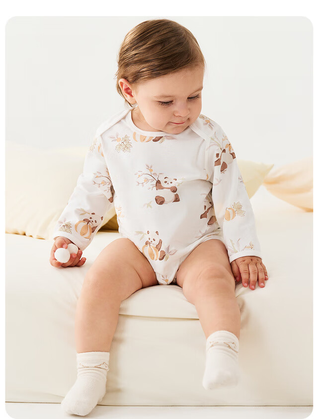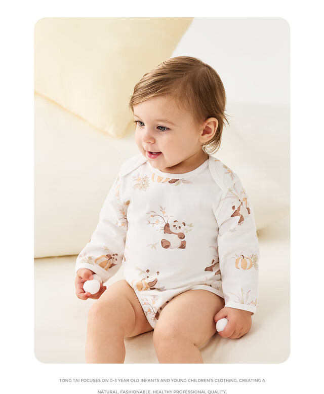 Tongtai (TONGTAI) baby bag, spring and autumn pure cotton newborn clothes, baby jumpsuit, triangle romper, off-white 90cm