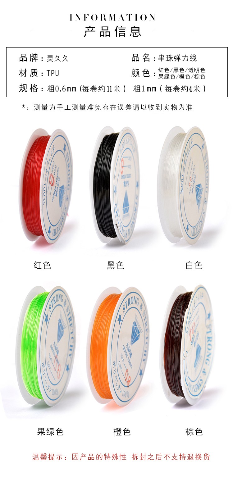 Lingjiujiu elastic thread bracelet, rubber band bracelet thread, beaded thread bead rope bracelet thread, crystal Wenwan Buddha beads rope, transparent color 1.0MM