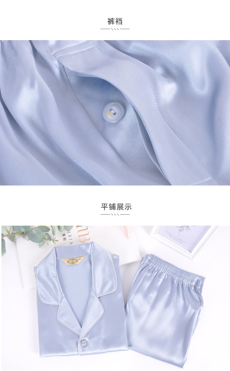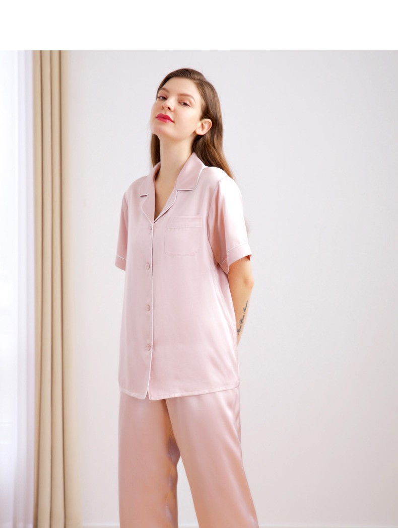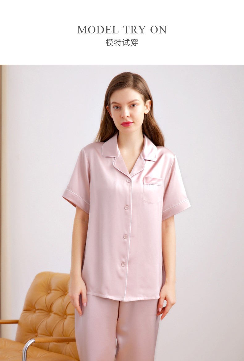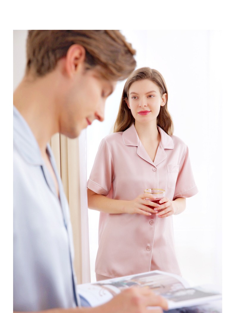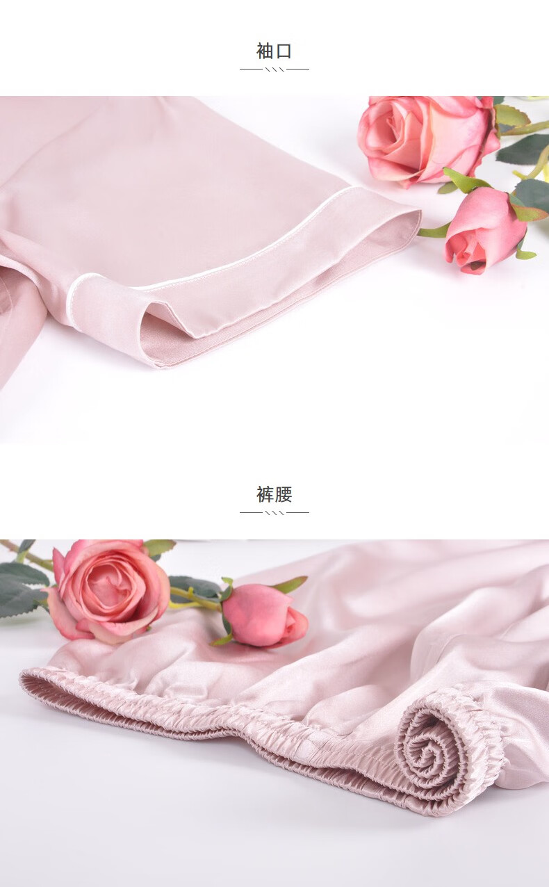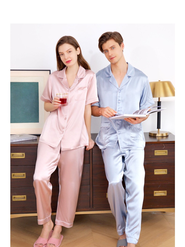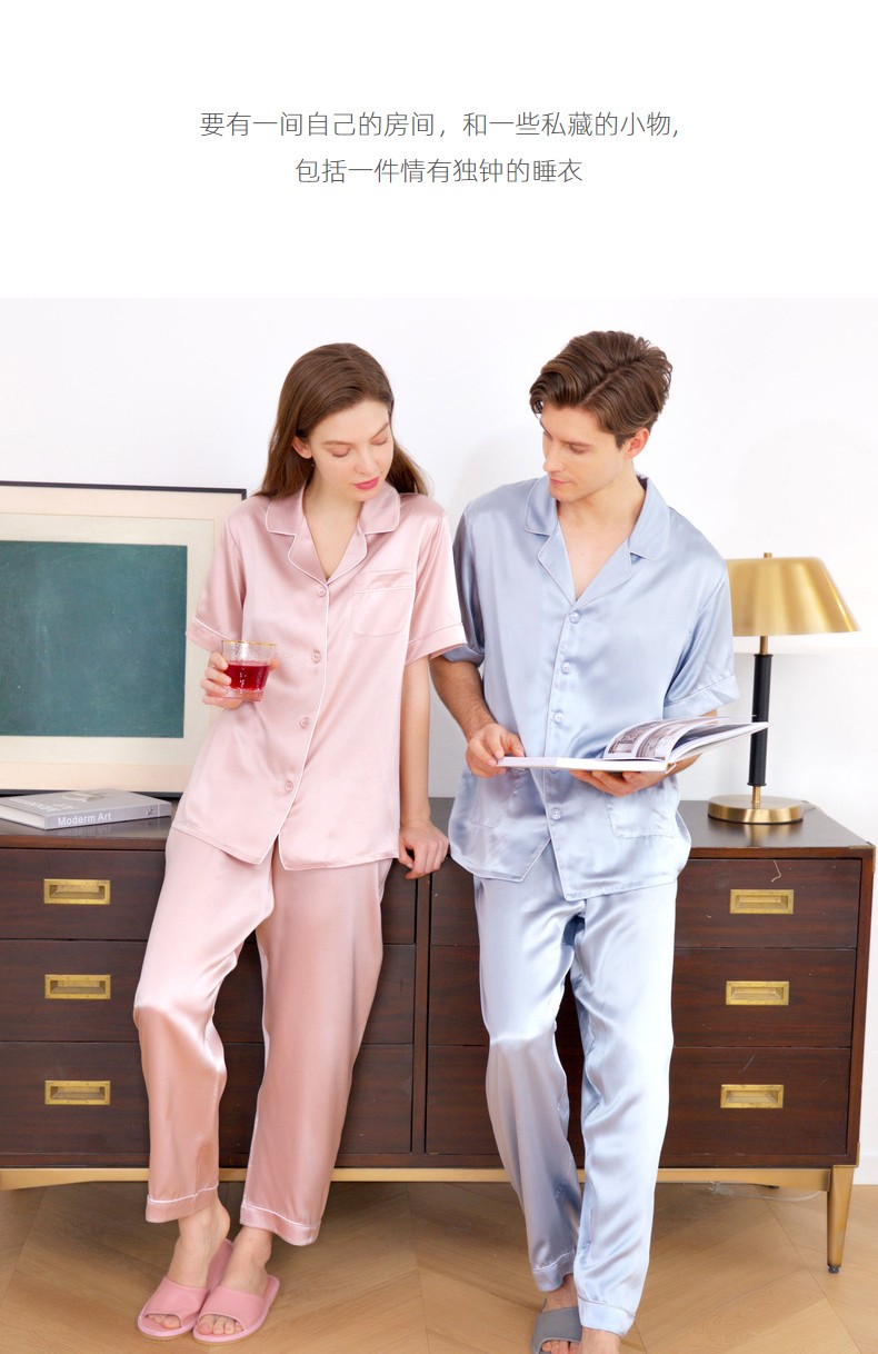 American Standard 19 Momi silk couple pajamas spring and summer women's short-sleeved trousers mulberry silk home clothes rose smoke powder XL