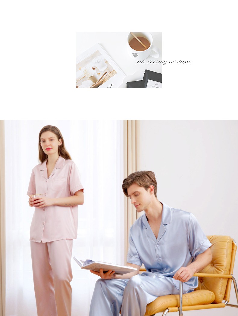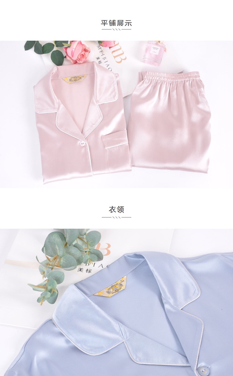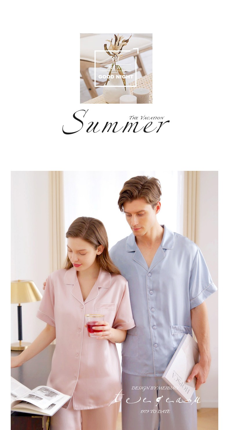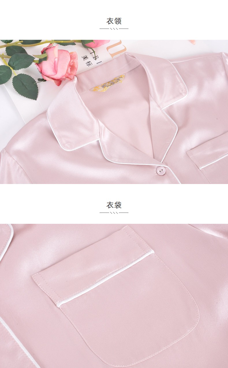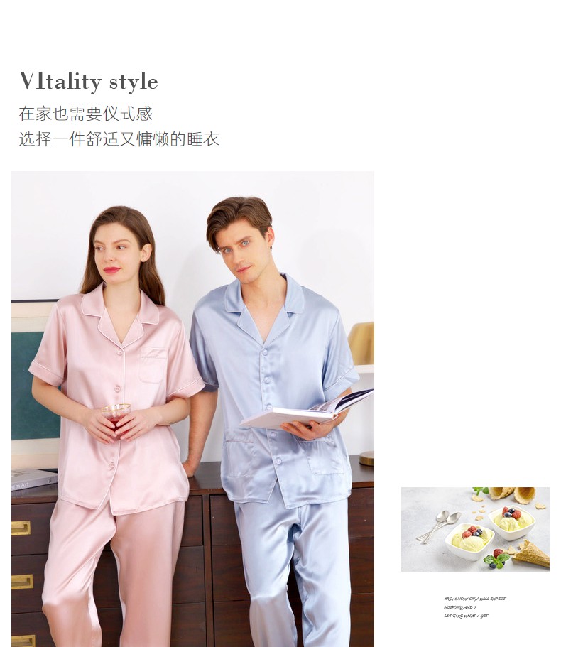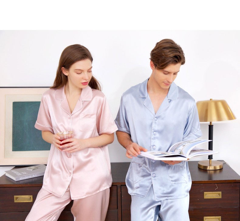 American Standard 19 Momi silk couple pajamas spring and summer women's short-sleeved trousers mulberry silk home clothes rose smoke powder XL