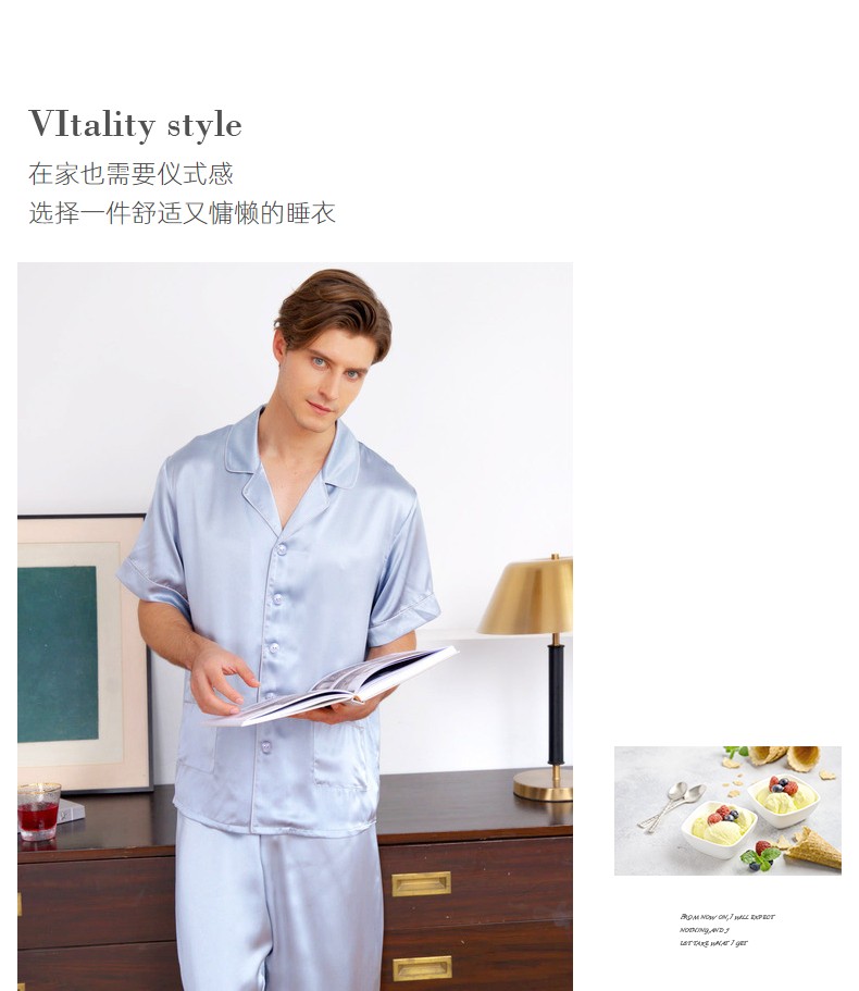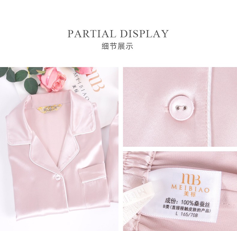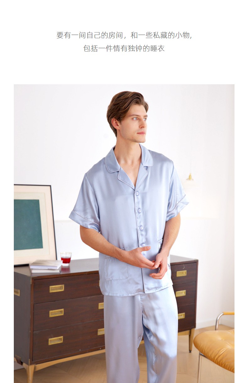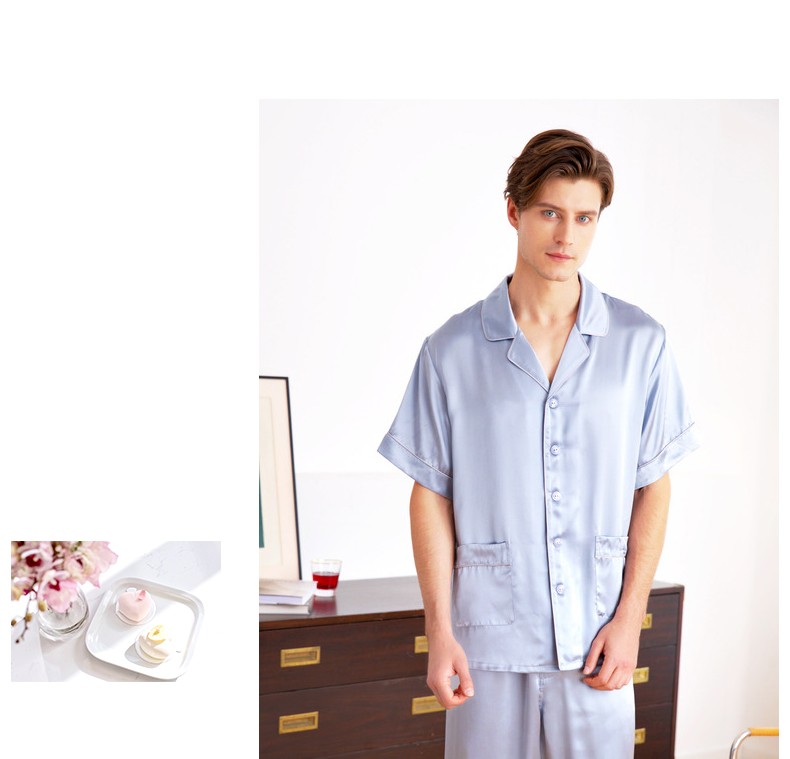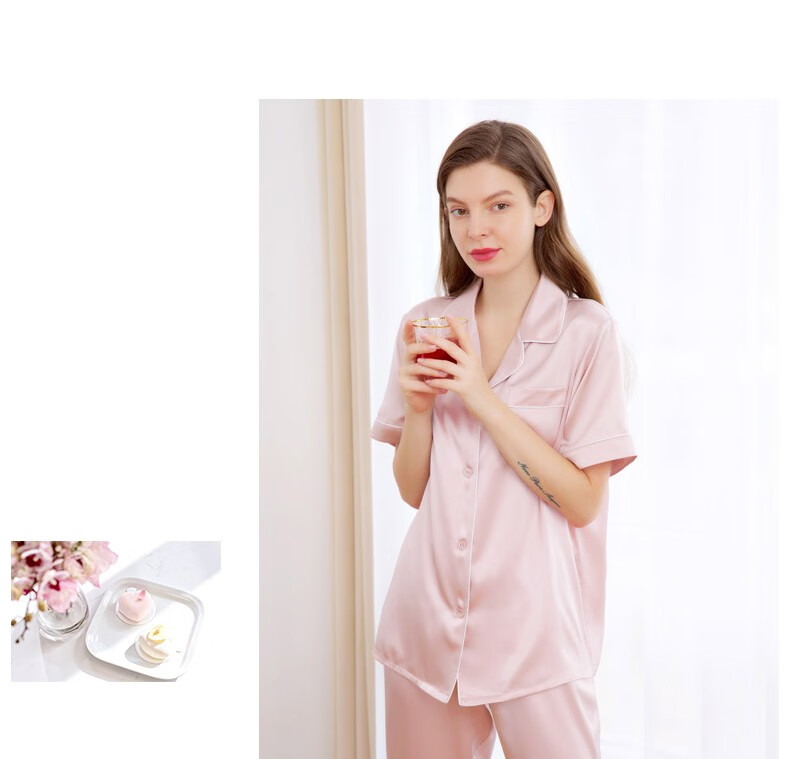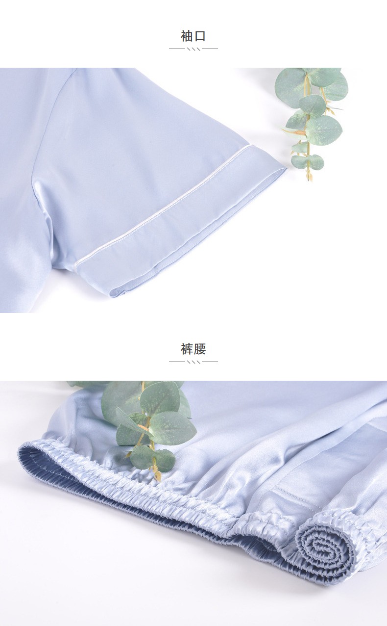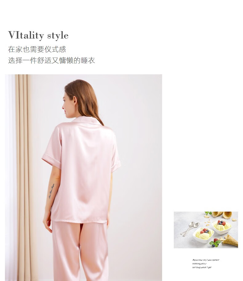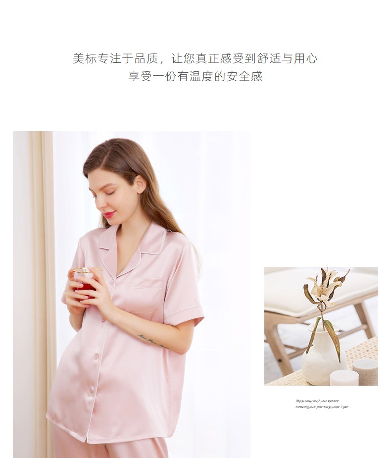 American Standard 19 Momi silk couple pajamas spring and summer women's short-sleeved trousers mulberry silk home clothes rose smoke powder XL