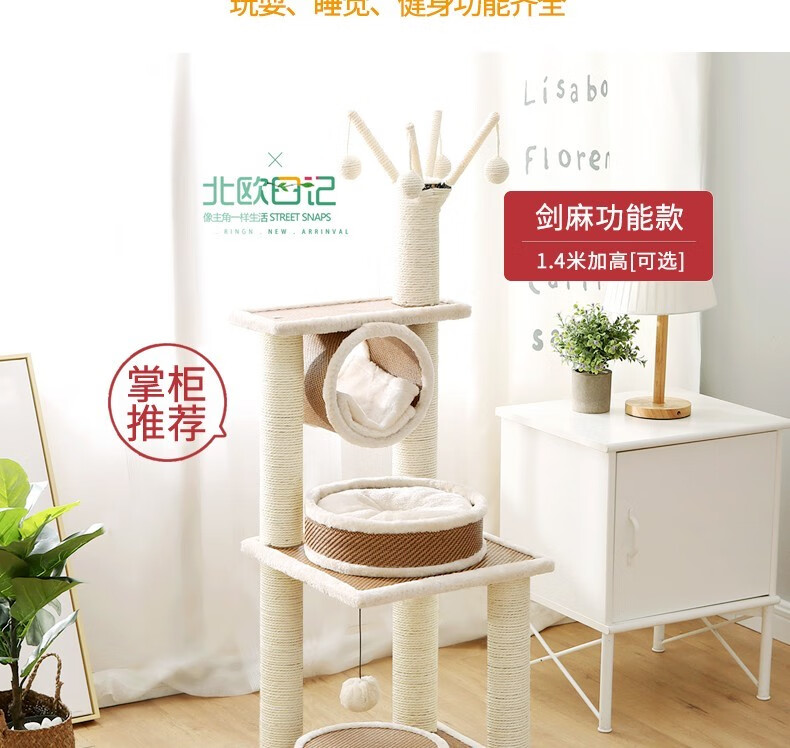 King Xunshan 1.4m taller model, luxury large cat climbing frame, cat nest, cat scratching board, cat scratching post, cat rack, cat toy, cat jumping platform, cat paw board, sky pillar, 1.4m large nest model