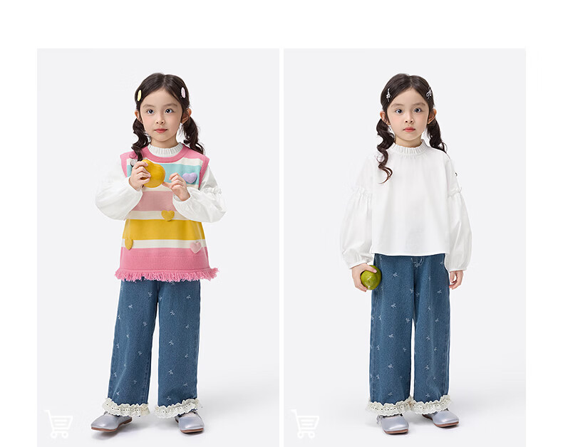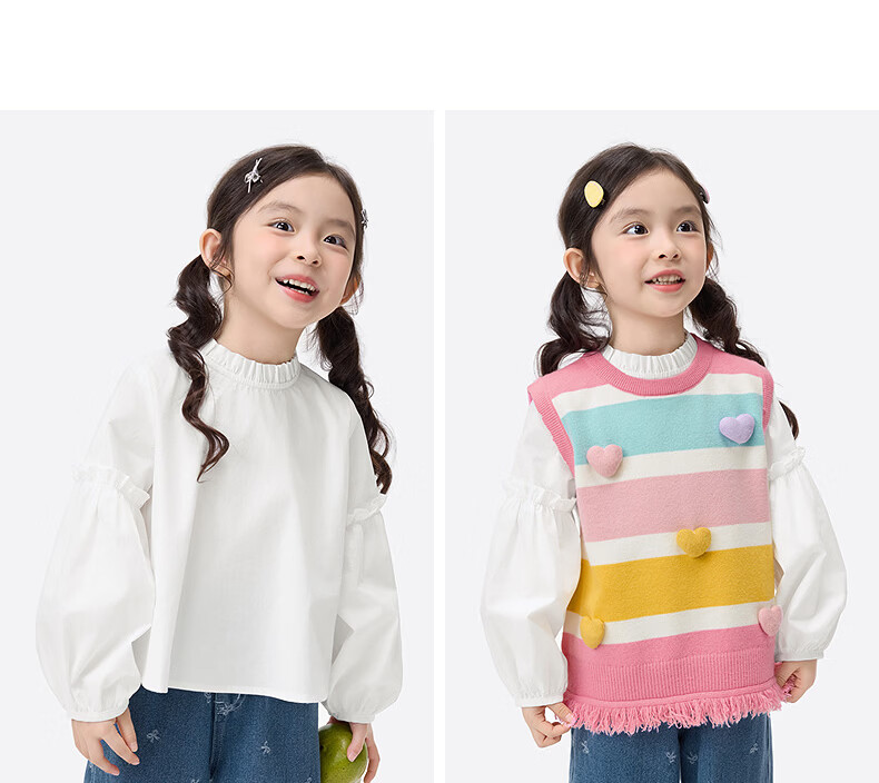 Xiaoyinman children's clothing girls pure cotton fungus shirt 26 spring fashionable sweet casual tops for children and middle-aged children