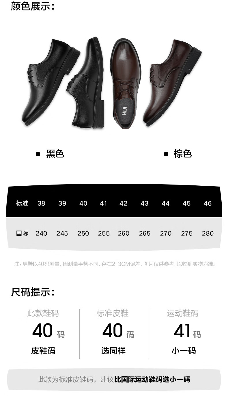 Hailan House HLA leather shoes men's first layer cowhide shoes autumn and winter men's formal business casual shoes men's T192 black 42