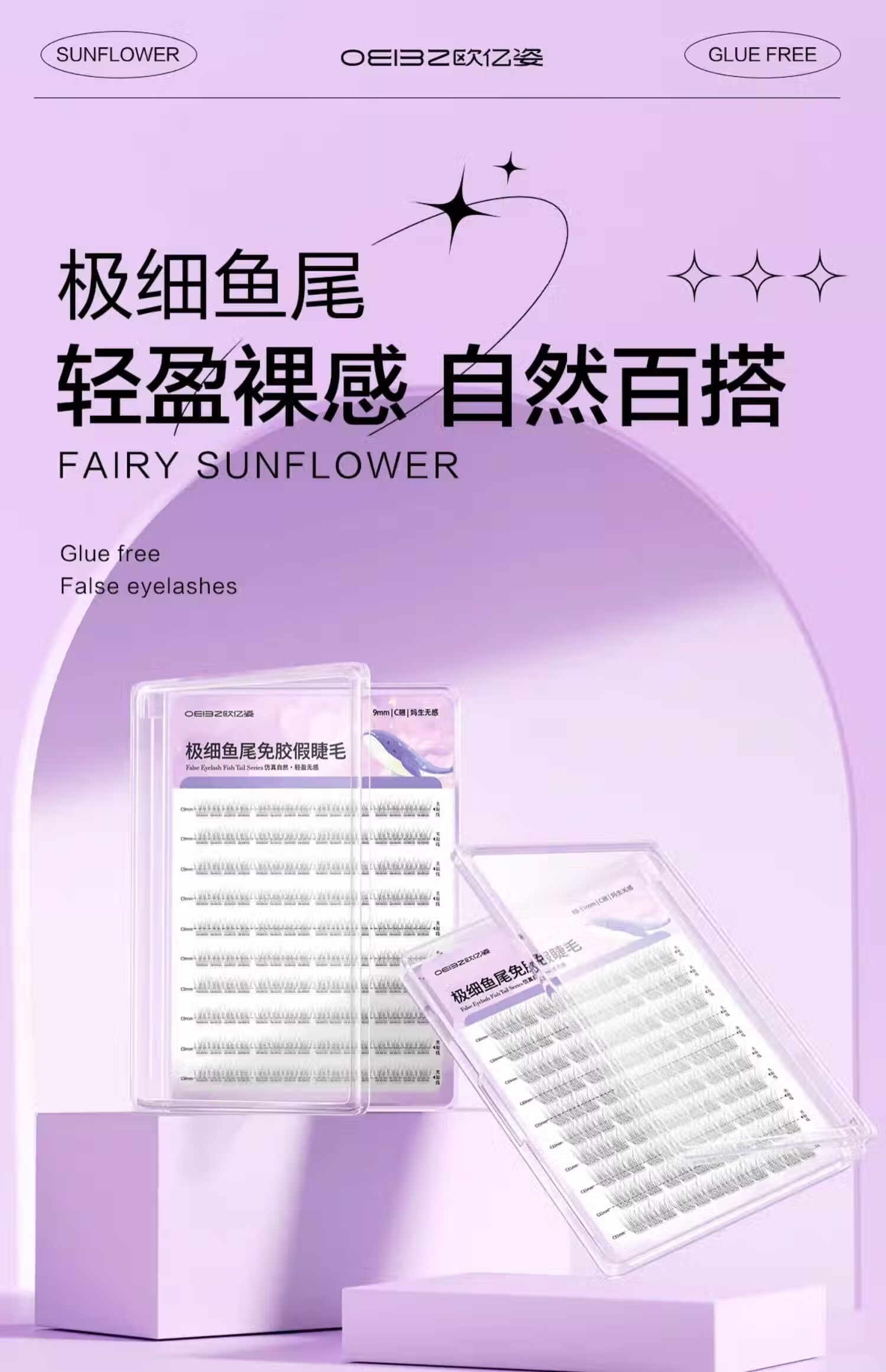 Oeiez fishtail glue-free false eyelashes for women natural simulation large-capacity segmented sunflower fairy glue eyelash stickers