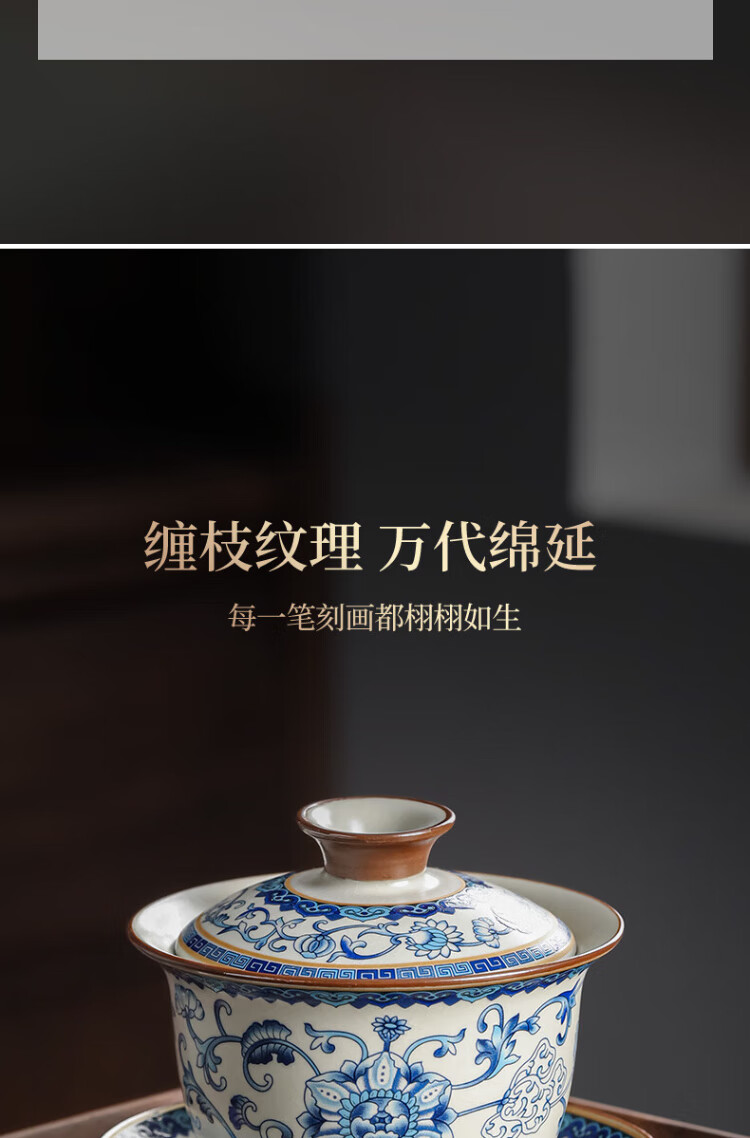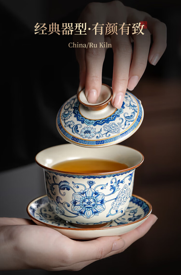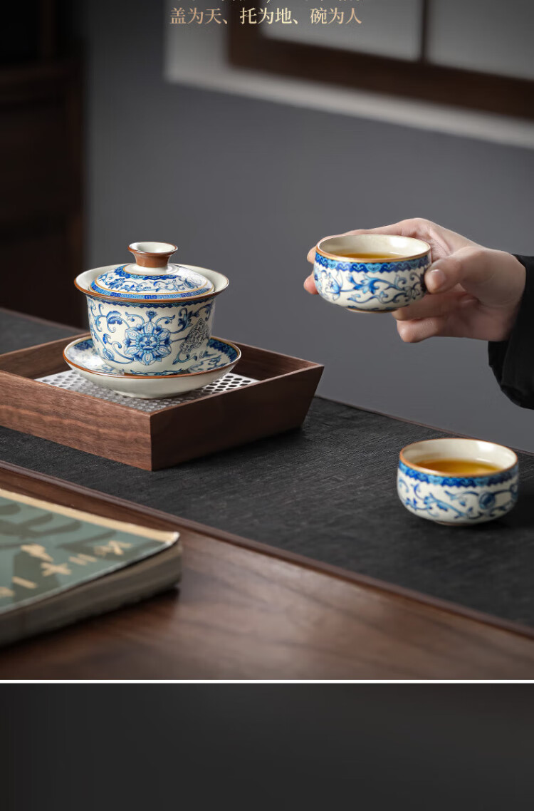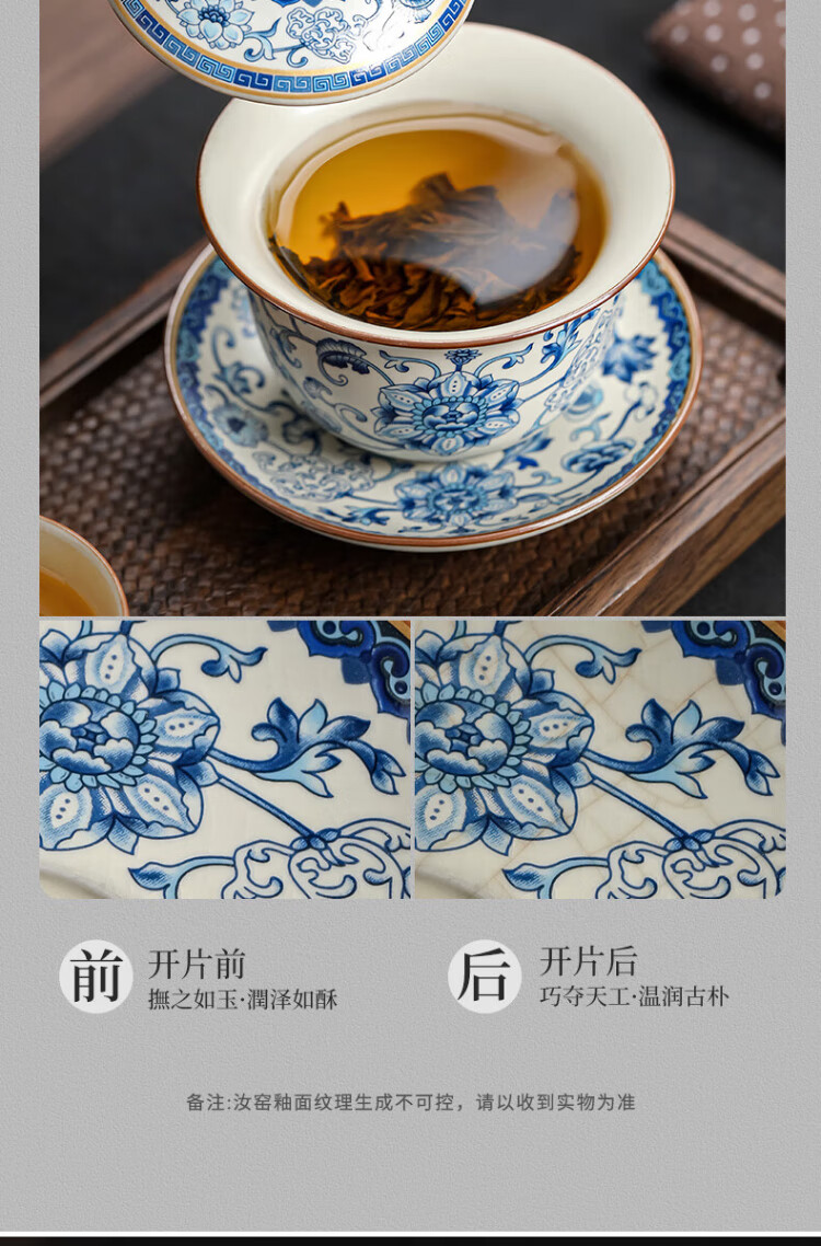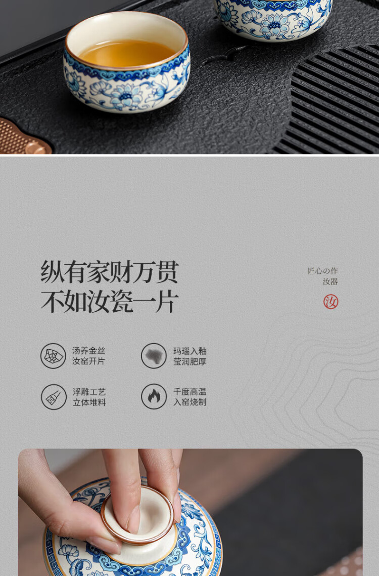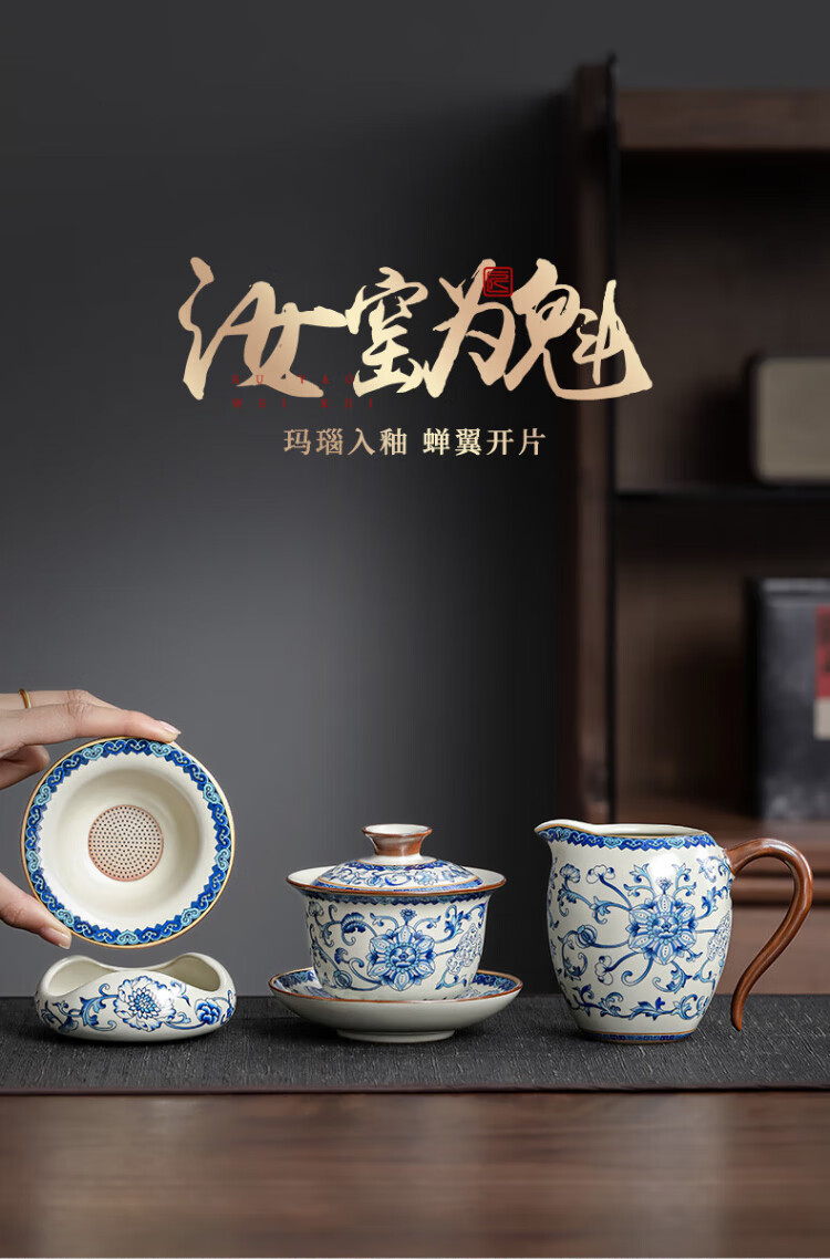 Buchuo tea set complete set of Kung Fu tea set for home use in living room tea set high-end blue and white porcelain Ru kiln covered bowl 9 pieces