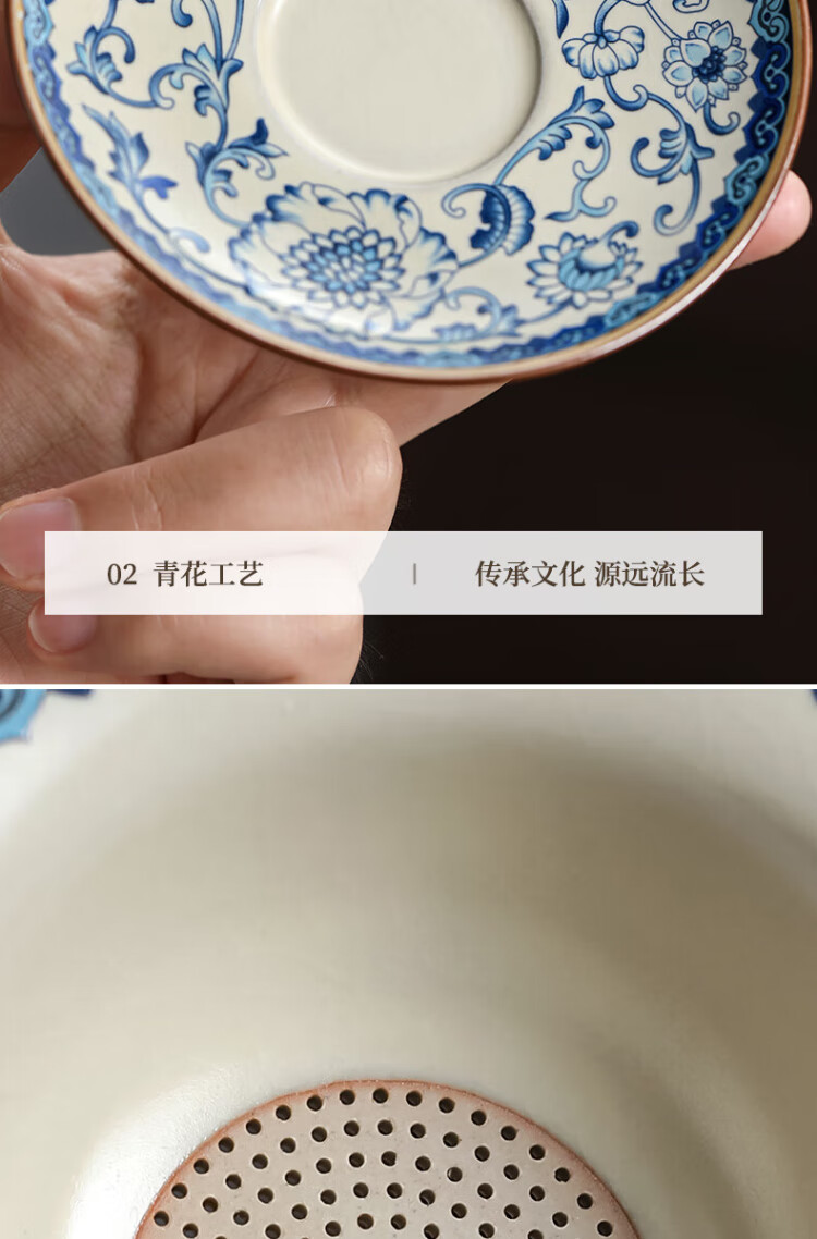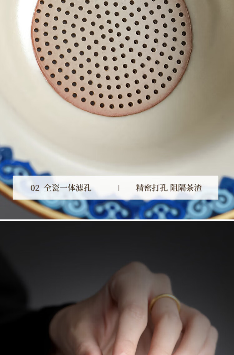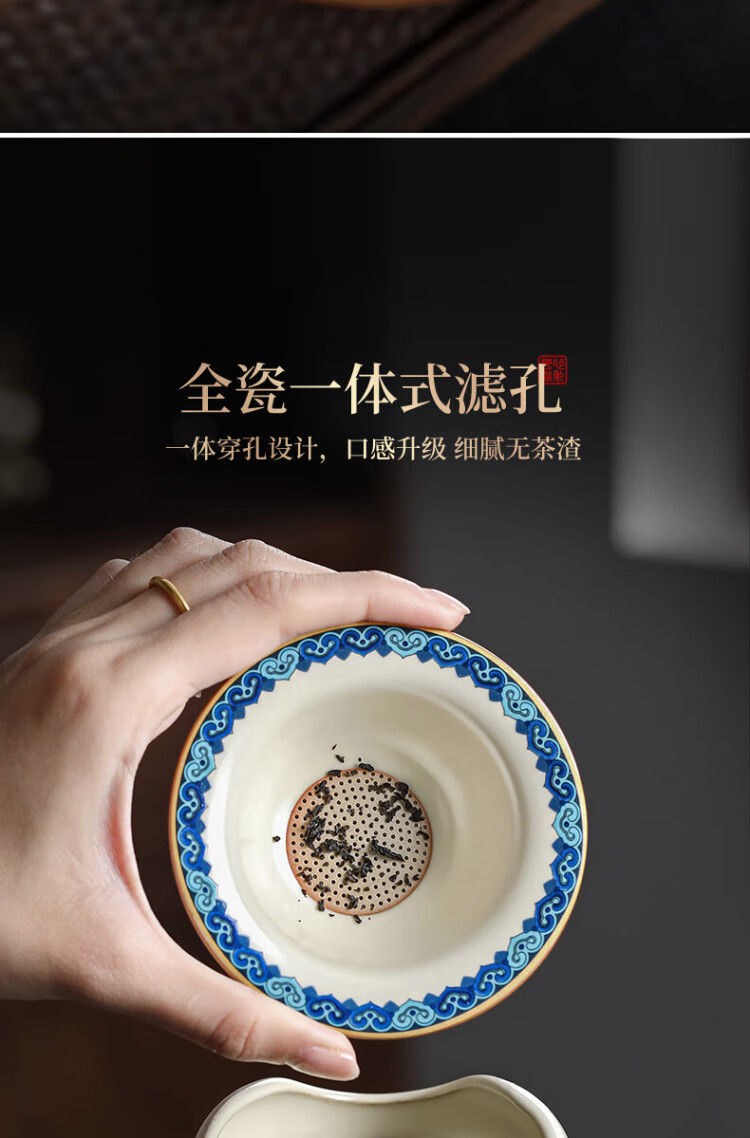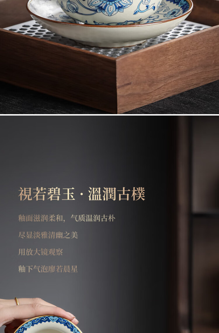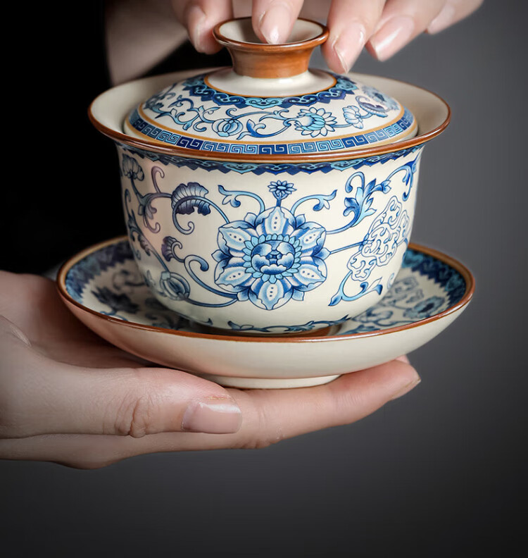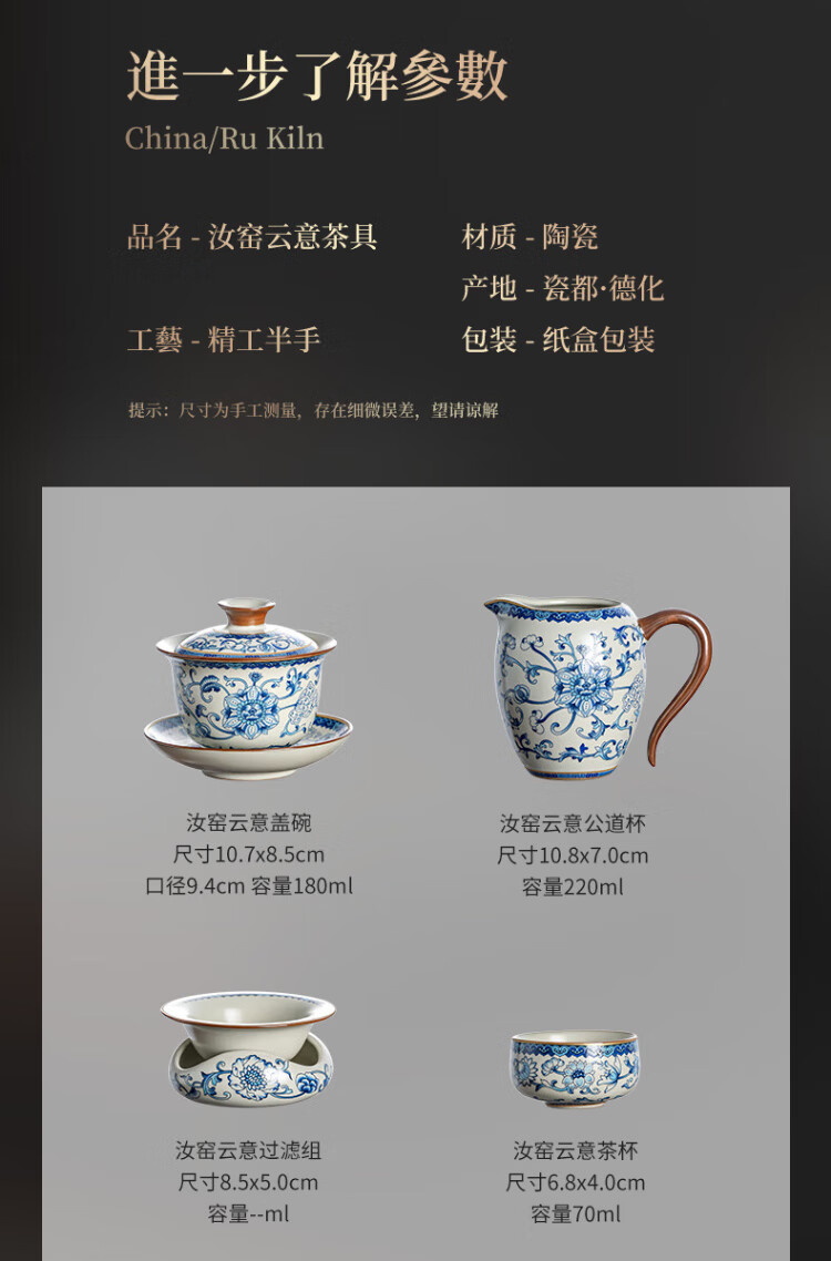 Buchuo tea set complete set of Kung Fu tea set for home use in living room tea set high-end blue and white porcelain Ru kiln covered bowl 9 pieces