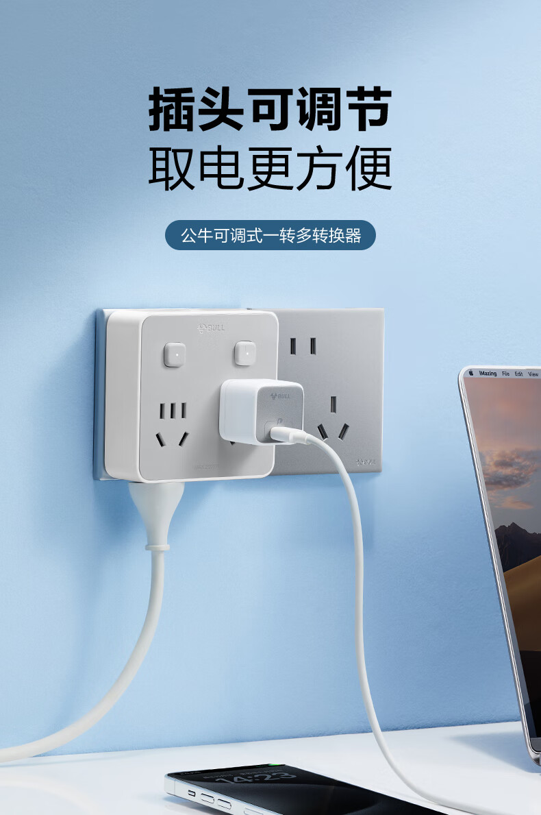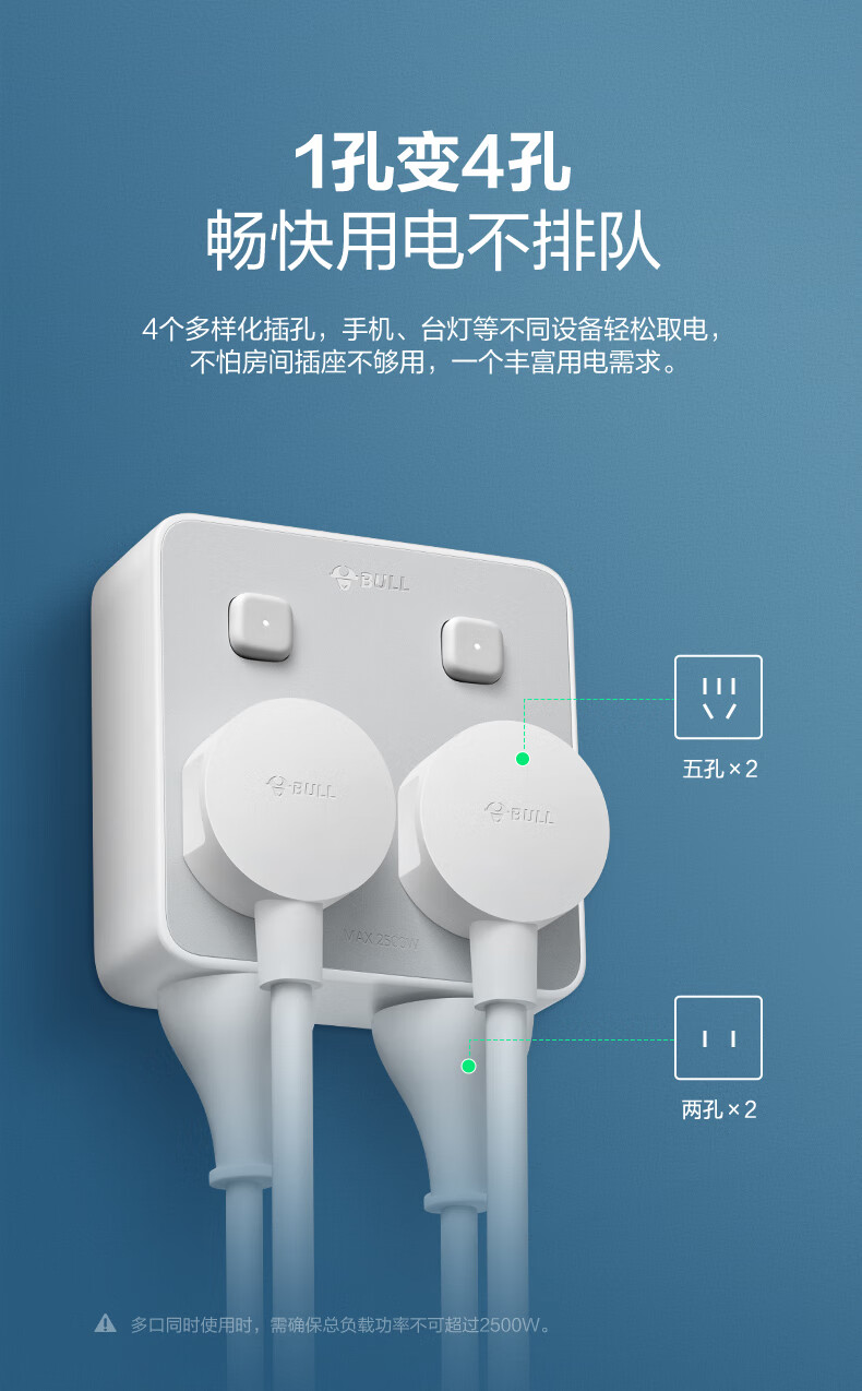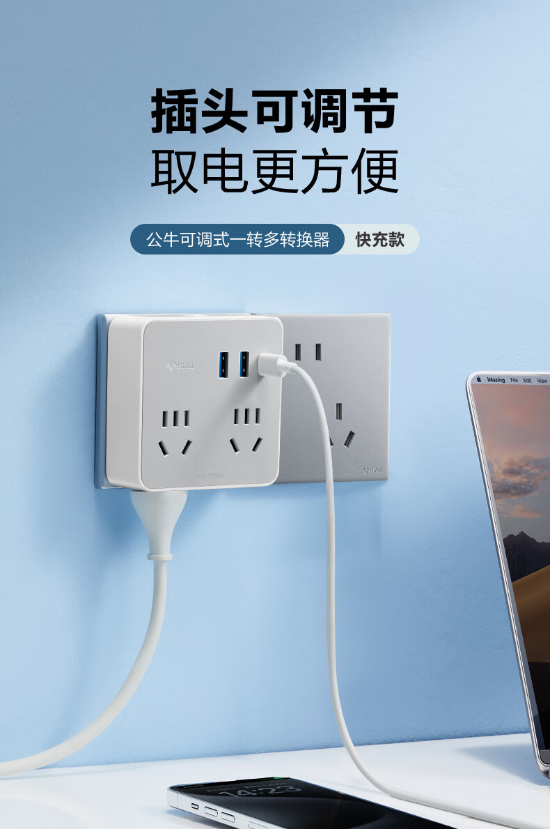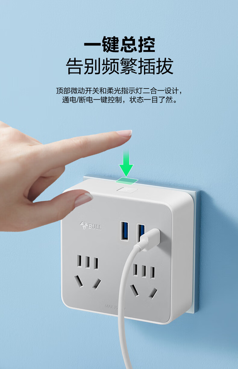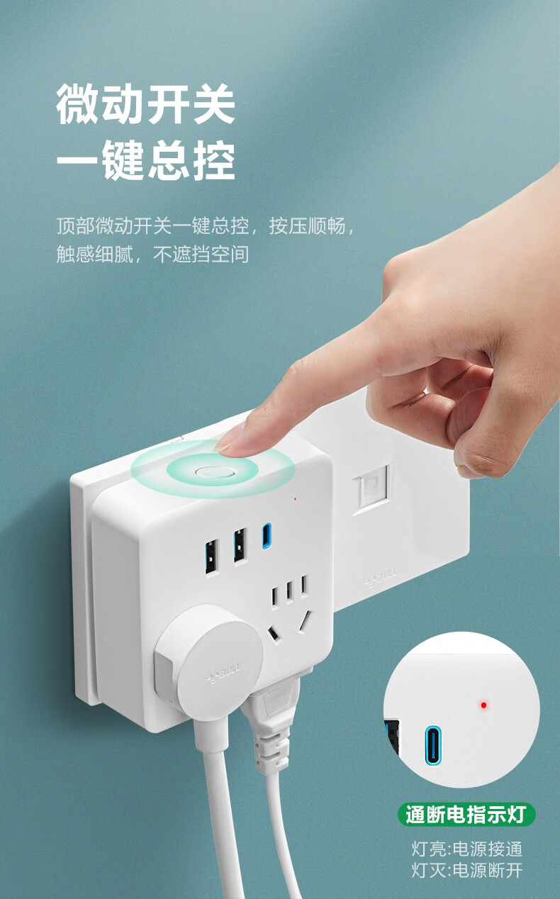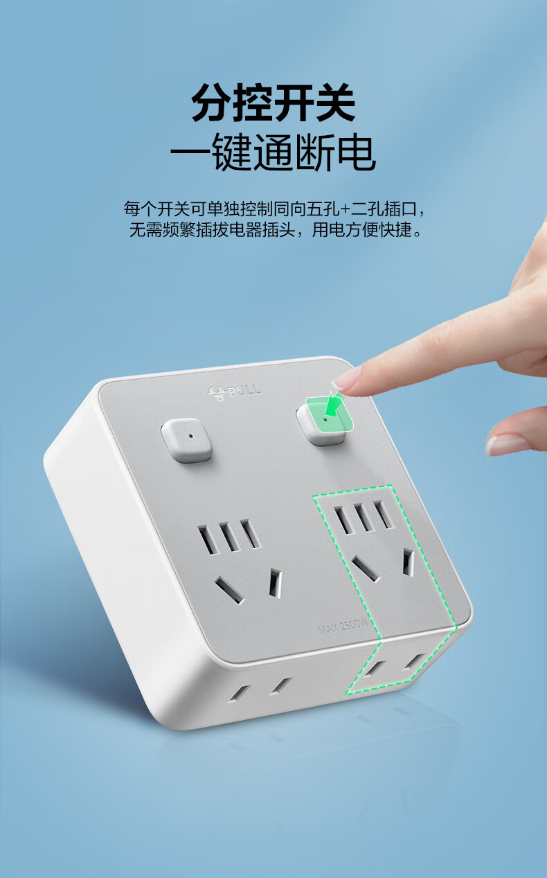 BULL plug strip/socket/one-turn multi-function socket/suitable for type 86 wall socket/suitable for bedroom and kitchen type 86 one-turn four-point control socket GN-93223