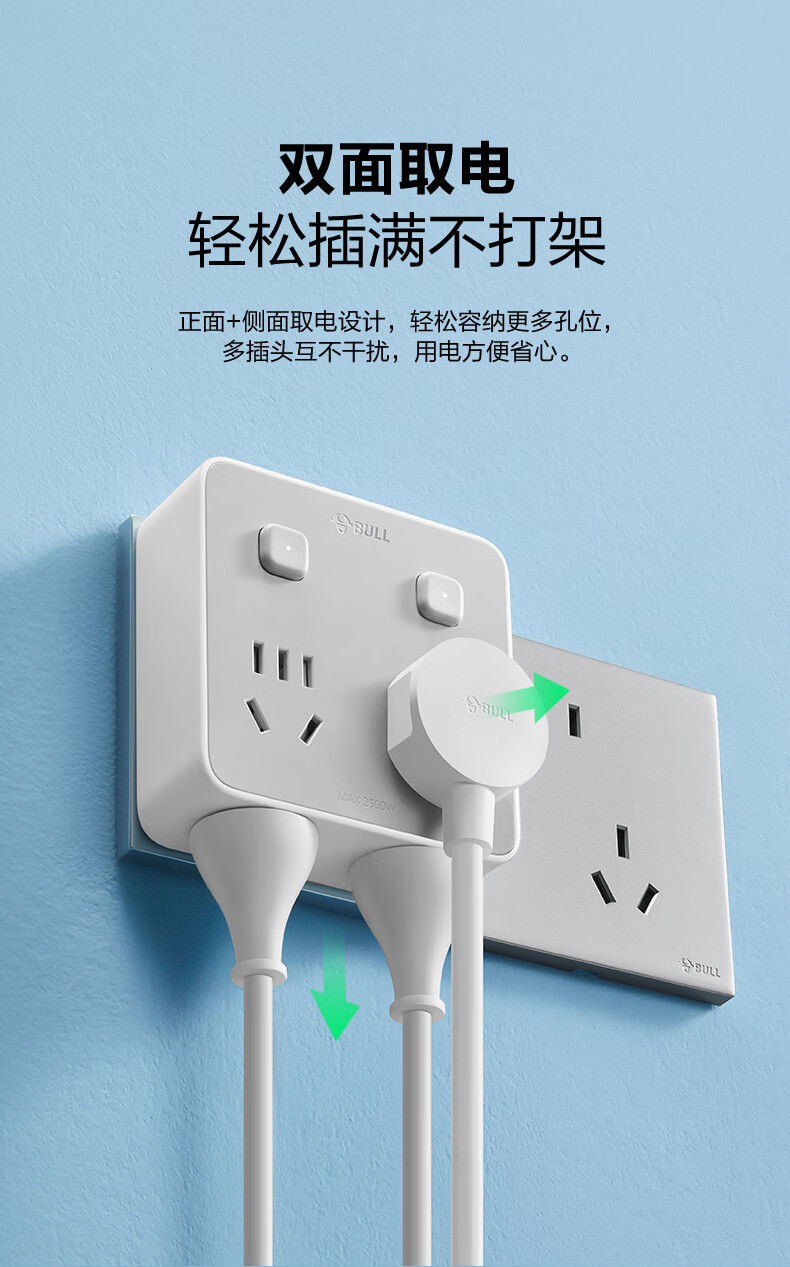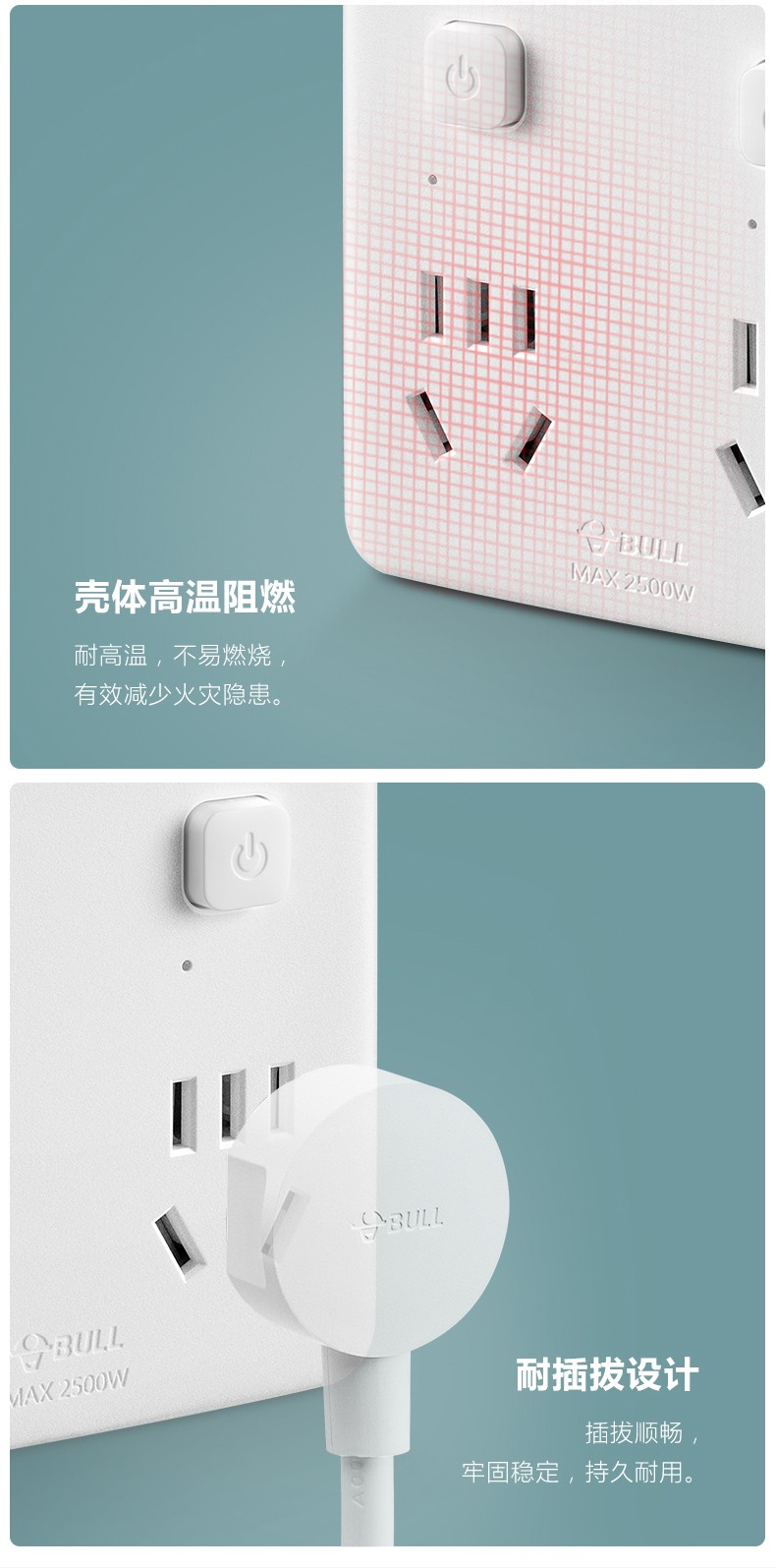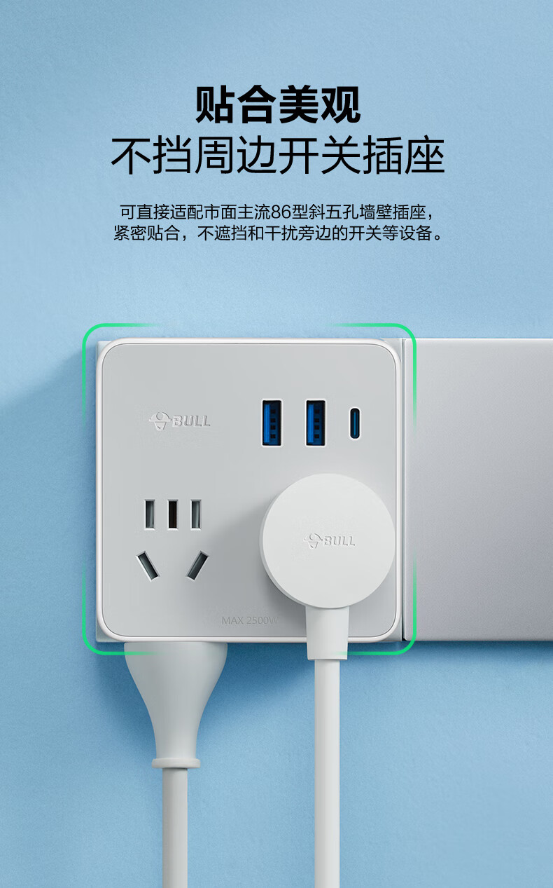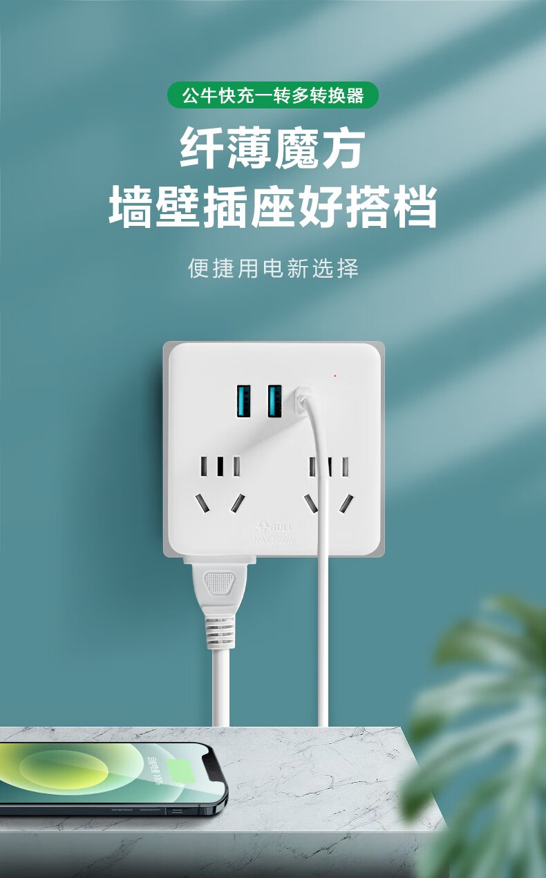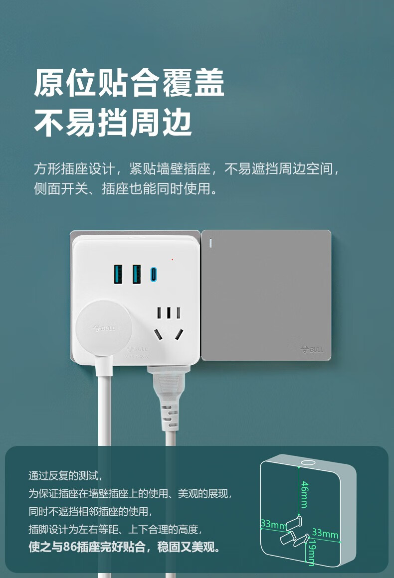 BULL plug strip/socket/one-turn multi-function socket/suitable for type 86 wall socket/suitable for bedroom and kitchen type 86 one-turn four-point control socket GN-93223