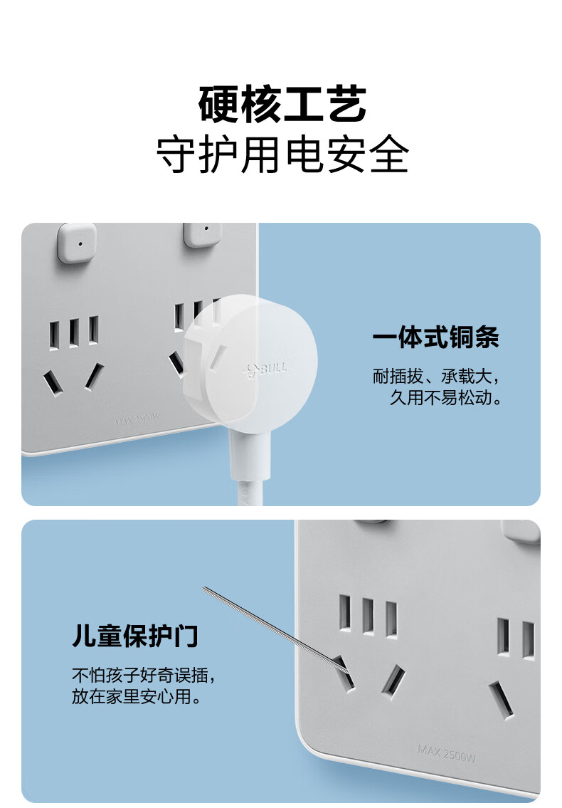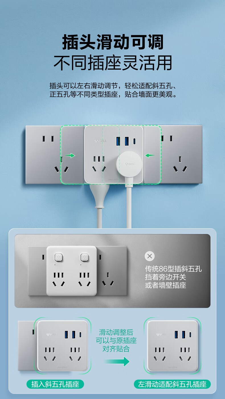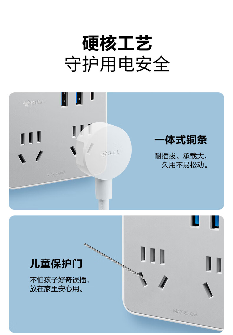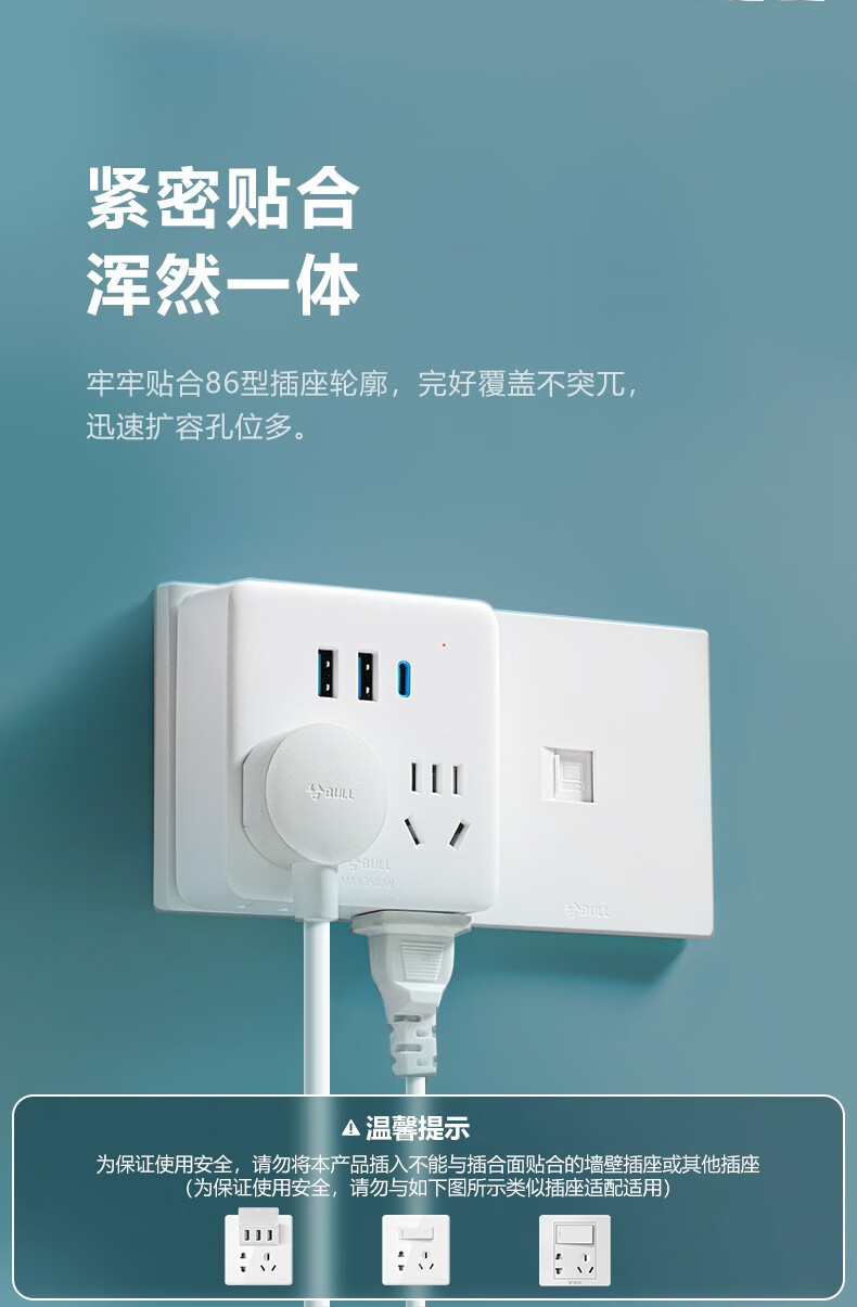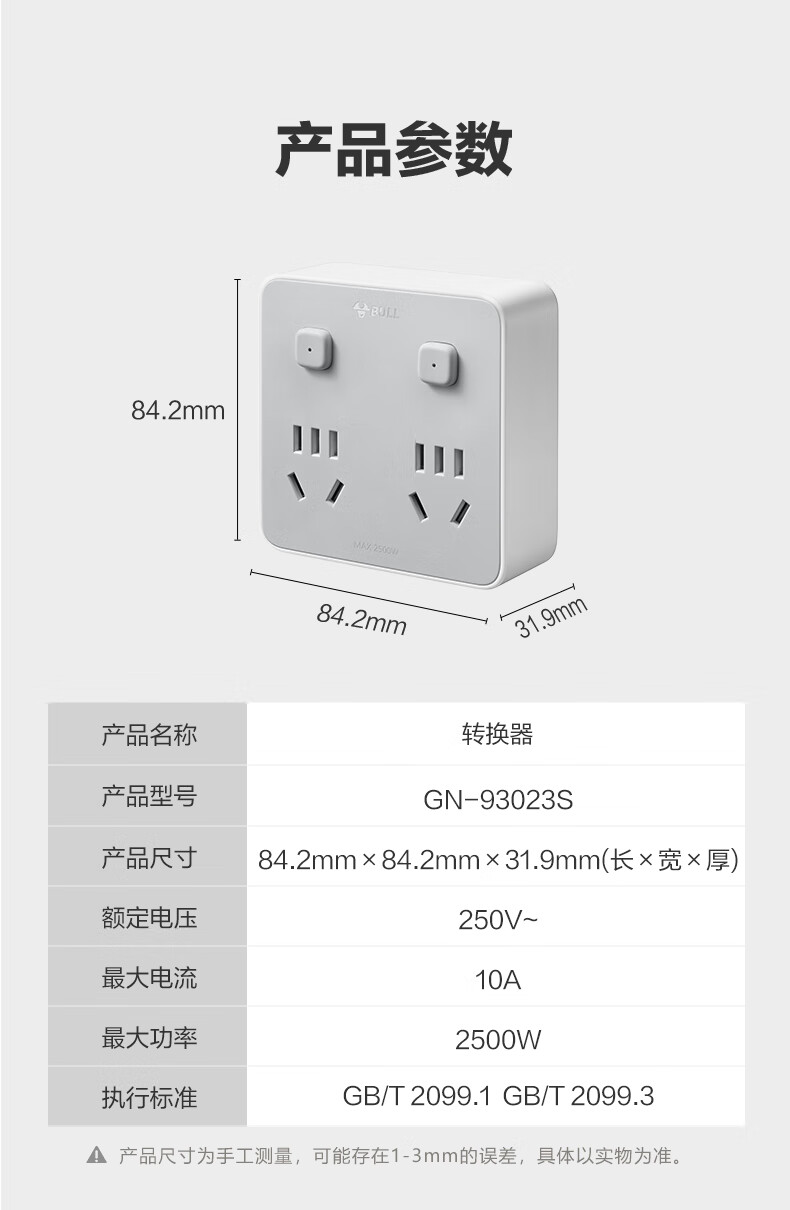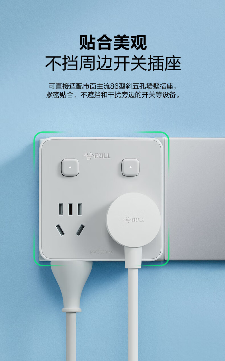 BULL plug strip/socket/one-turn multi-function socket/suitable for type 86 wall socket/suitable for bedroom and kitchen type 86 one-turn four-point control socket GN-93223