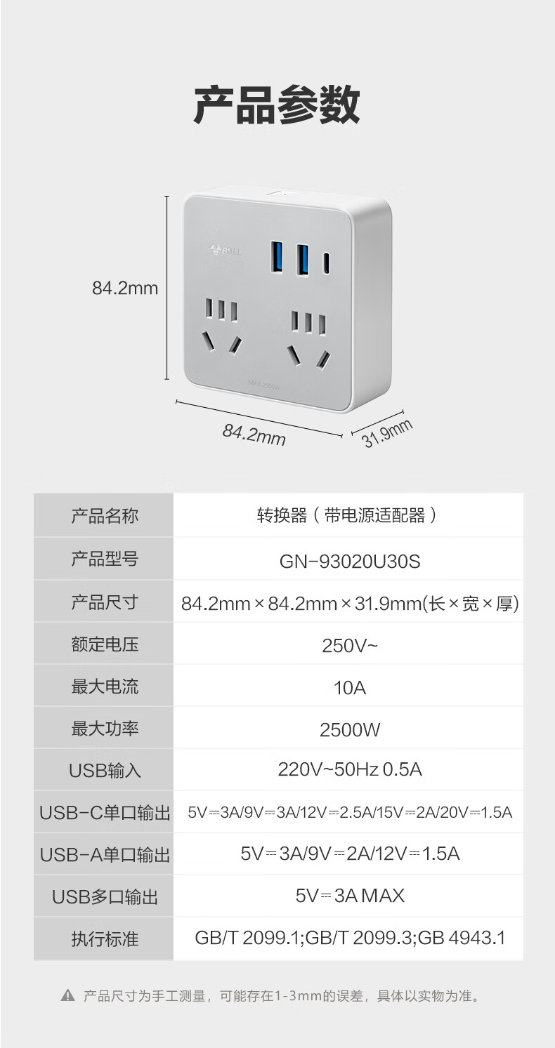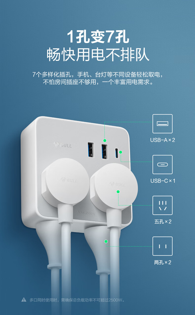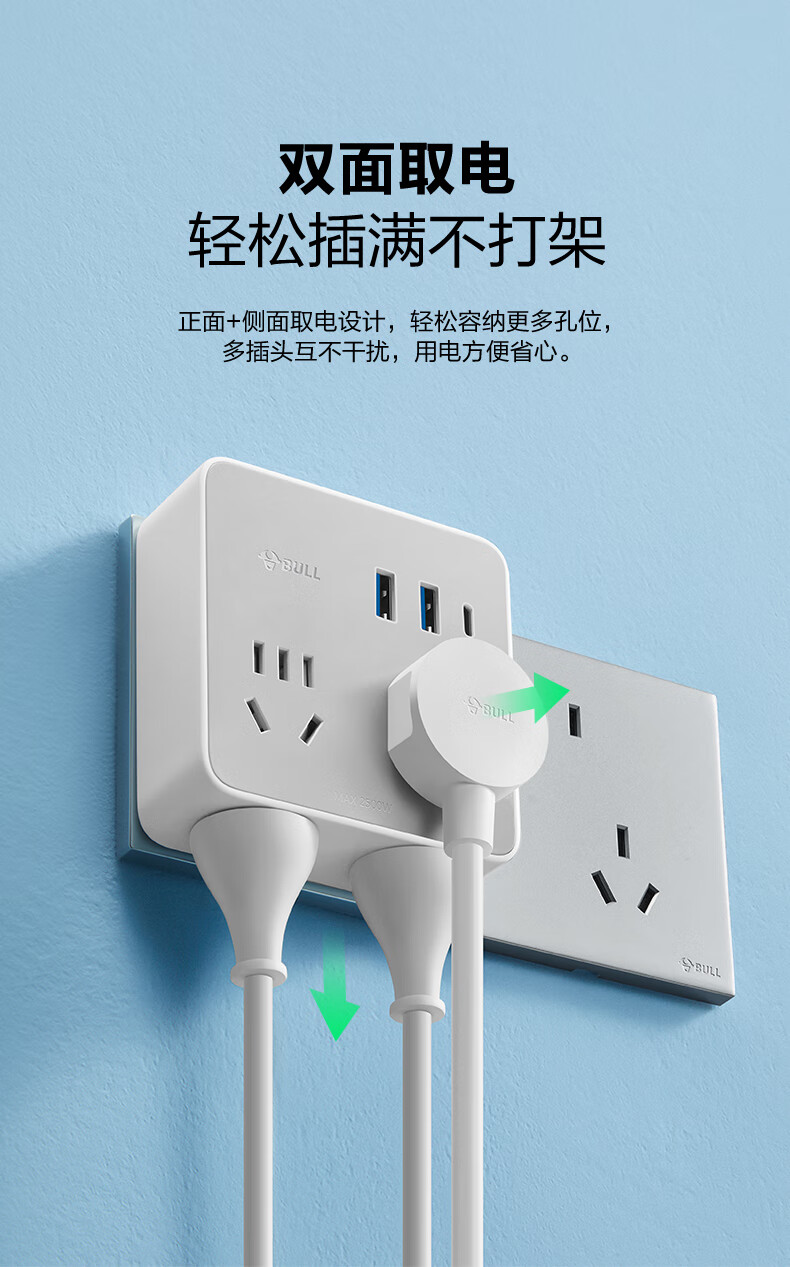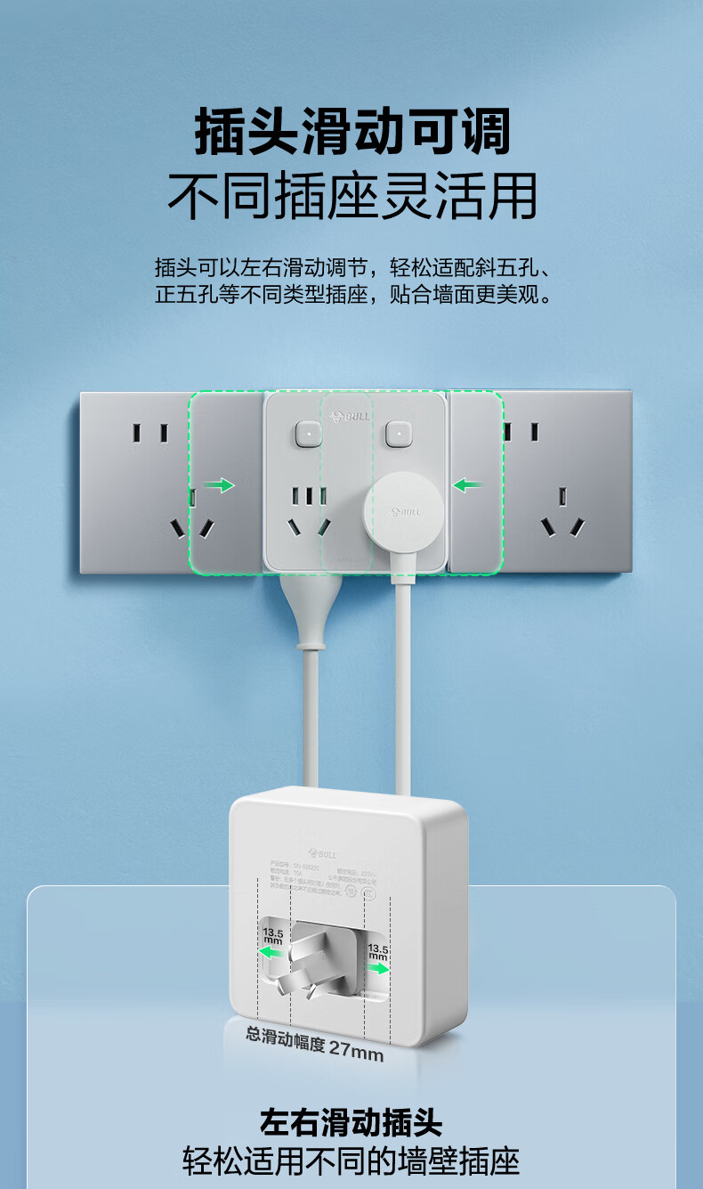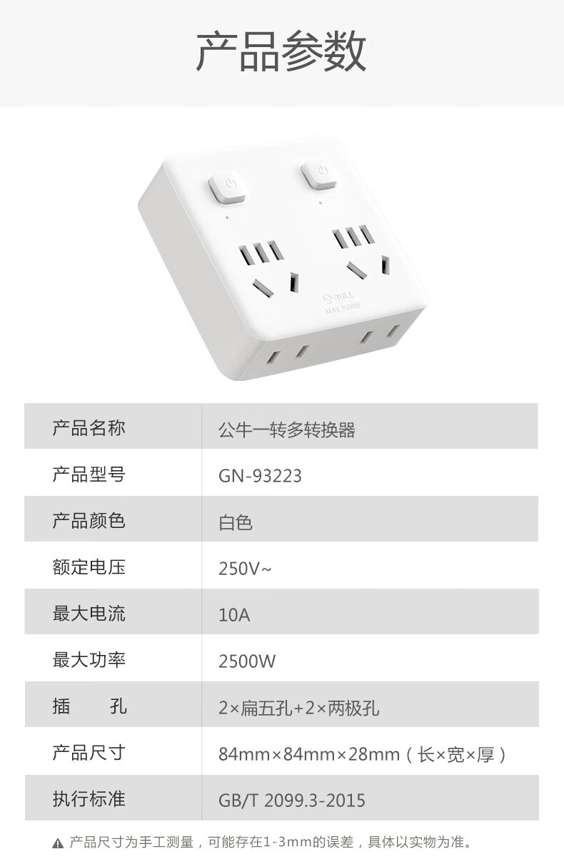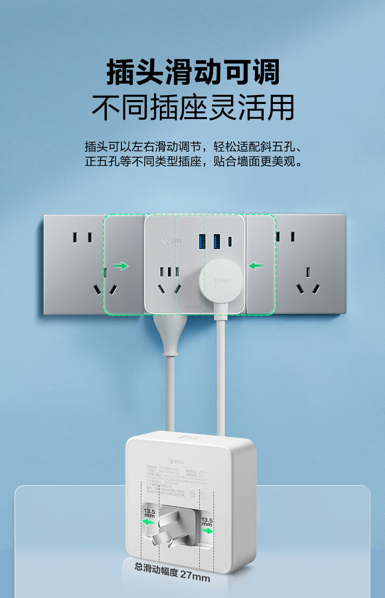 BULL plug strip/socket/one-turn multi-function socket/suitable for type 86 wall socket/suitable for bedroom and kitchen type 86 one-turn four-point control socket GN-93223