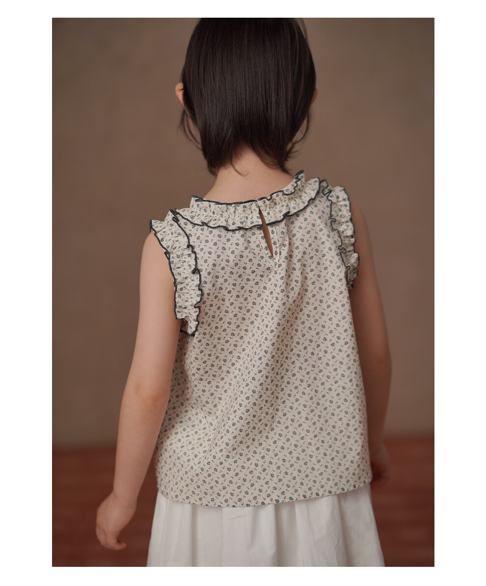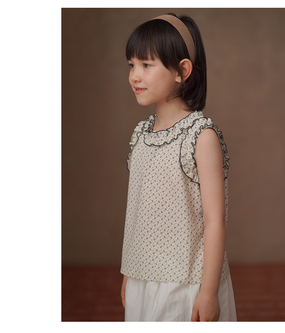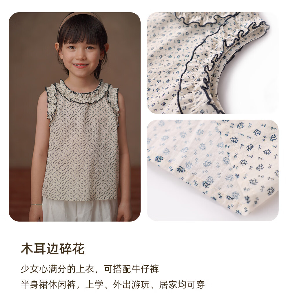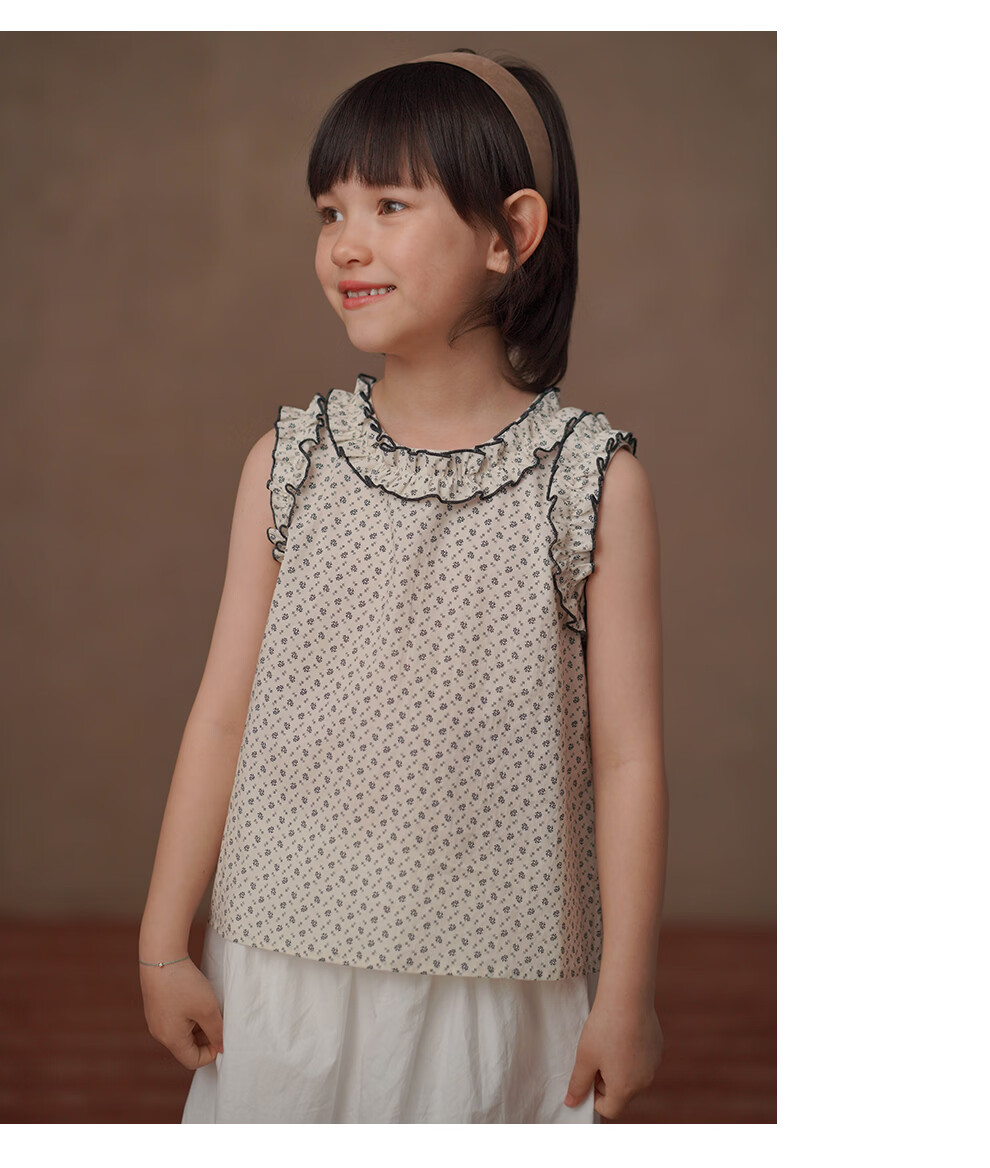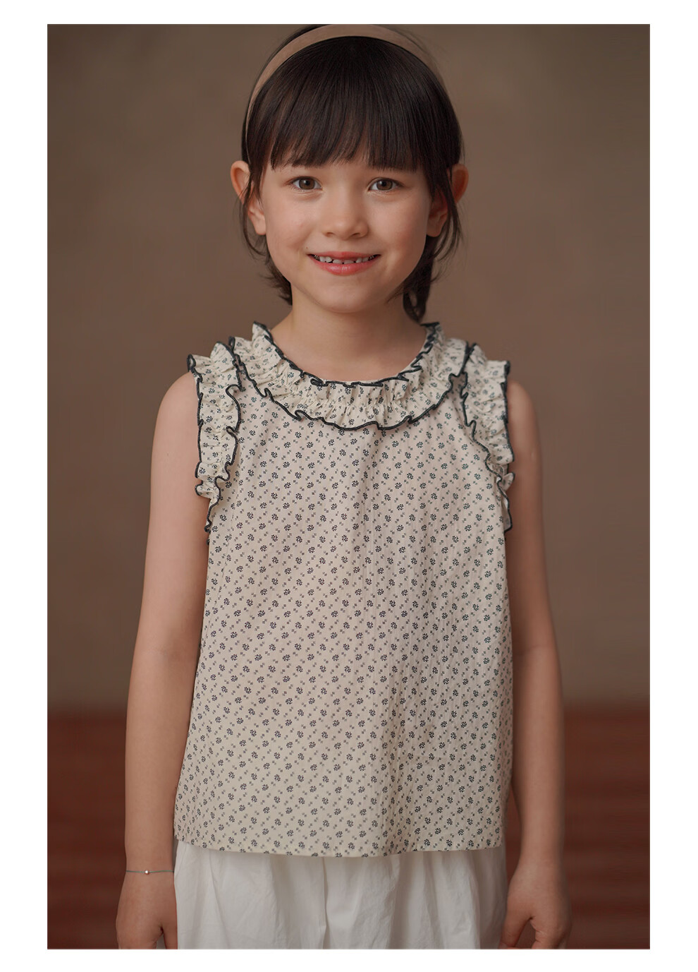 Hacikis children's clothing 2026 summer children's sleeveless tops pastoral floral cotton shirt girls' vest light lace shirt