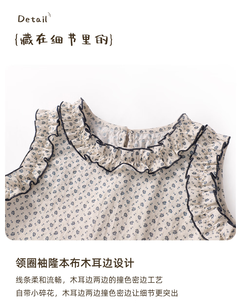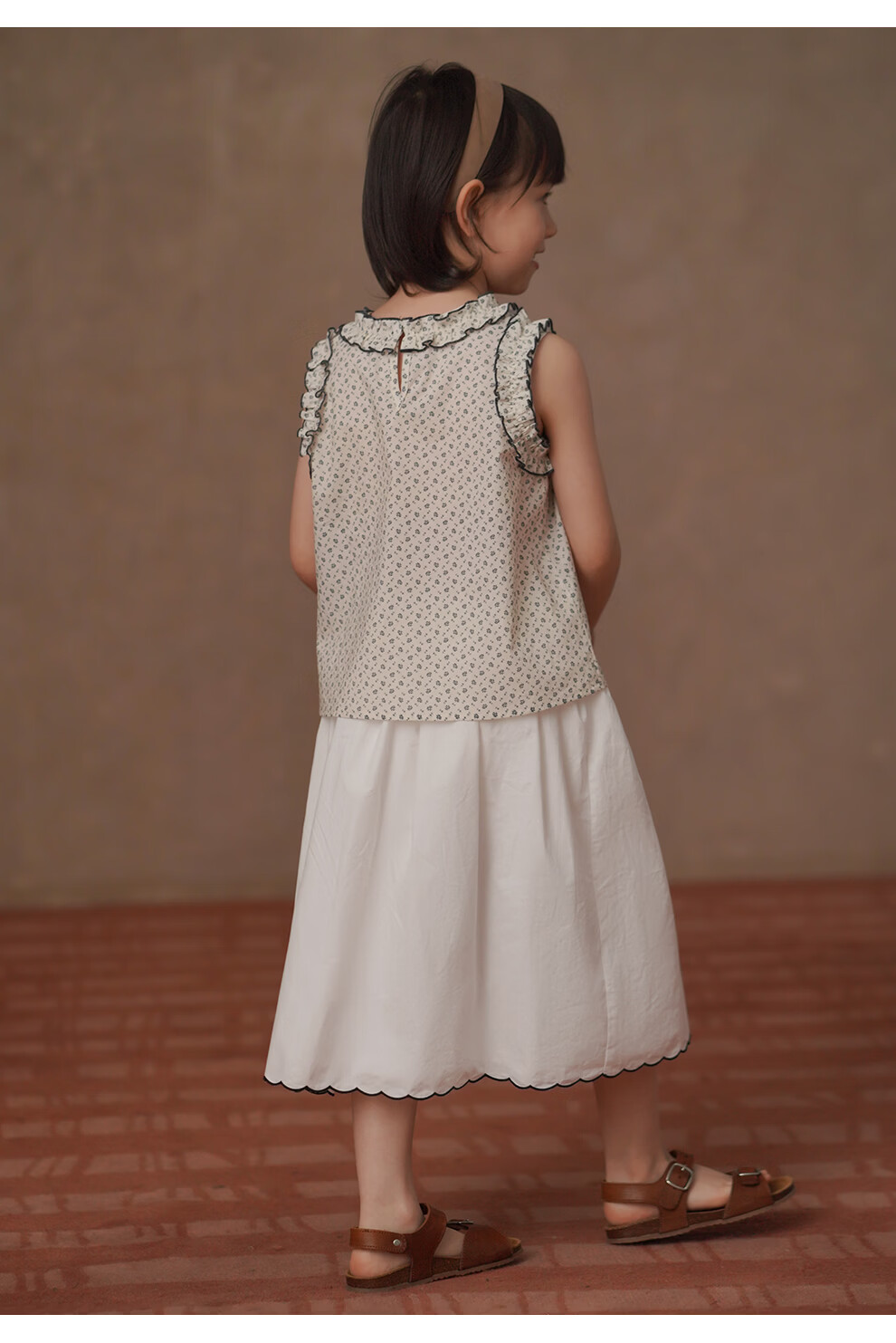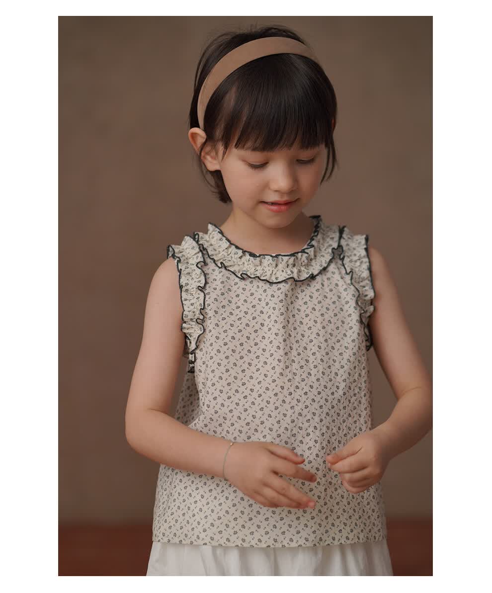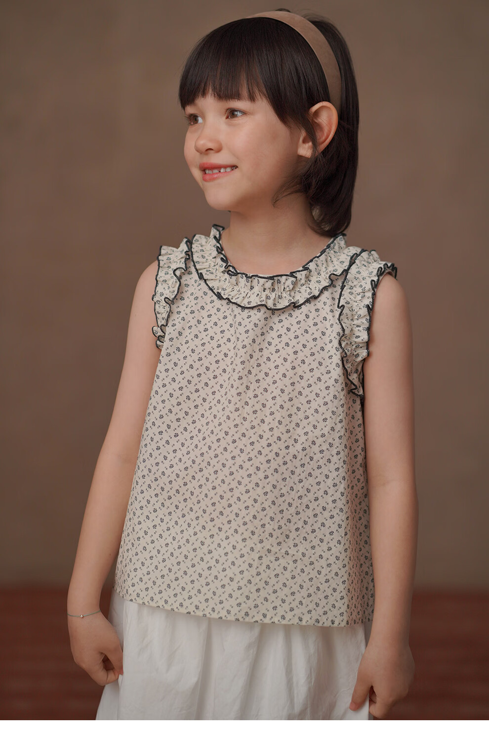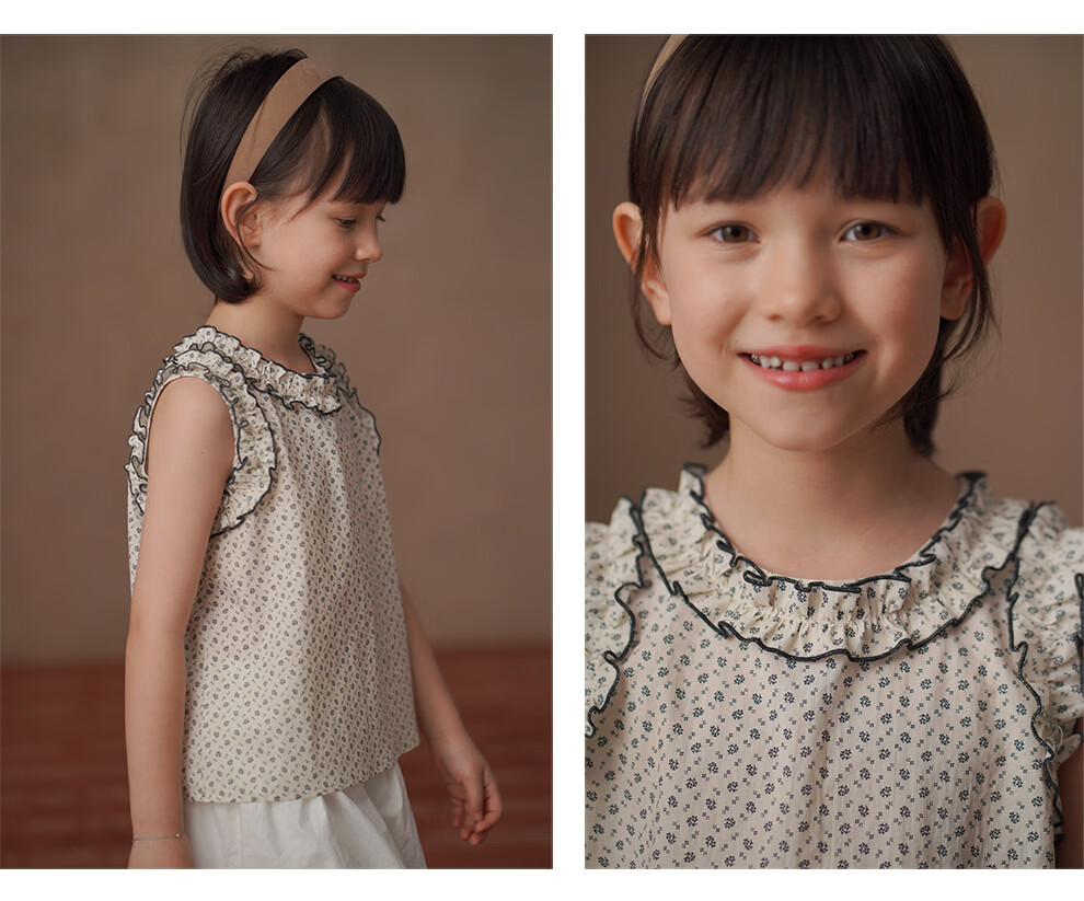Hacikis children's clothing 2026 summer children's sleeveless tops pastoral floral cotton shirt girls' vest light lace shirt