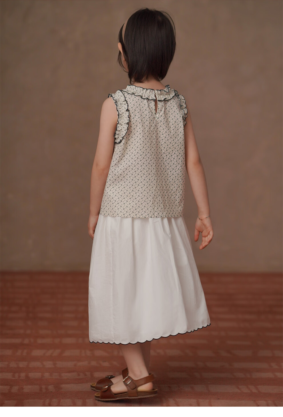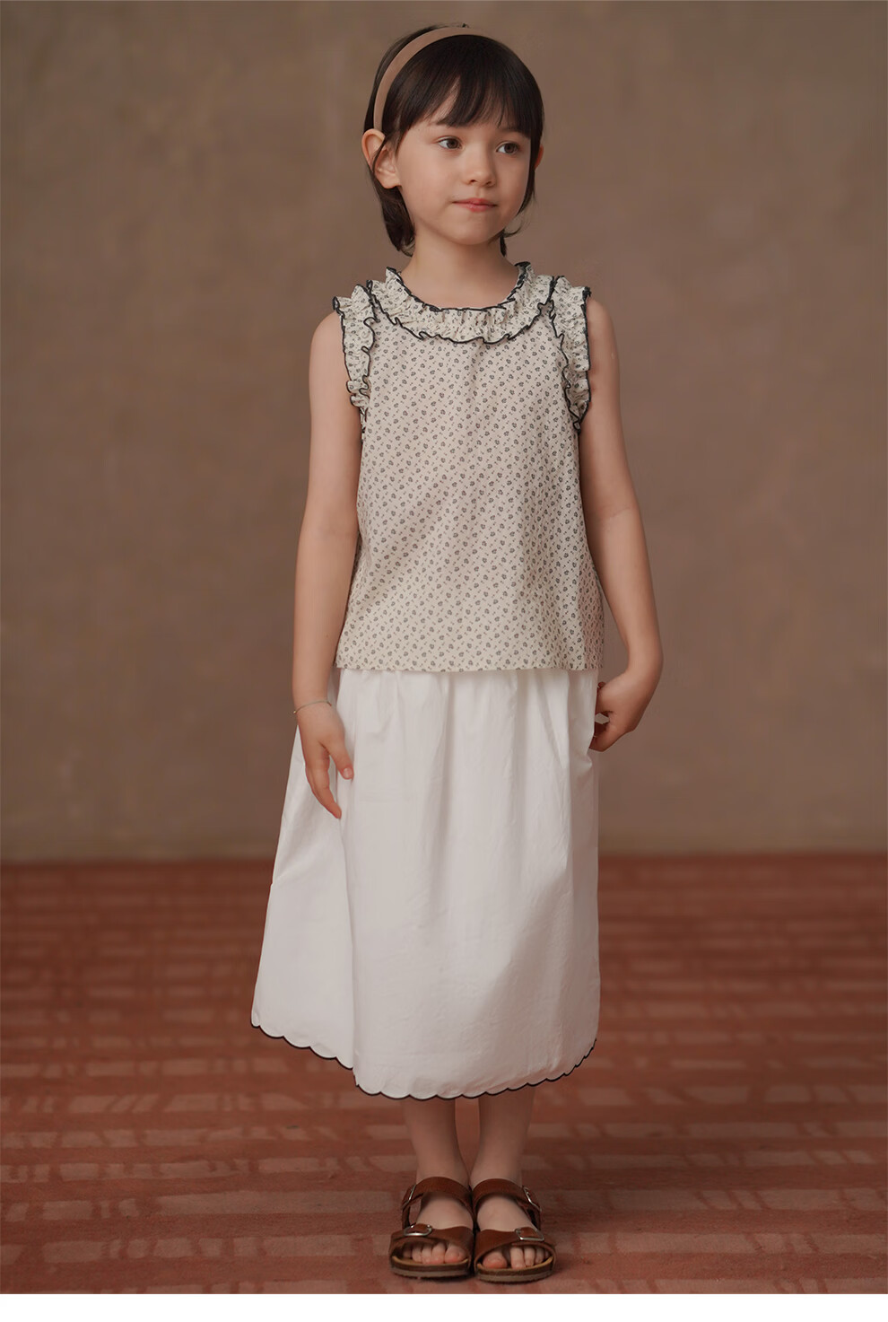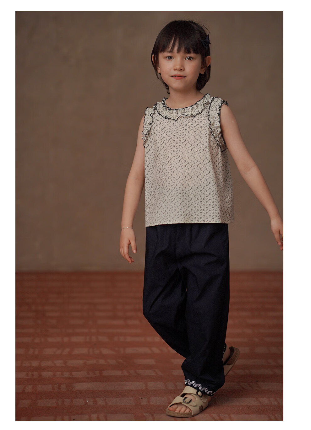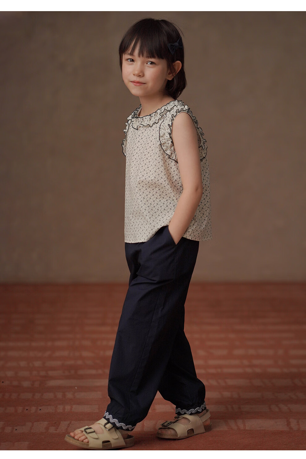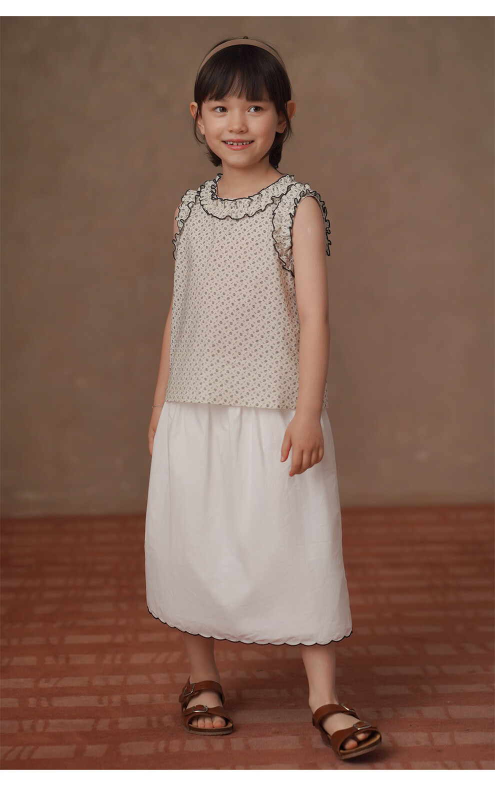 Hacikis children's clothing 2026 summer children's sleeveless tops pastoral floral cotton shirt girls' vest light lace shirt