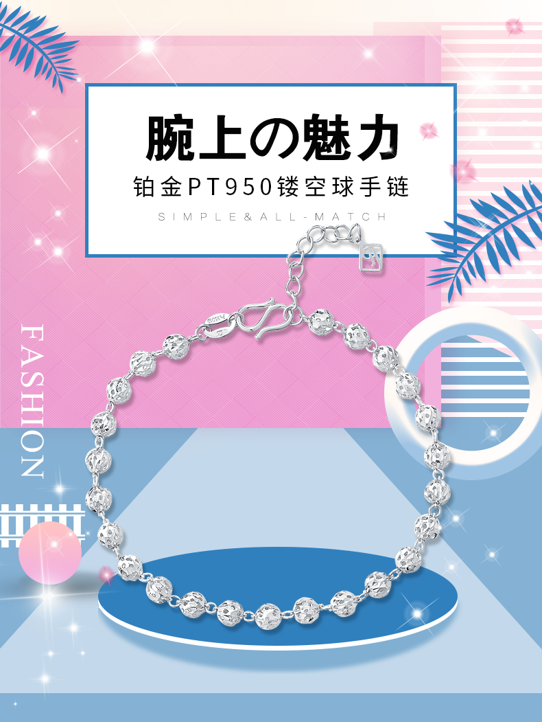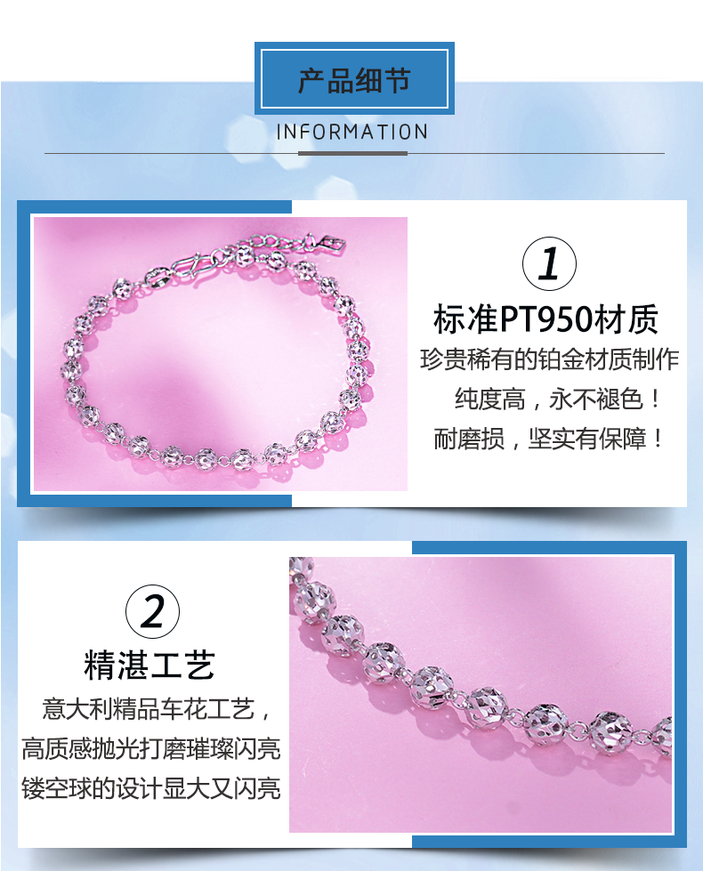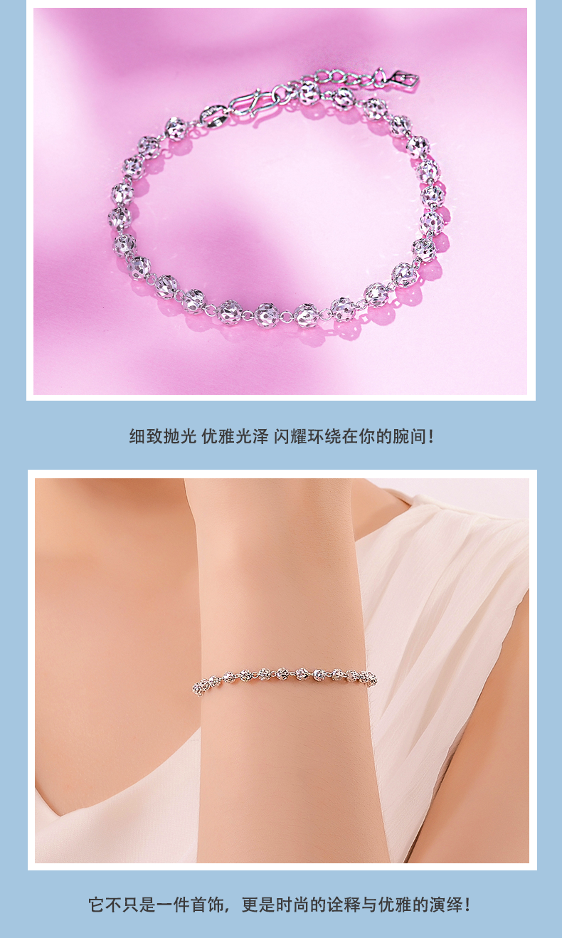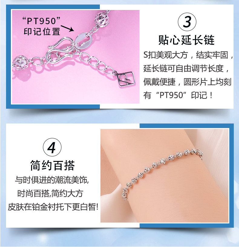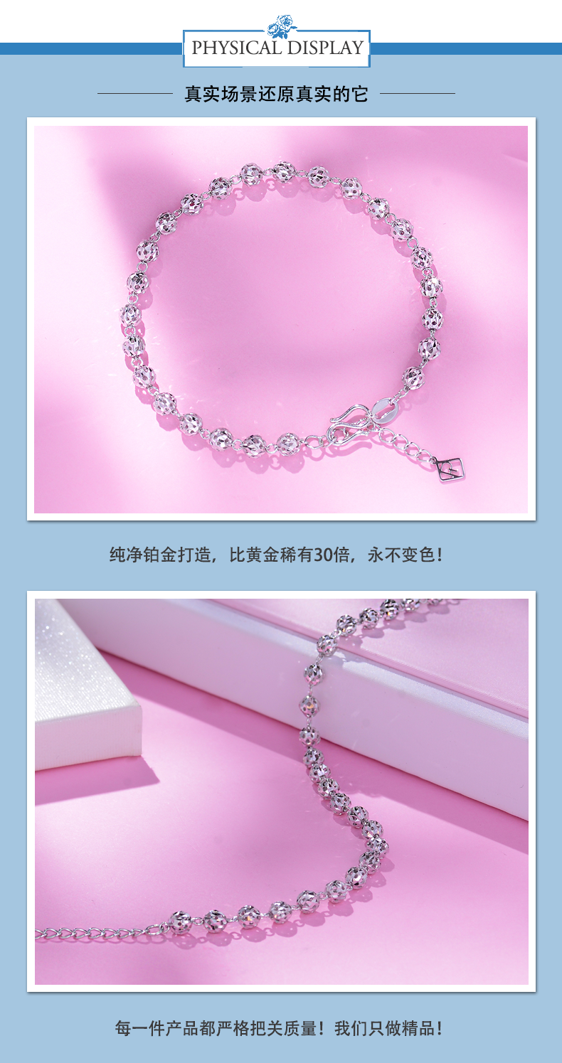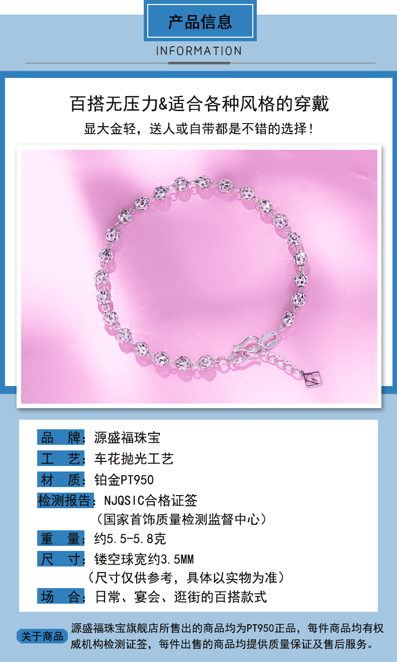 Yuan Shengfu's new PT950 fashionable hollow transfer ball platinum bracelet, fashionable women's versatile platinum bracelet, 6.38g, length 16.5-18.5cm adjustable