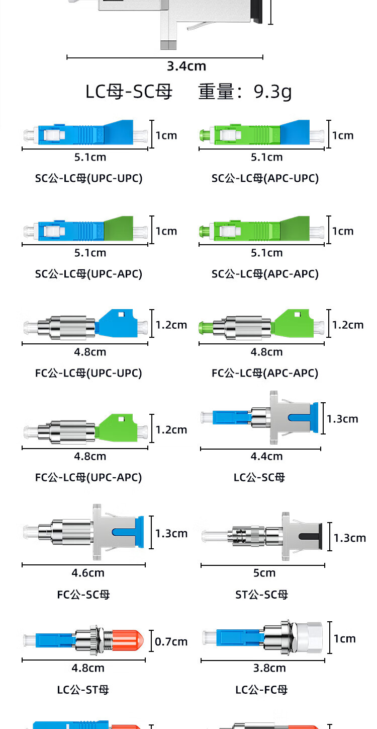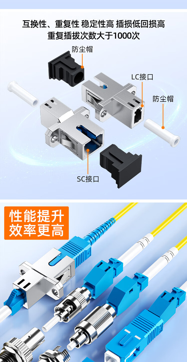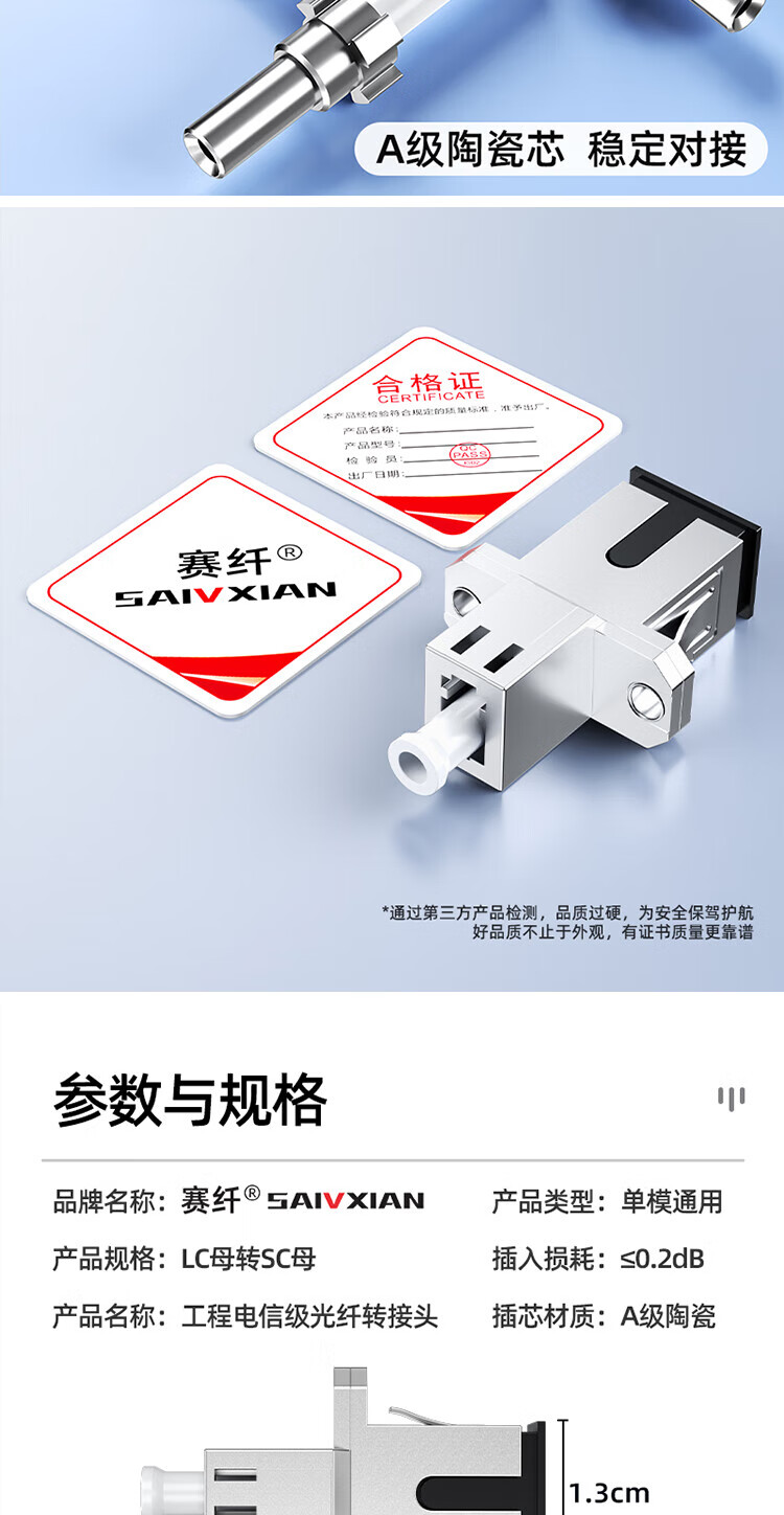 Sai fiber fiber optic adapter LC-SC double female head carrier grade fiber optic coupler round to square head optical power red light pen docking connector flange extender