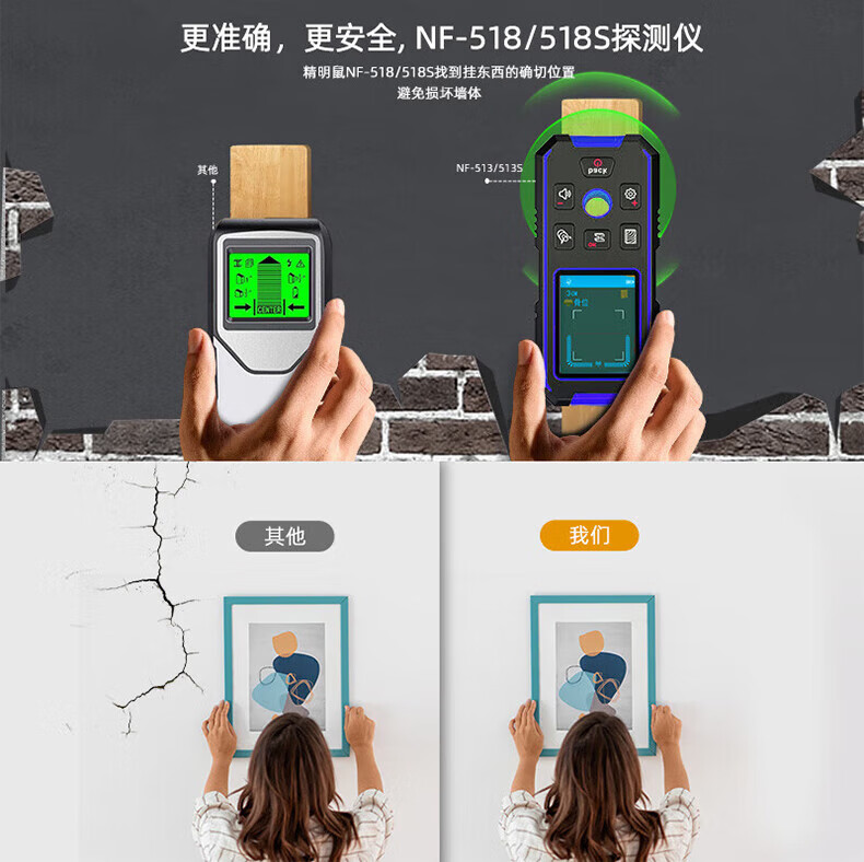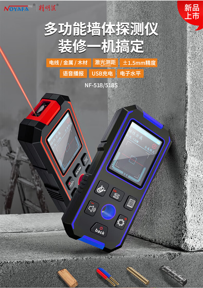 Smart Mouse NF-518 multi-function wall detector, steel bar position scanner, load-bearing wall wire drilling positioning