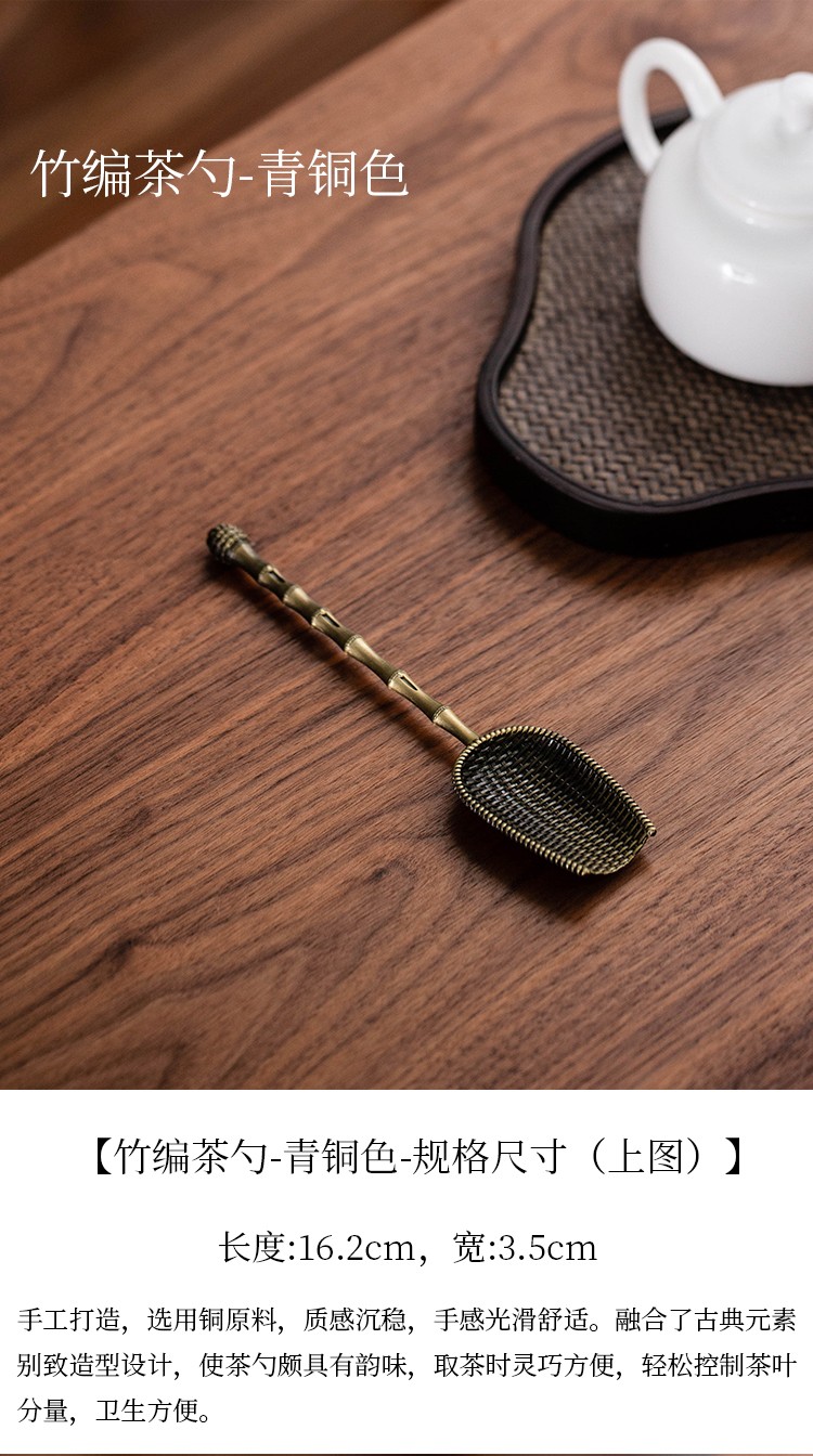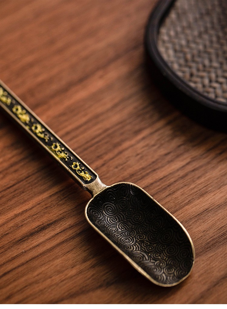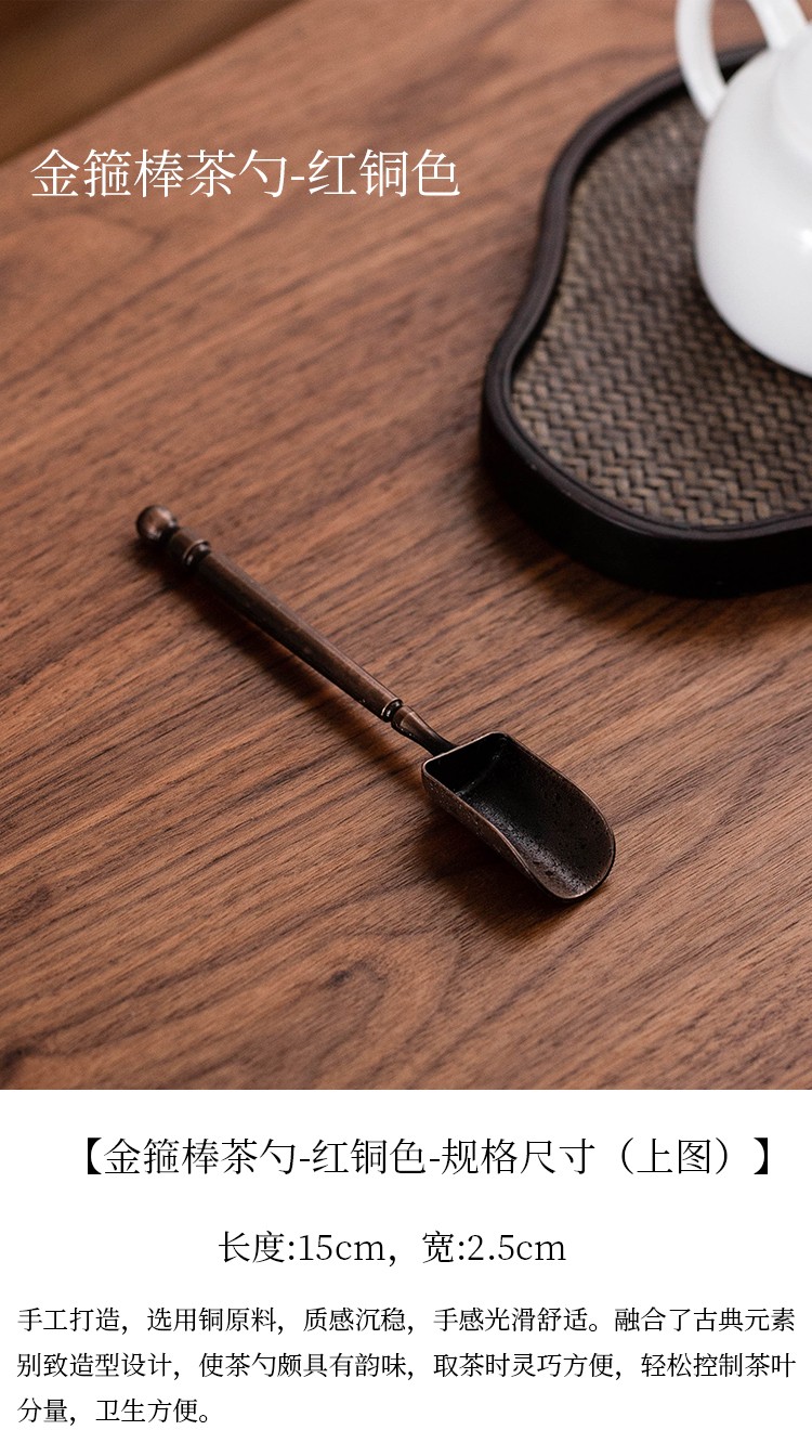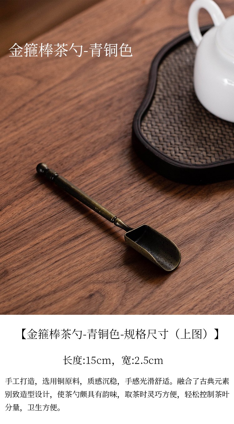 Kung Fu tea set, tea ceremony, copper alloy, teaspoon, tea spoon, tea shovel, tea leaves, tea cup, spoon accessories, single retro long-handled tea making tool, bronze tea spoon