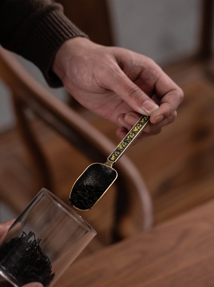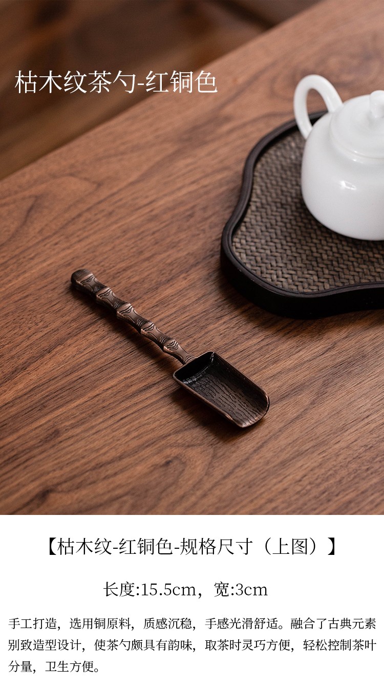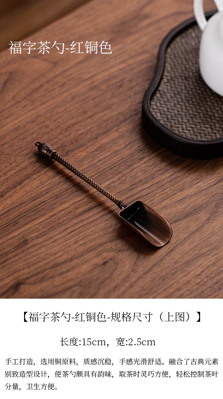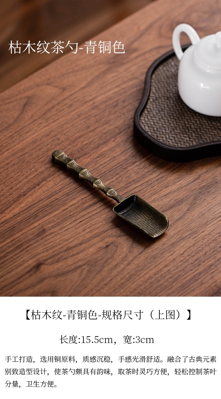 Kung Fu tea set, tea ceremony, copper alloy, teaspoon, tea spoon, tea shovel, tea leaves, tea cup, spoon accessories, single retro long-handled tea making tool, bronze tea spoon