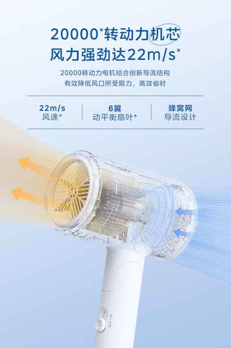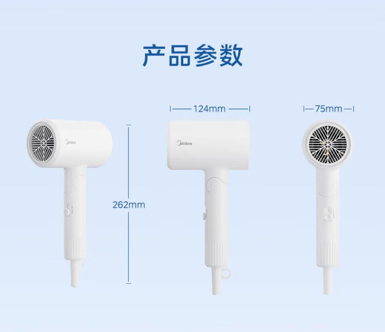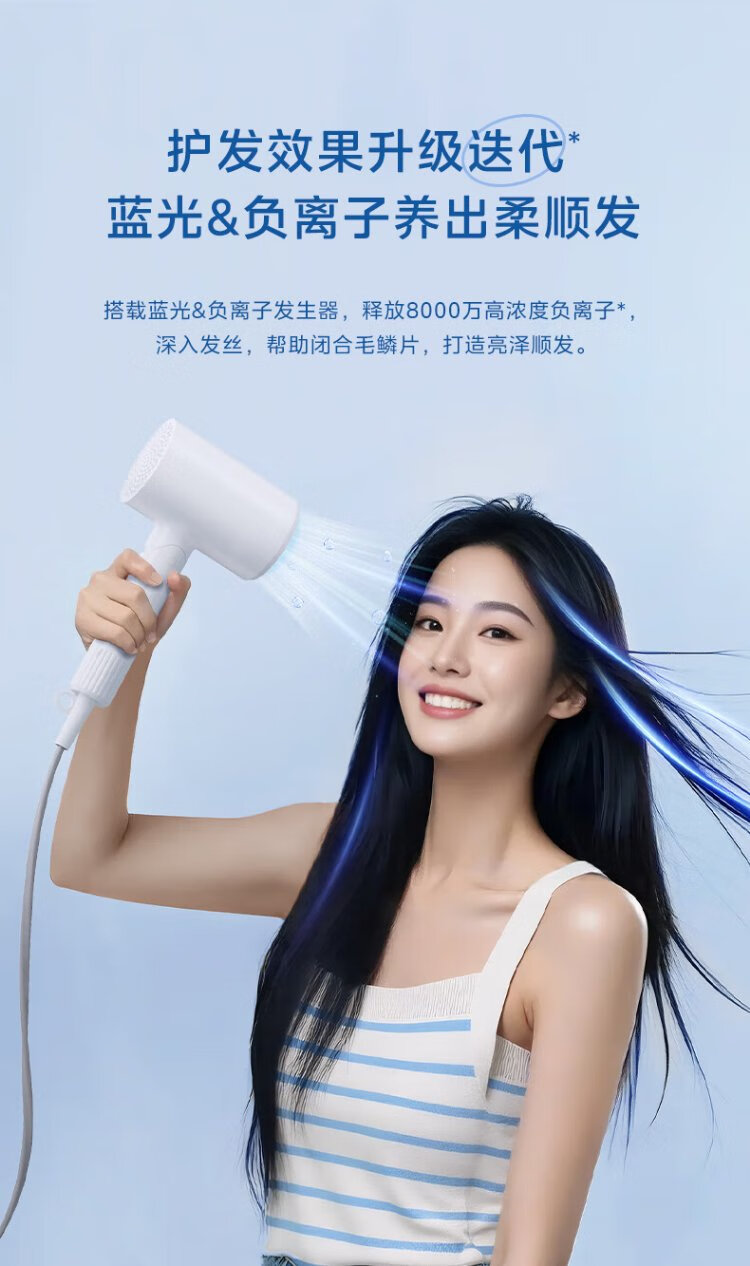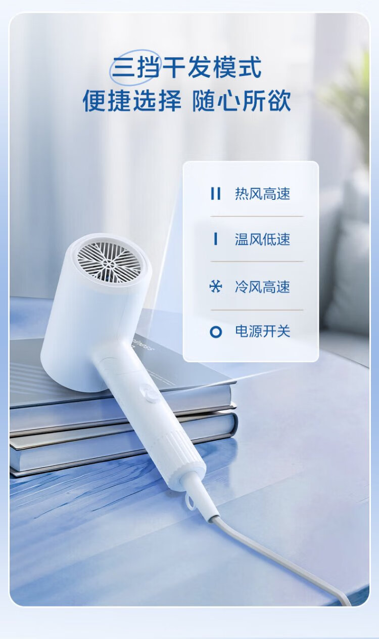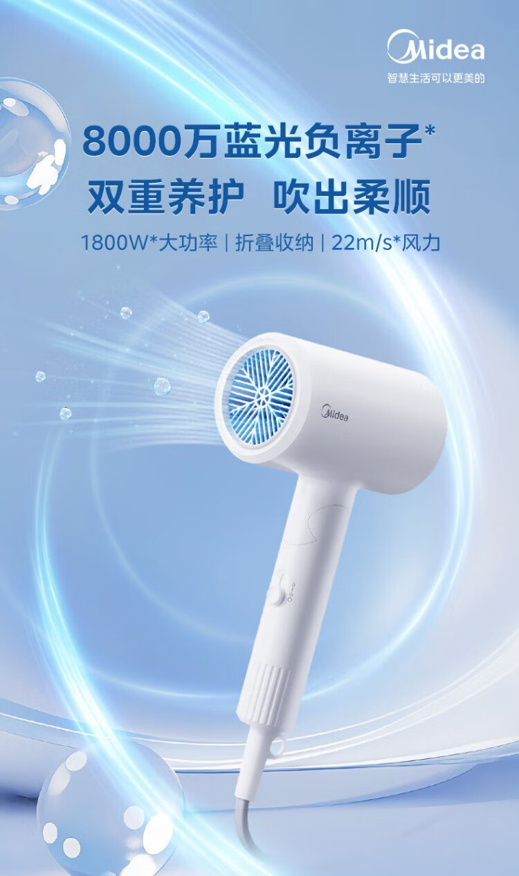 Midea 80 Million Blue Light Negative Ion Protection Hair Dryer Foldable Portable Hair Dryer High Power Hair Dryer FZ101 (LN) 1800W Holiday/Birthday Gift Recommendation