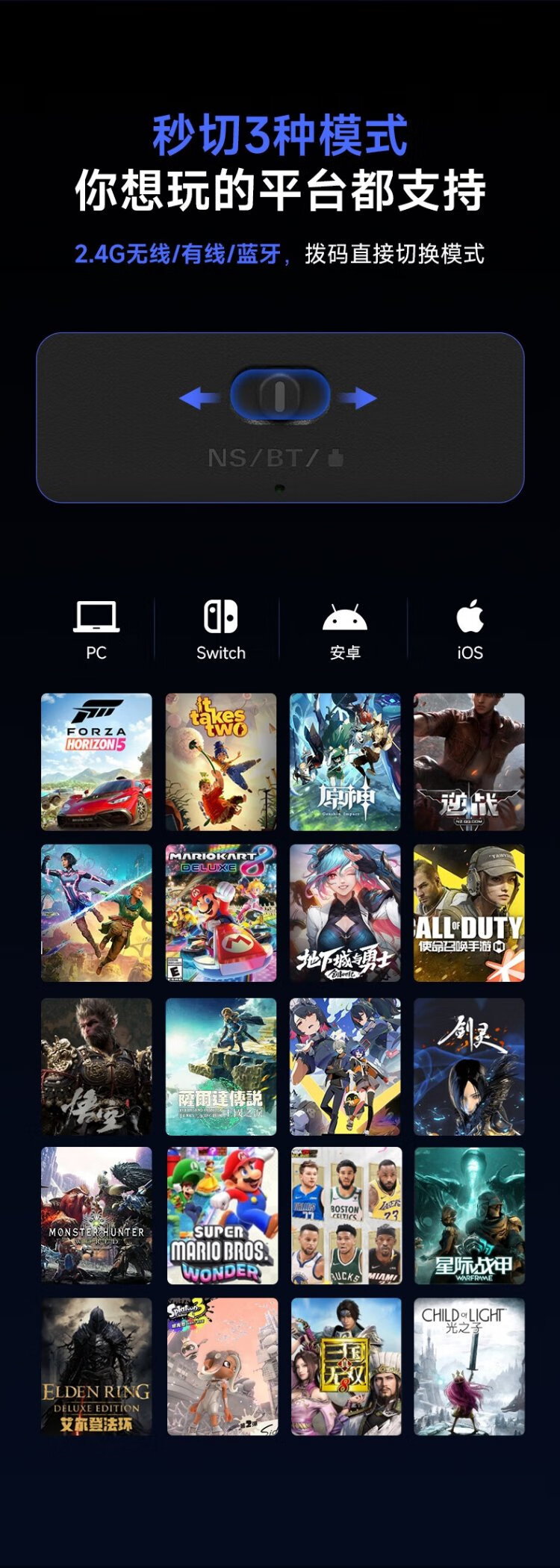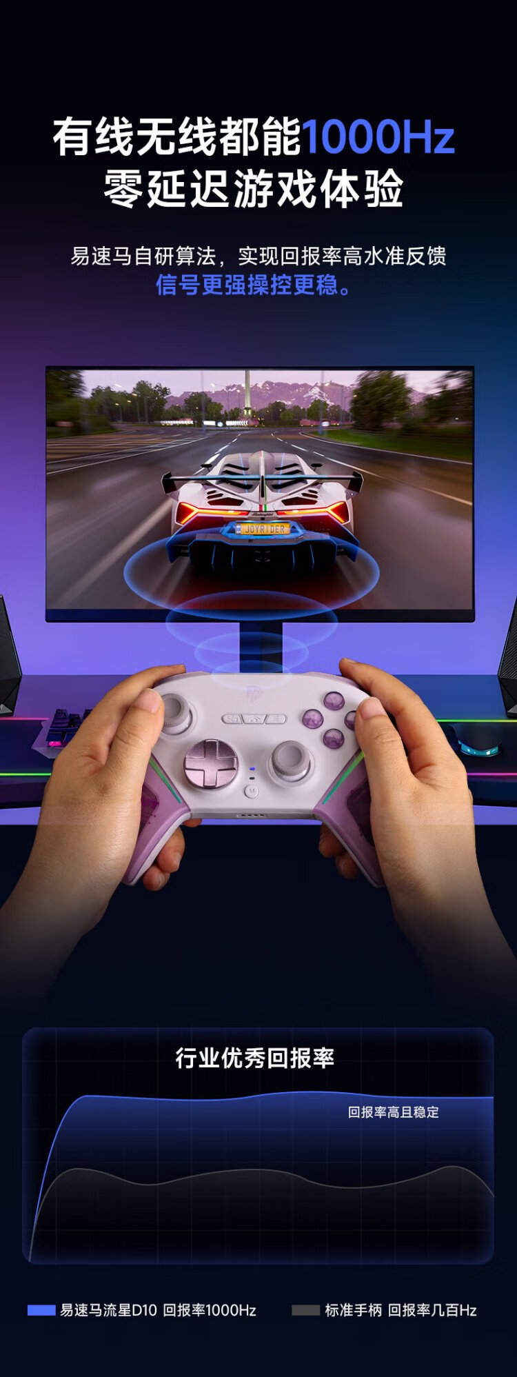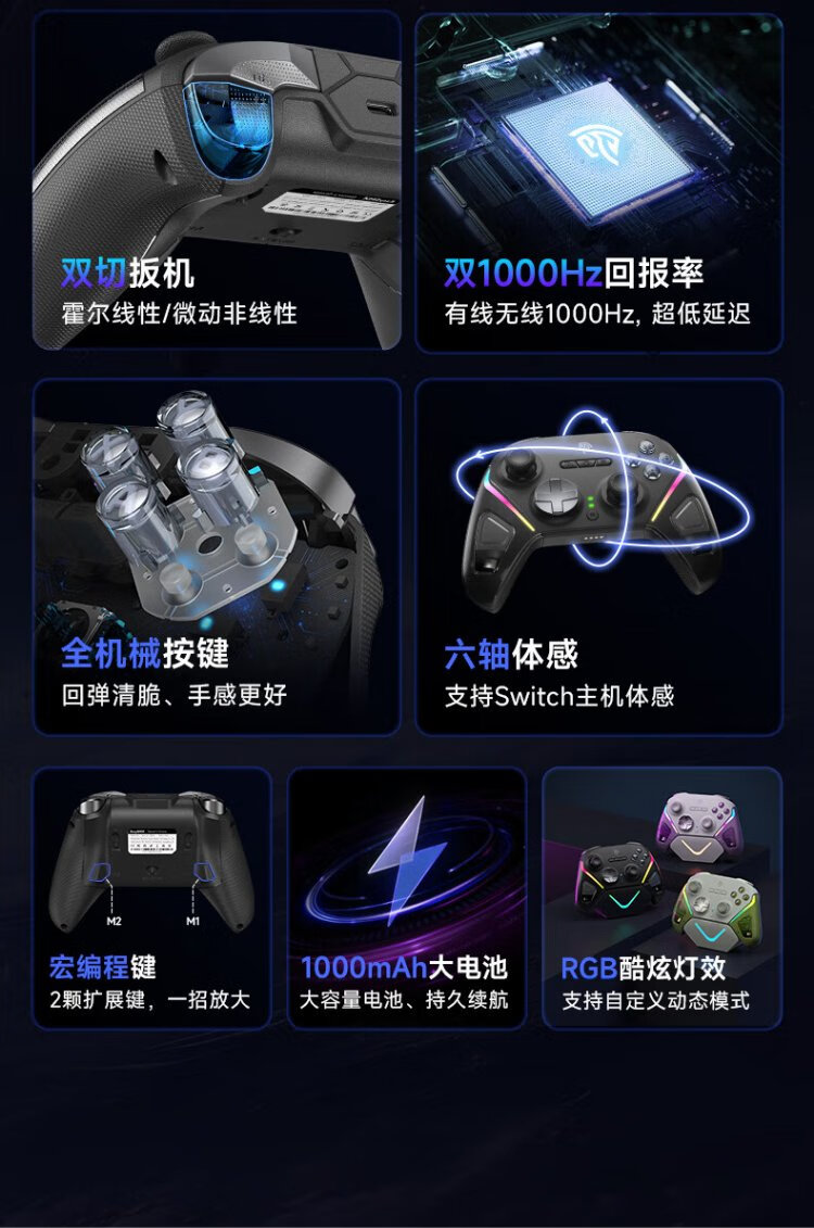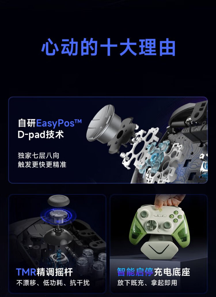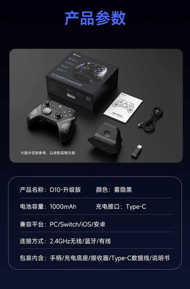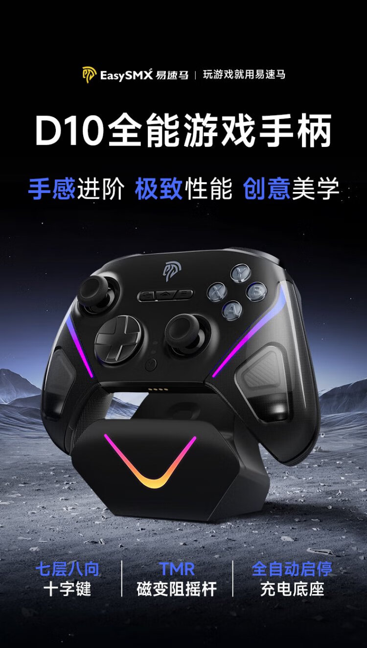 EasySMX Meteor D10 Wireless Game Controller Peripheral TMR Rocker Double Cut Trigger Switch2 Bluetooth PC Android Apple Mobile Computer Steam Ming Mo Yuan Xu Zhi Yu Mist Hidden Black