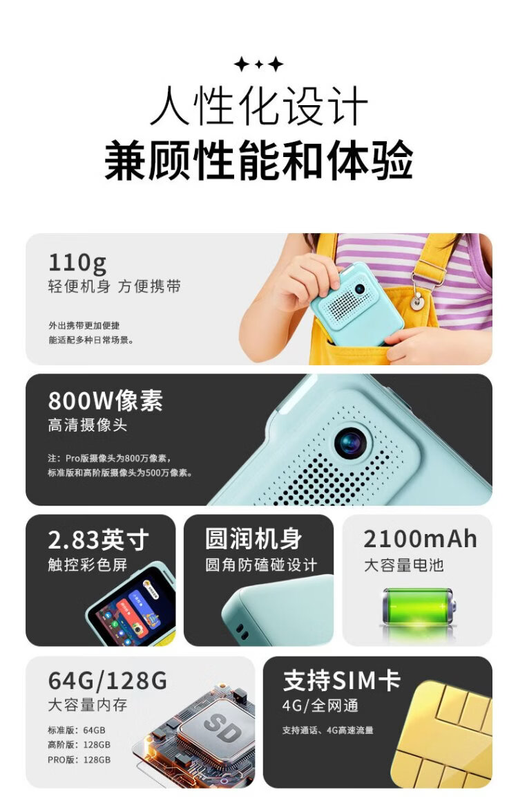 Mozhi Planet AI Outdoor Learning Machine Children's Phone Watch Mobile Phone Conversation Story Machine Camera Learning Machine Accompanying Learning Machine Primary School Word Machine Early Education Toy Polaroid Birthday Gift 128G