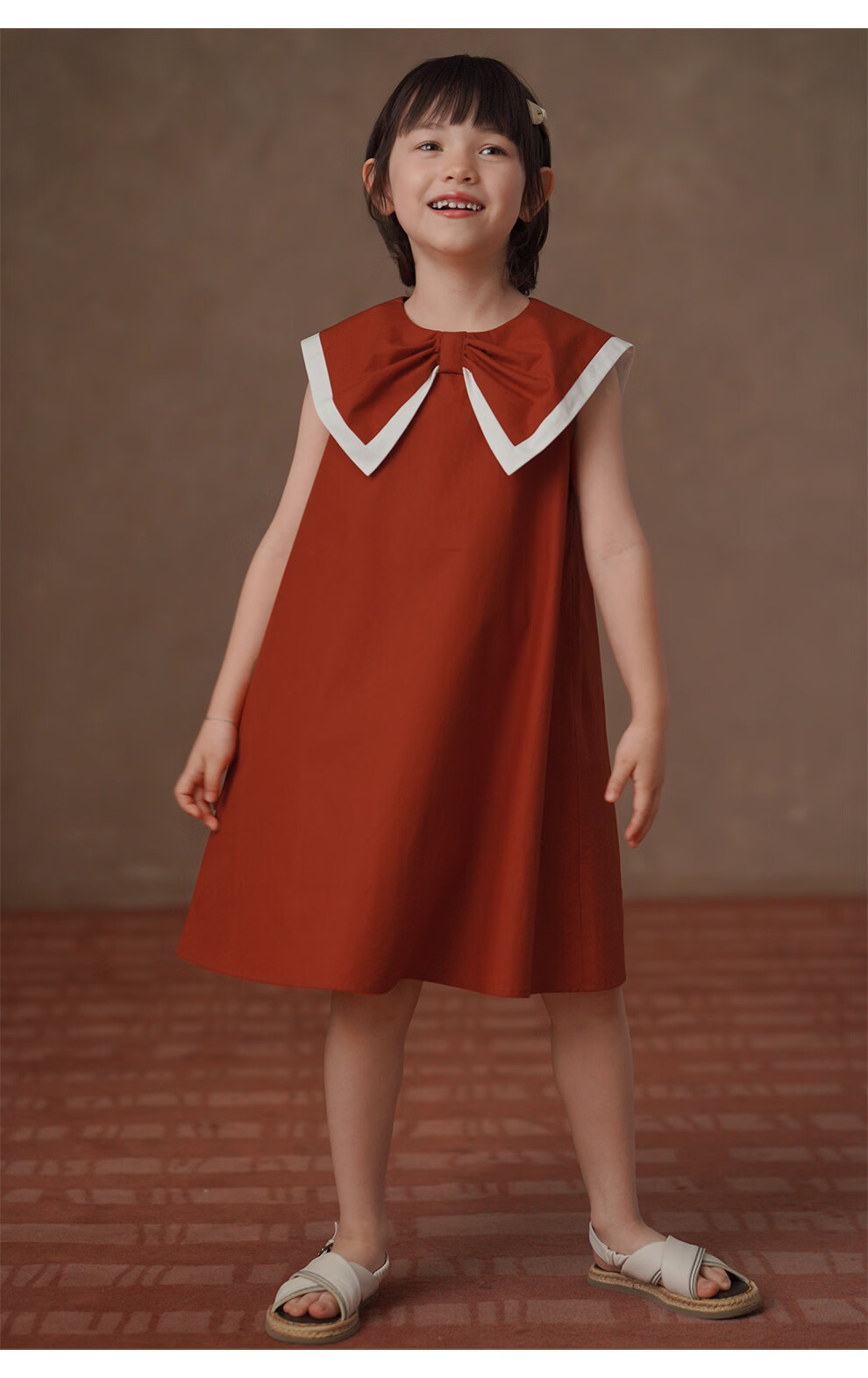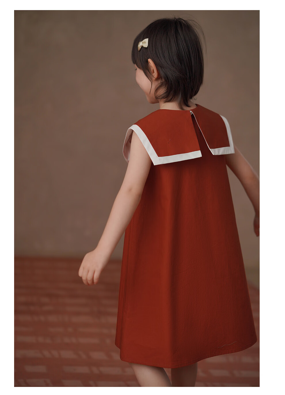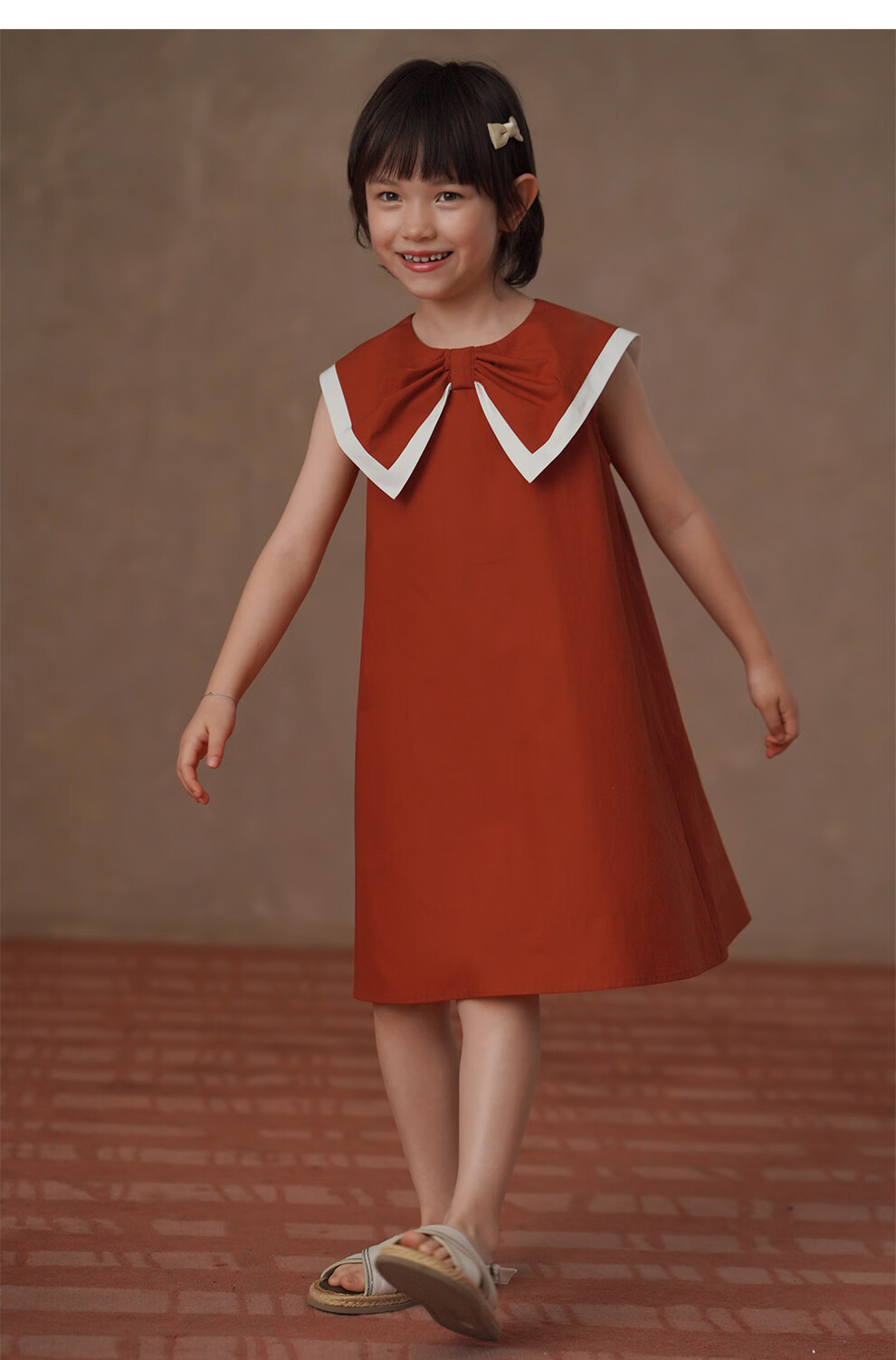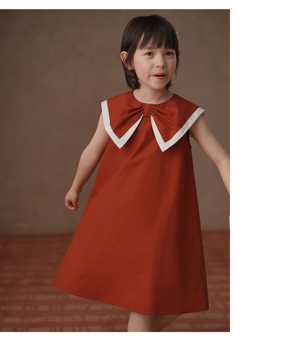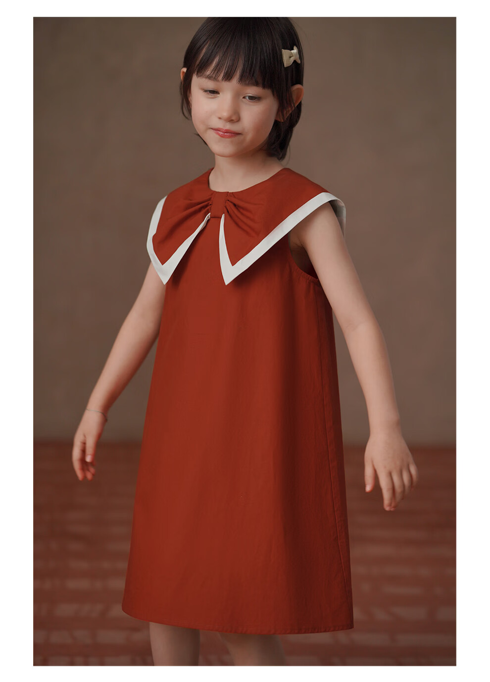 Hacikis children's clothing summer girls' vest dress sweet contrasting color large collar dress children's mid-length skirt skin-friendly cotton