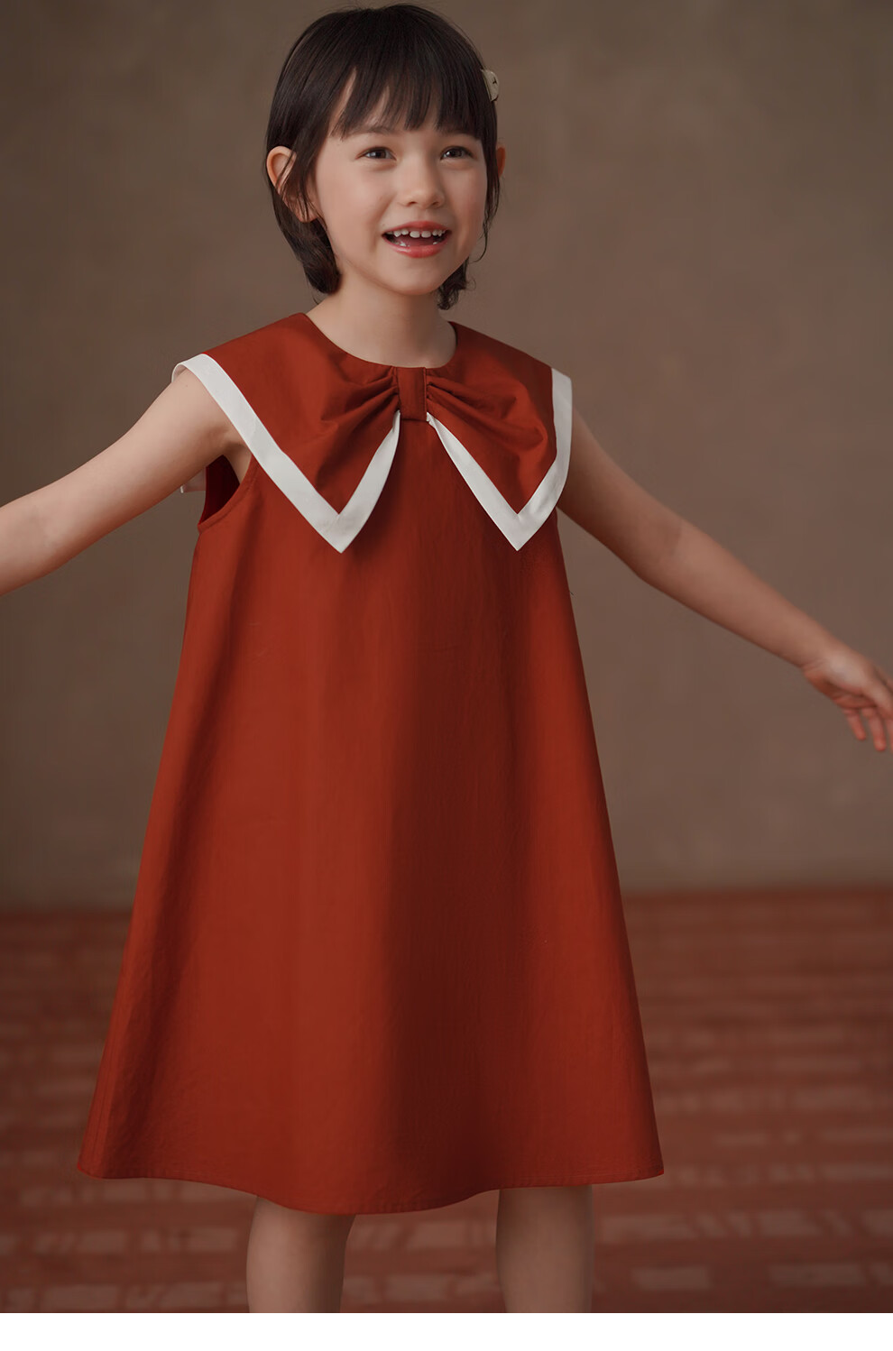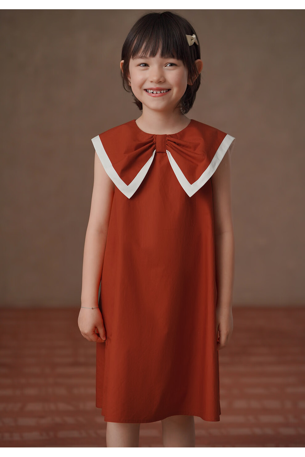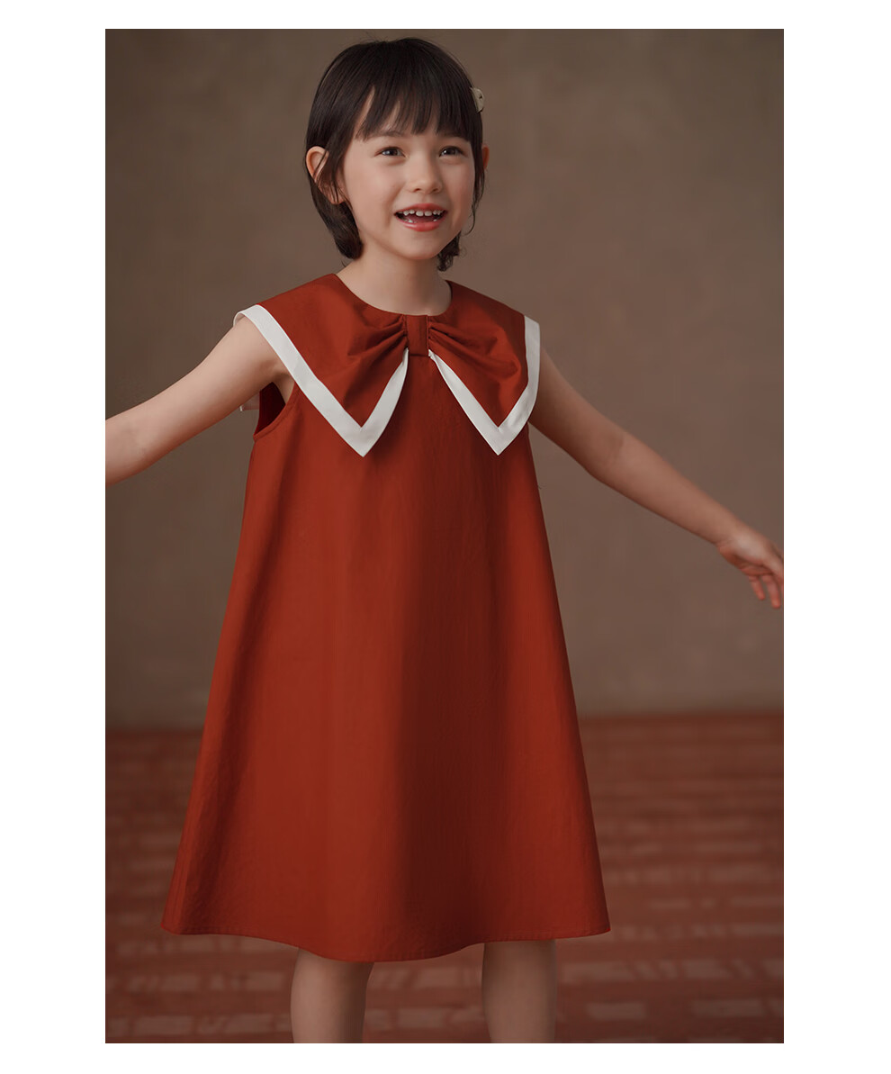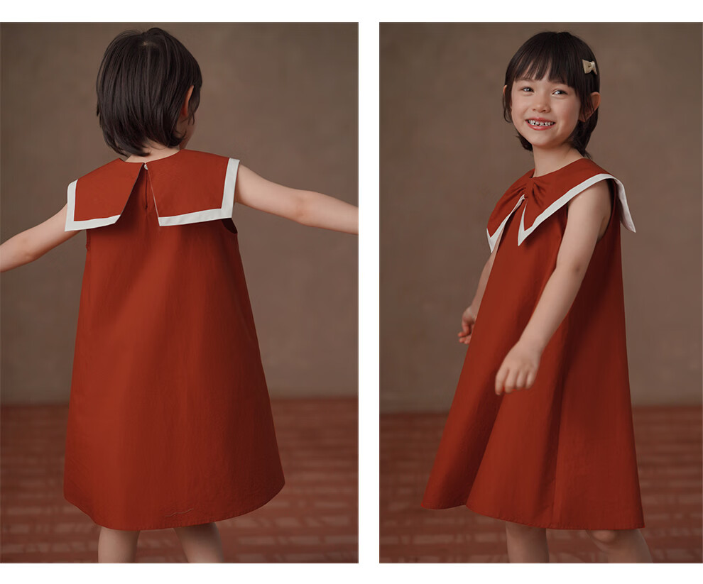 Hacikis children's clothing summer girls' vest dress sweet contrasting color large collar dress children's mid-length skirt skin-friendly cotton