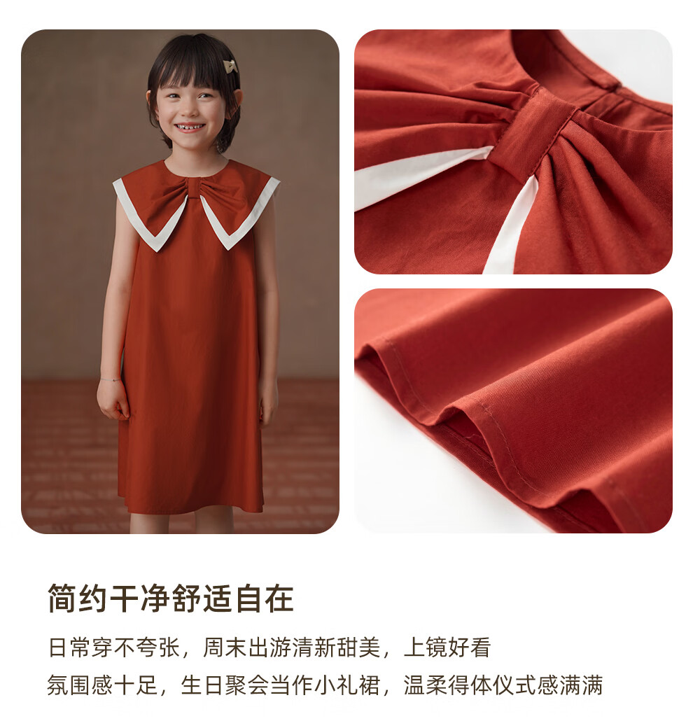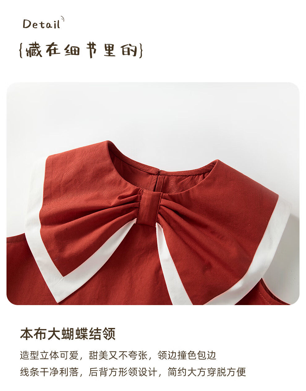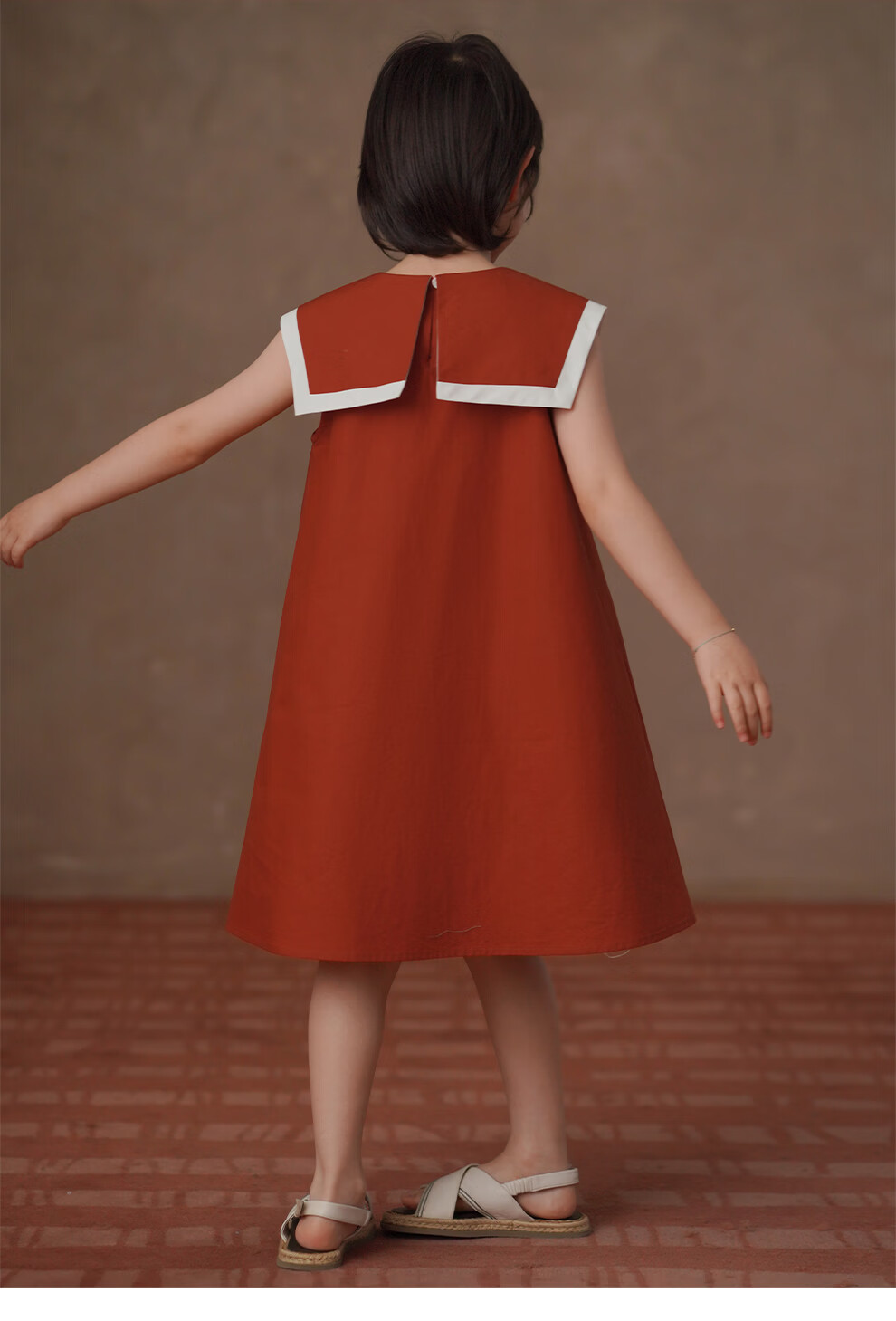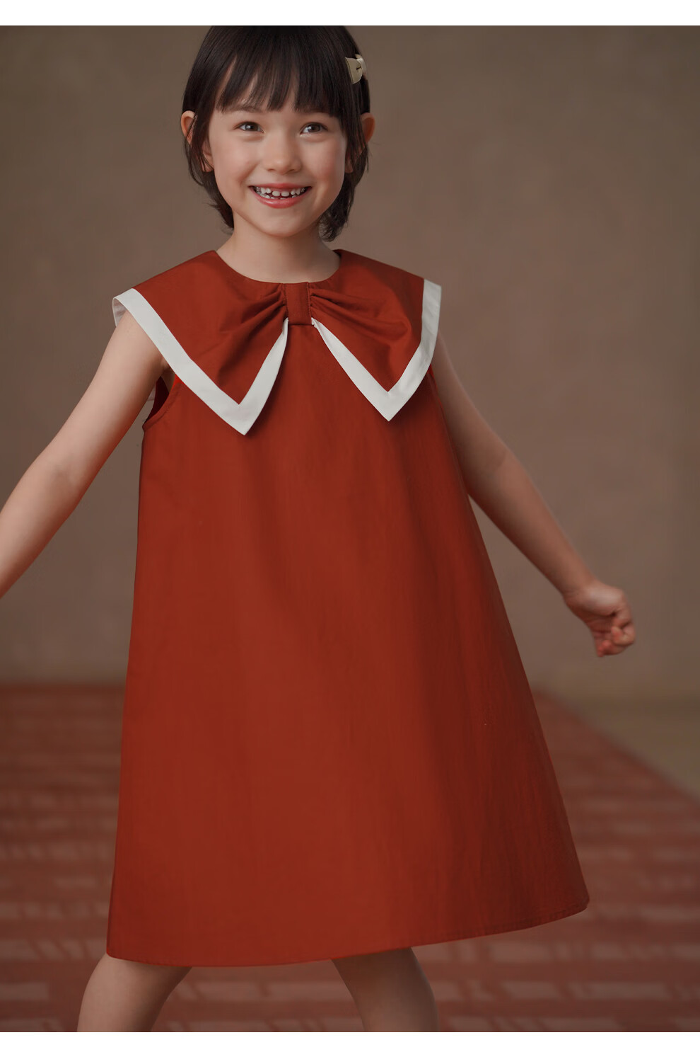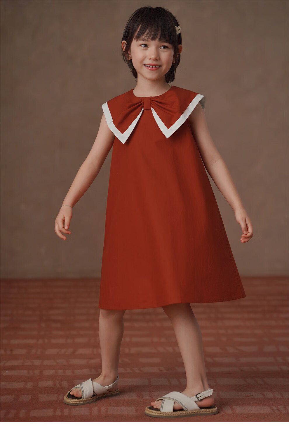 Hacikis children's clothing summer girls' vest dress sweet contrasting color large collar dress children's mid-length skirt skin-friendly cotton