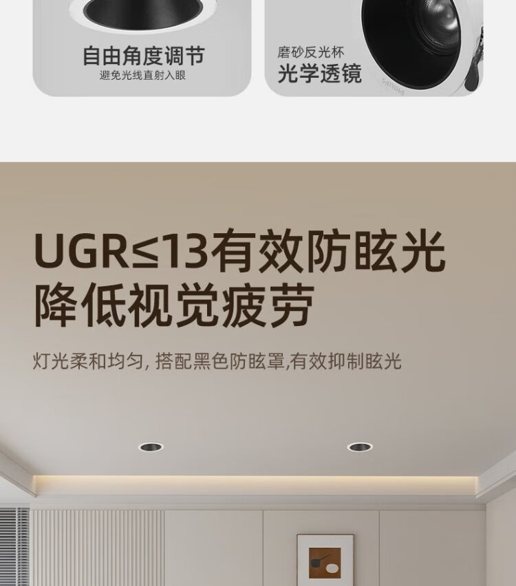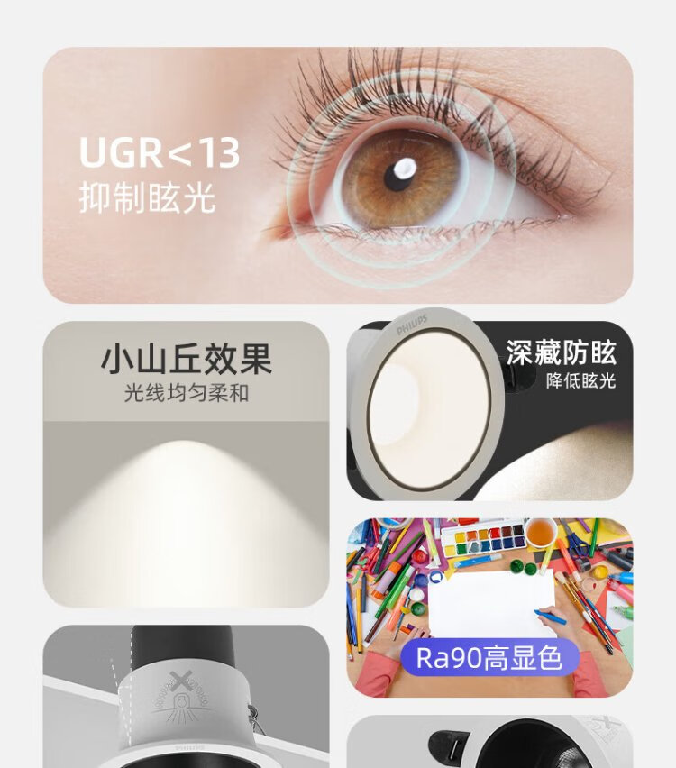 Philips (PHILIPS) LED spotlight deep barrel anti-glare embedded hill 24 ceiling light 11W warm white light 4000K opening 7-7.5cm