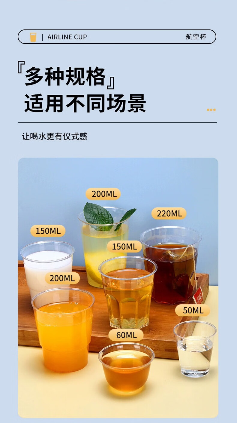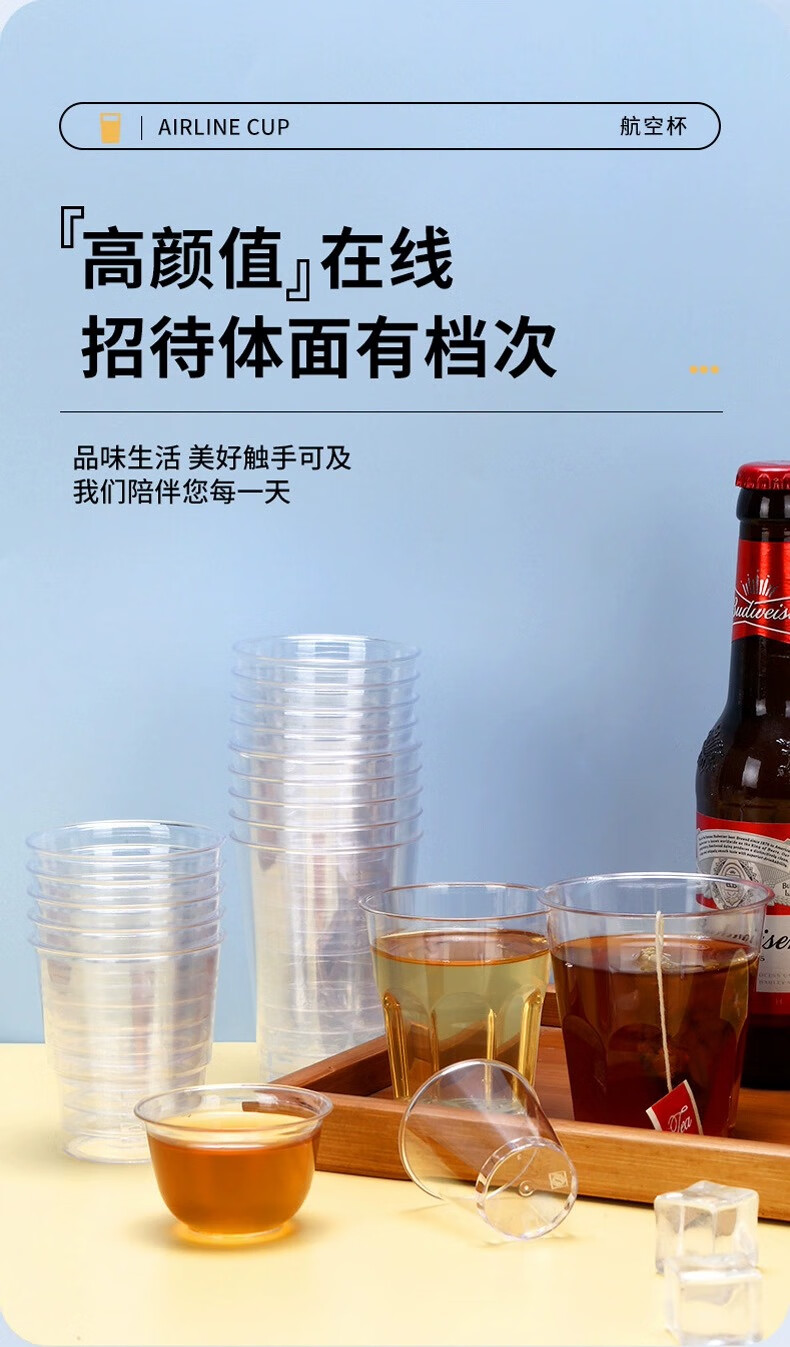 Jieribang disposable aviation cup 100ml*50 food grade cups thickened high temperature resistant and anti-fall plastic space cup