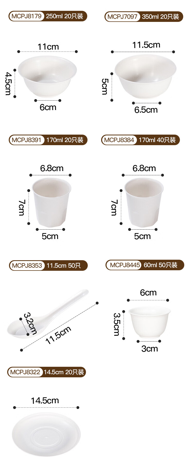 MAXCOOK Disposable Plates Biodegradable Corn Starch-Based Tableware Set Dinner Plate, Bowl and Chopsticks Set 20 Pieces MCPJ8322