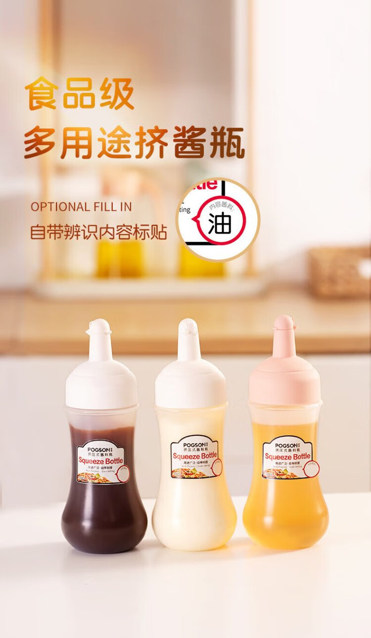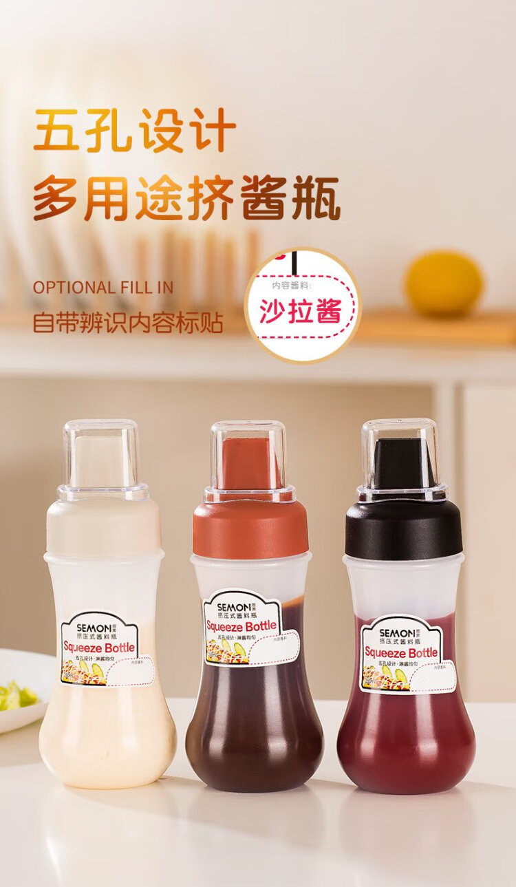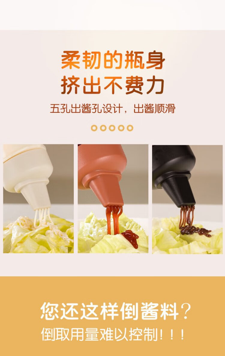 Forty Thousand Kilometers Kitchen Squeeze Sauce Bottle 5-hole Squeeze Bottle Tomato Salad Sauce Pot Seasoning Bottle Sauce Bottle 350ml 3 Pack
