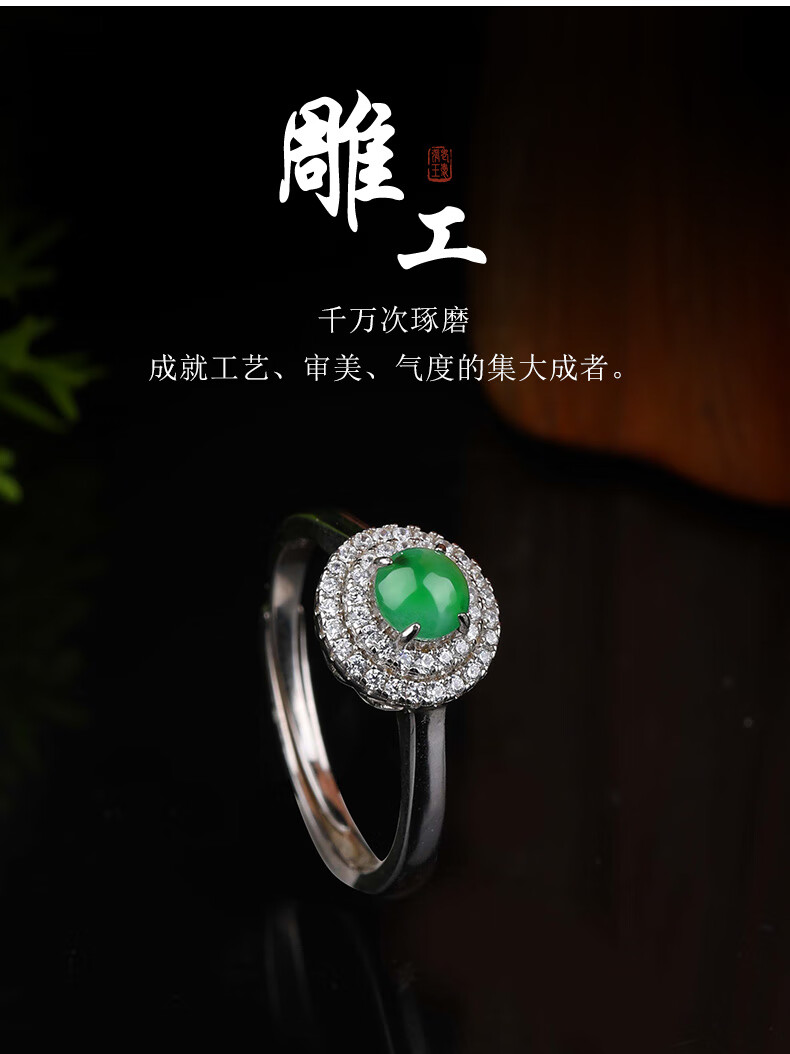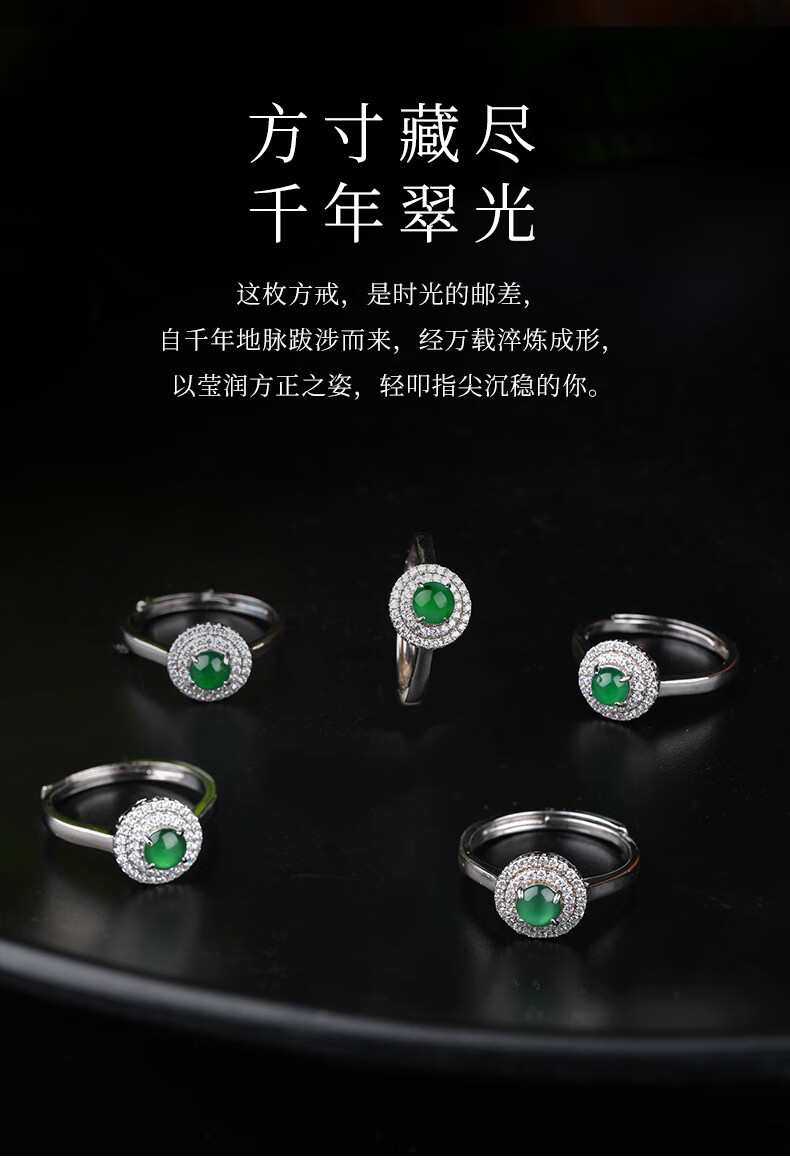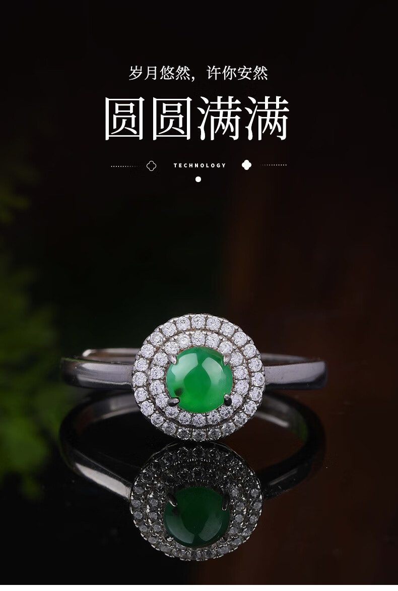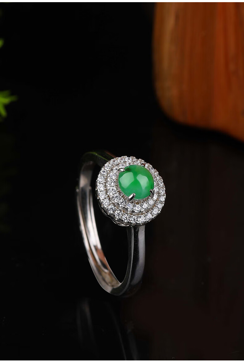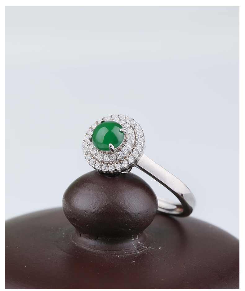 XIANGZHENFU JEWELRY 925 silver inlaid jade round ring for women, full green jade live ring for women, jade ring for birthday gift to girlfriend