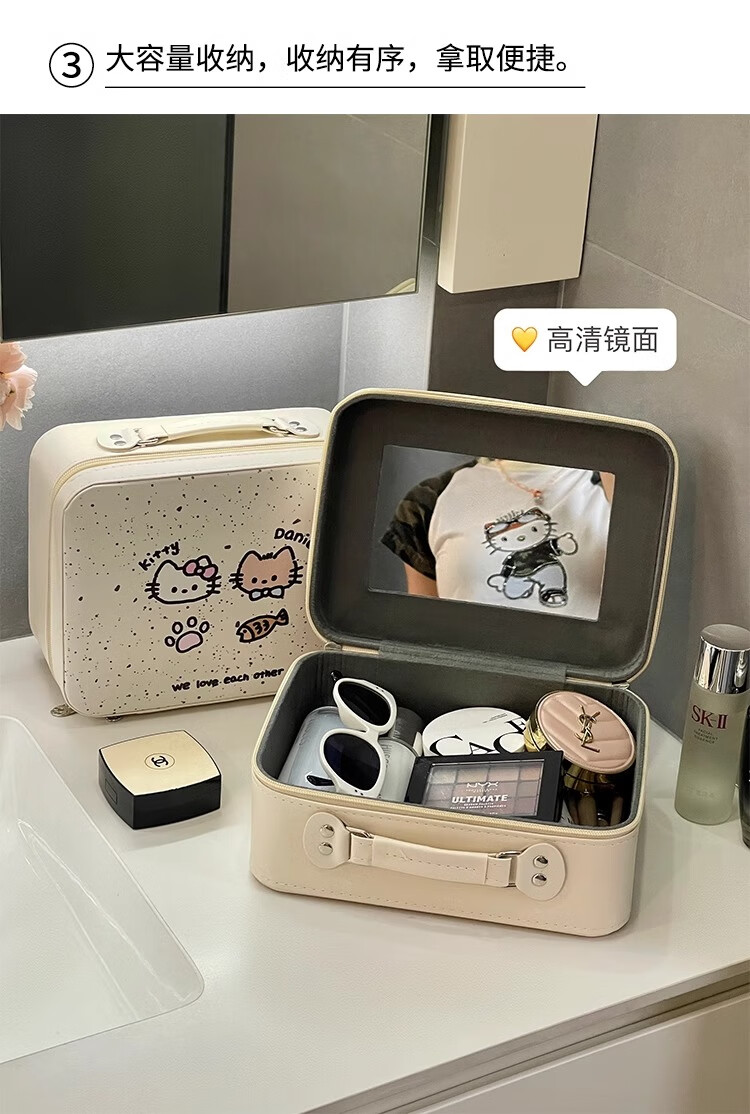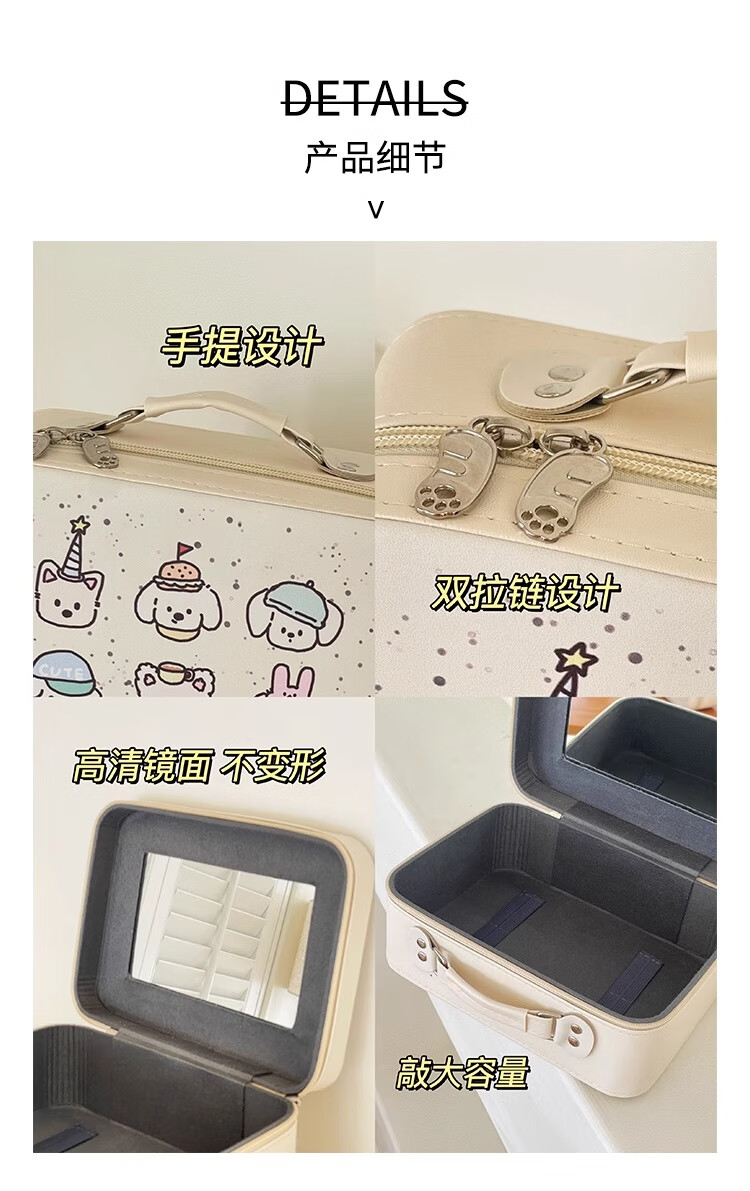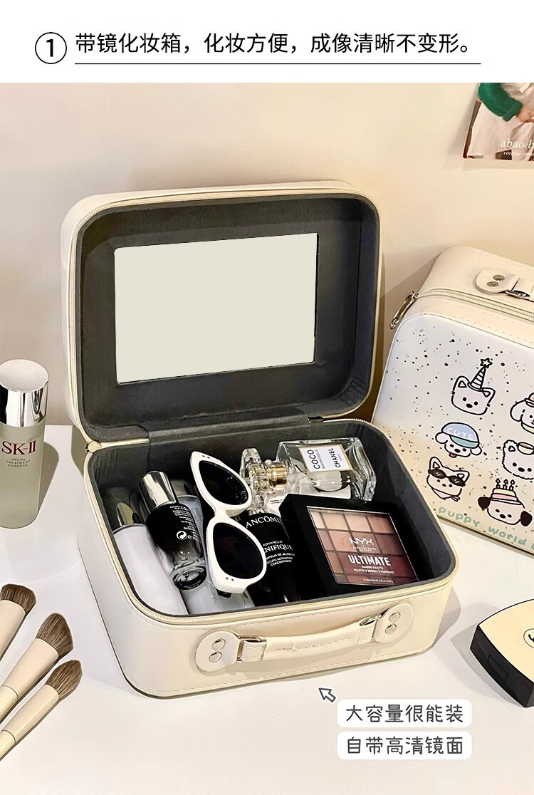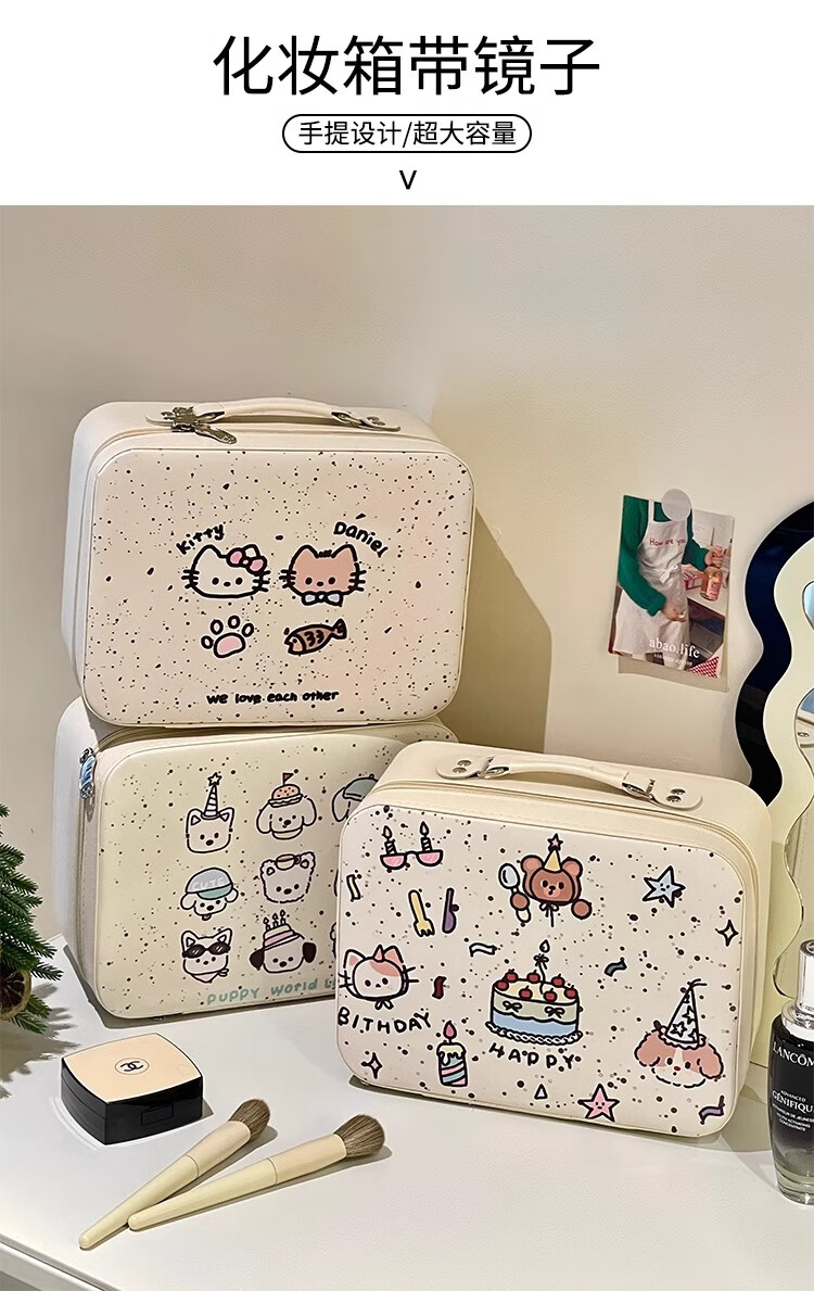 Eight sea birds cute cosmetic bag female niche carry-on suitcase large capacity mirror cosmetic case portable travel storage bag