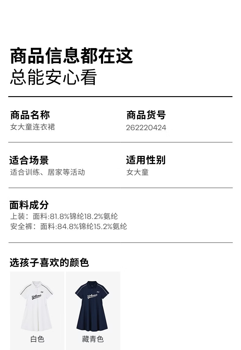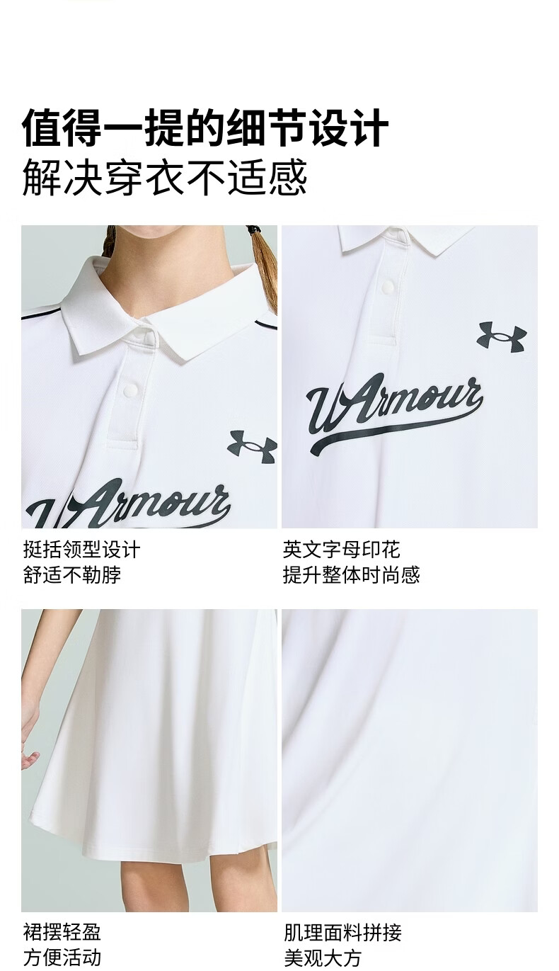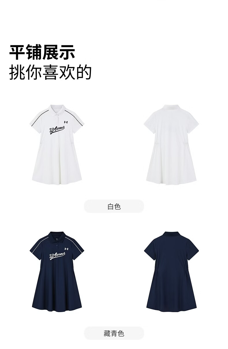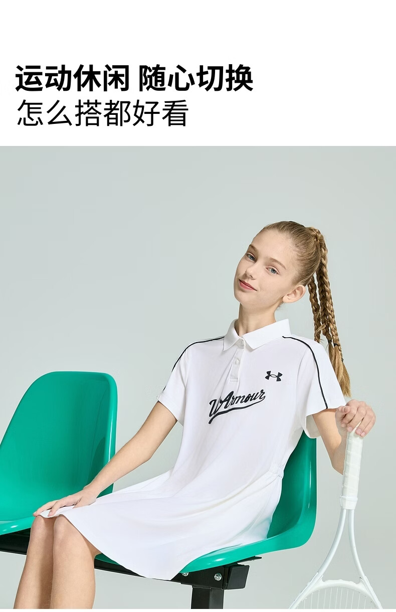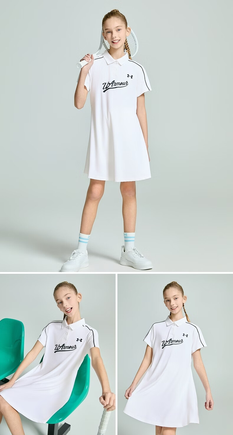 Under Armor girls' dress spring and summer sports training casual simple polo collar short-sleeved skirt 262220424