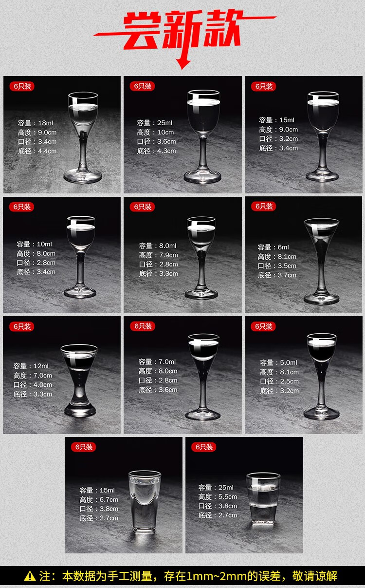 Manwei white wine glass set tall small wine glass one or two spirit glasses bullet cup one cup household wine cup handmade H (5ml 6 pieces)