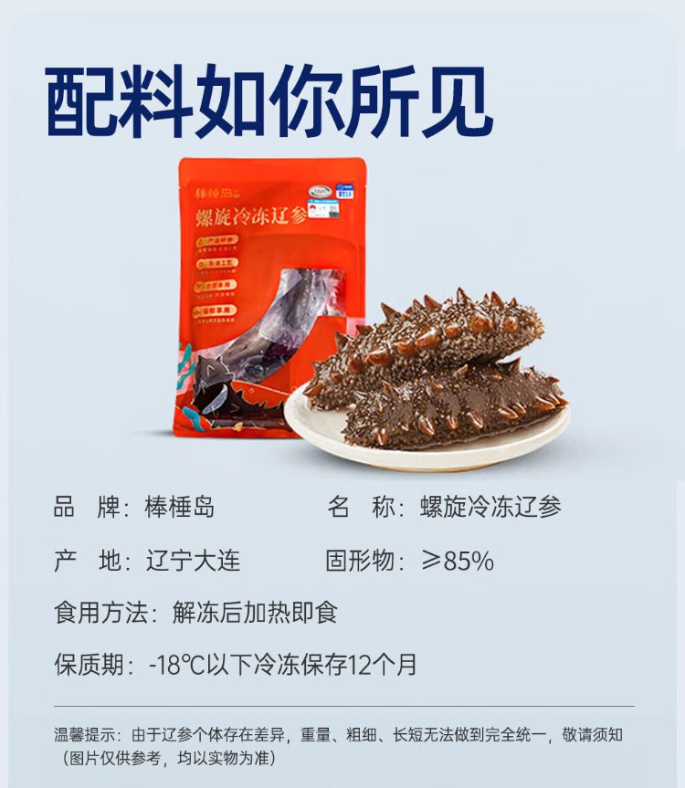 Bangchui Island Dalian Frozen Sea Cucumber 1 Jin Jin is equal to 0.5 kg 10-12 pieces Solids 85% No-soak Sea Cucumbers Not Ready to Eat Bagged