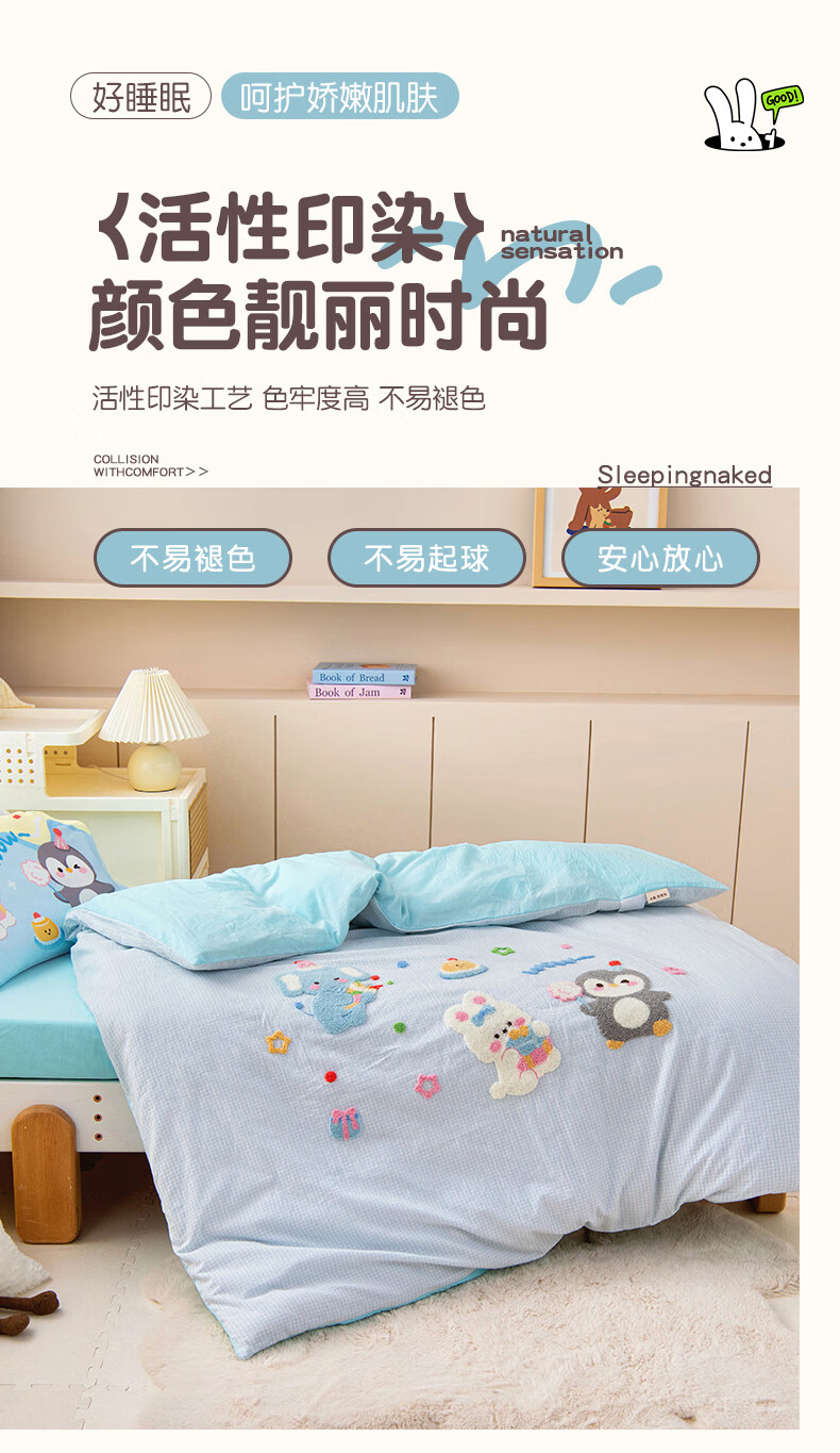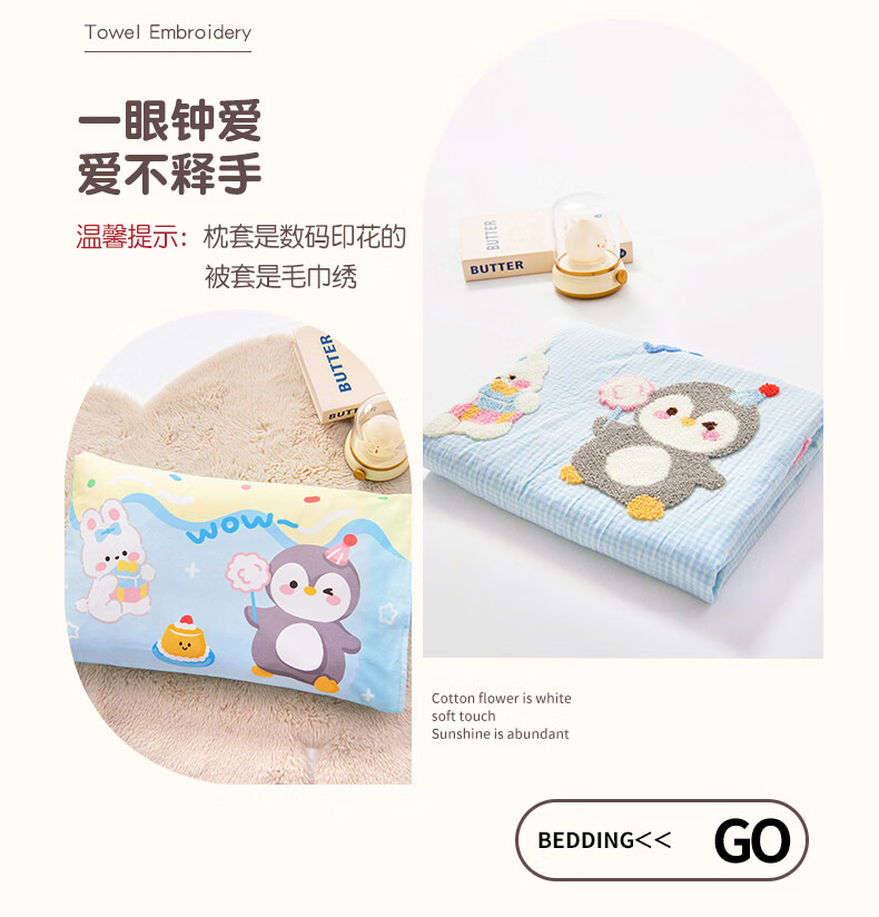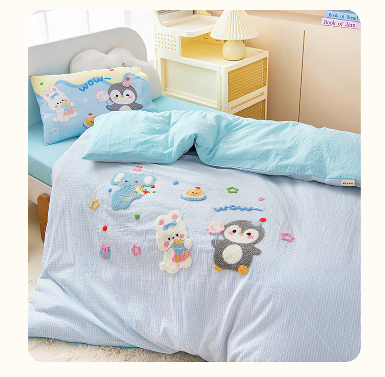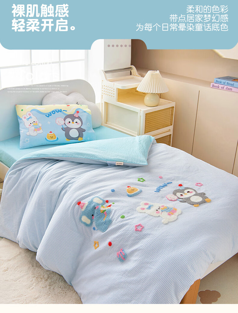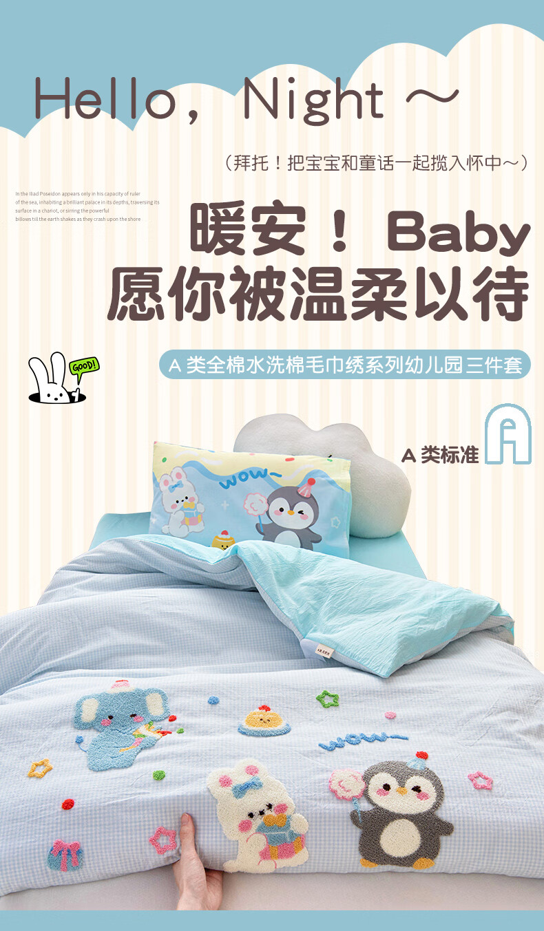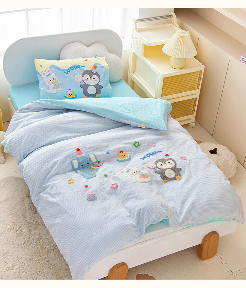 Ivy Class A cotton three-piece set kindergarten towel embroidered cotton bed sheet pillowcase quilt cover 120*150cm Little Elephant Paradise