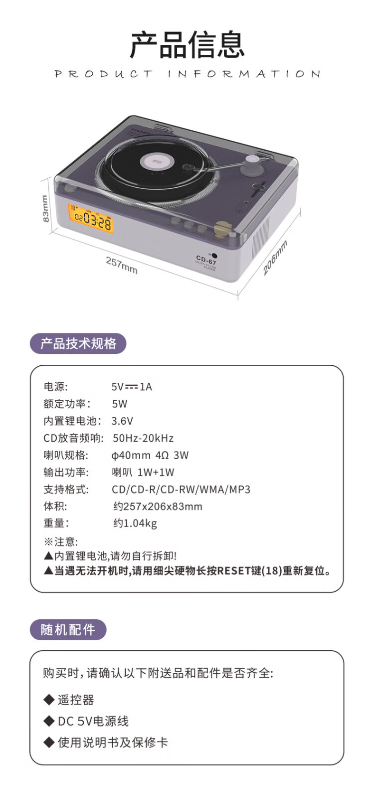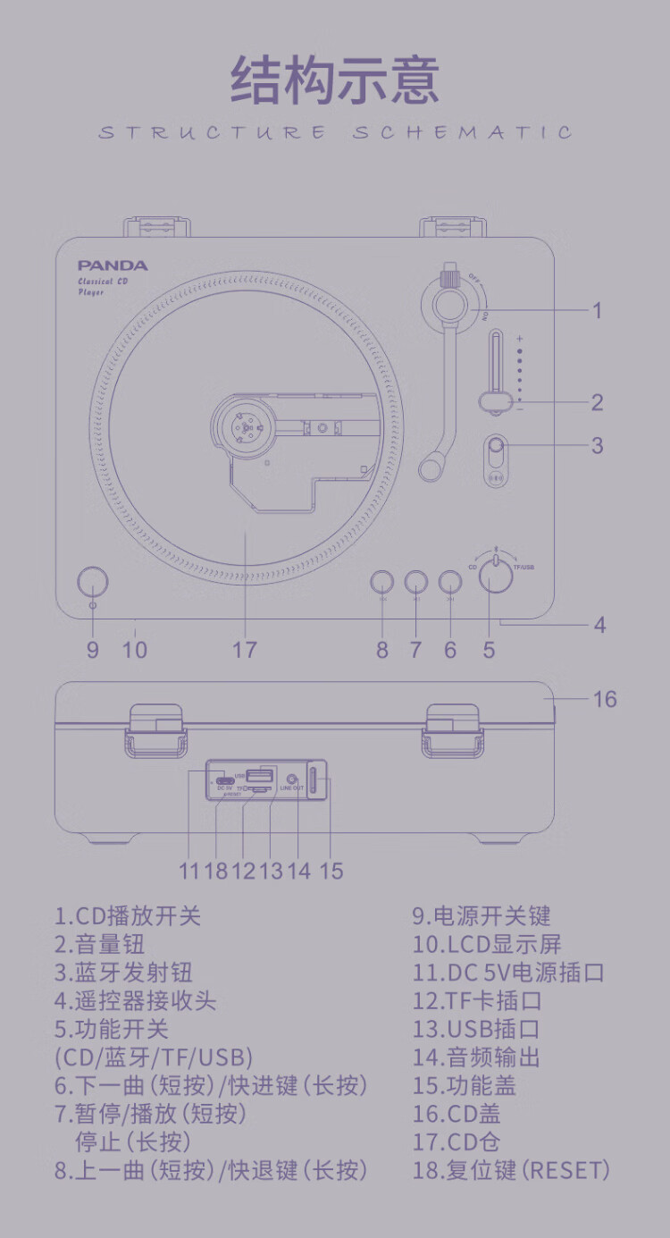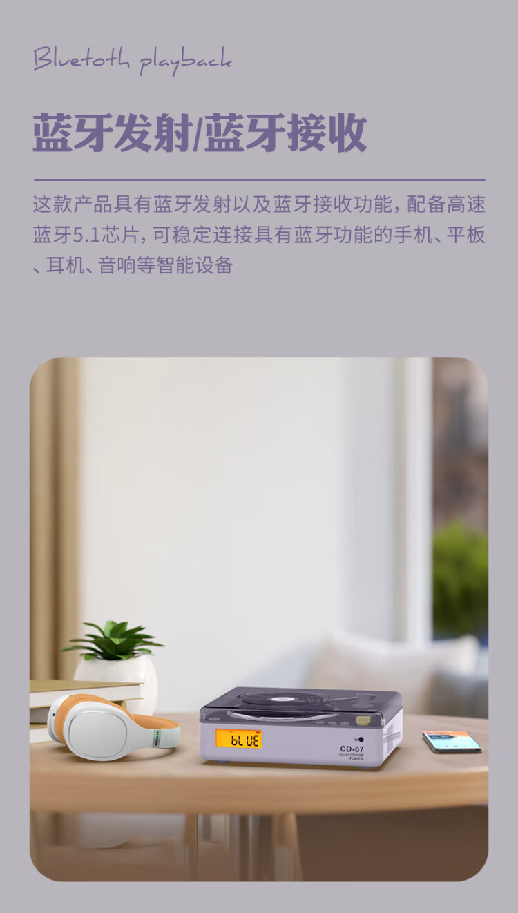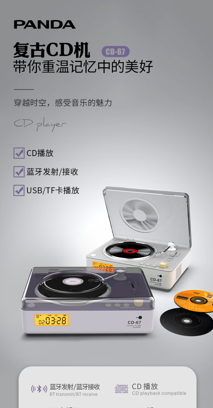 Panda (PANDA) CD-67 album cd player bluetooth player audio integrated home player disc audiophile-grade record (purple)
