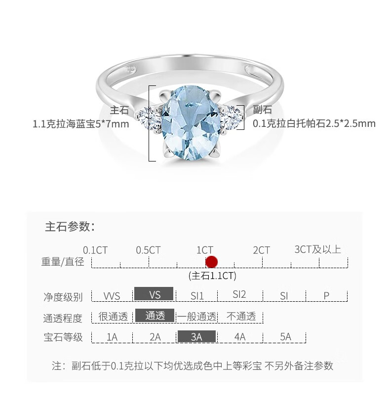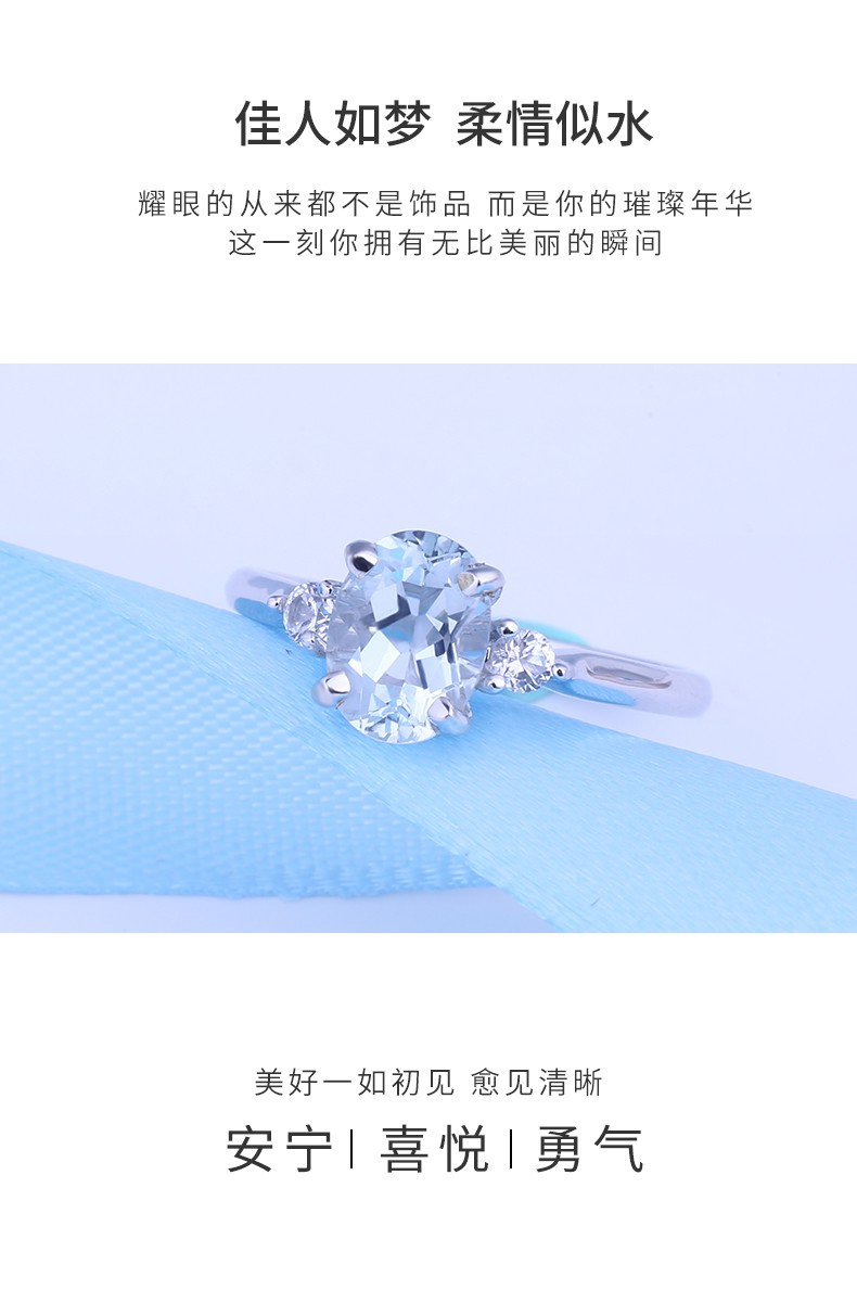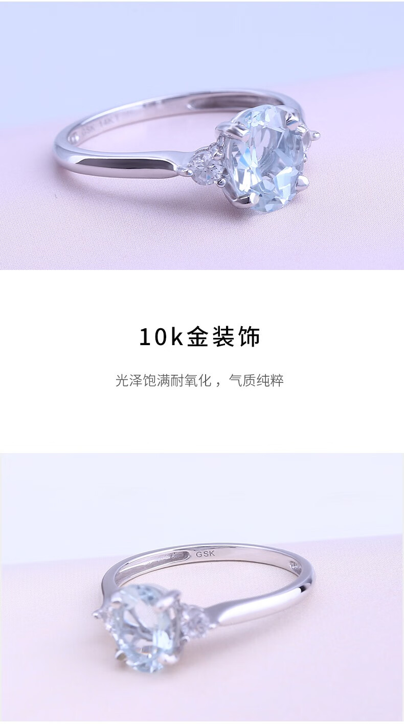 GEM STONE KING aquamarine ring for women set with 1.2 carat colored gemstones 10K classic and fashionable Valentine's Day gift for wife, US No. 5
