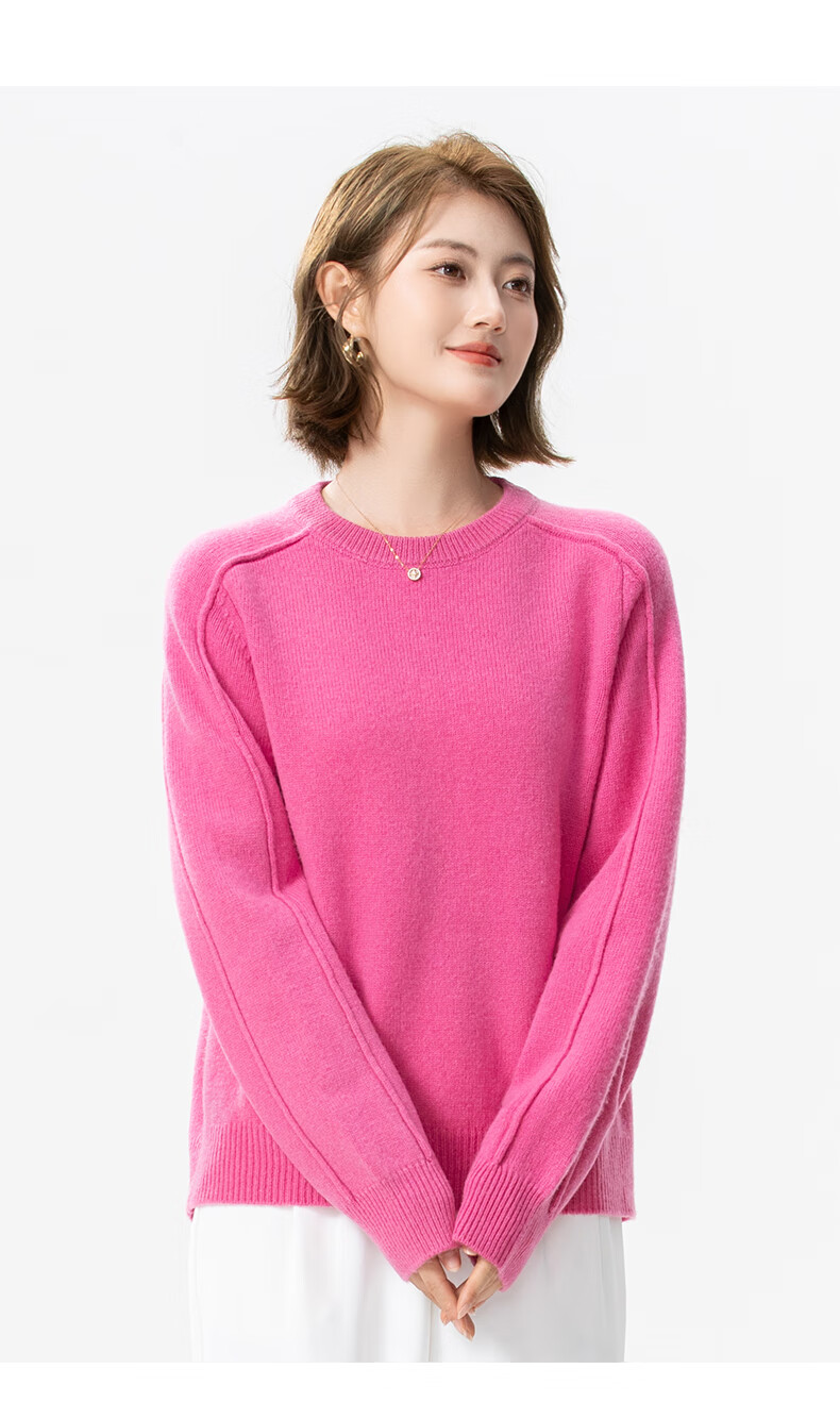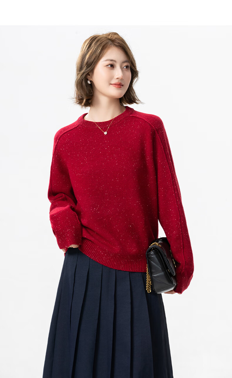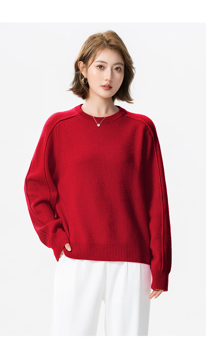 Romon 100% sheep wool pure wool sweater for women autumn and winter thick round neck loose bottoming shirt red pullover sweater