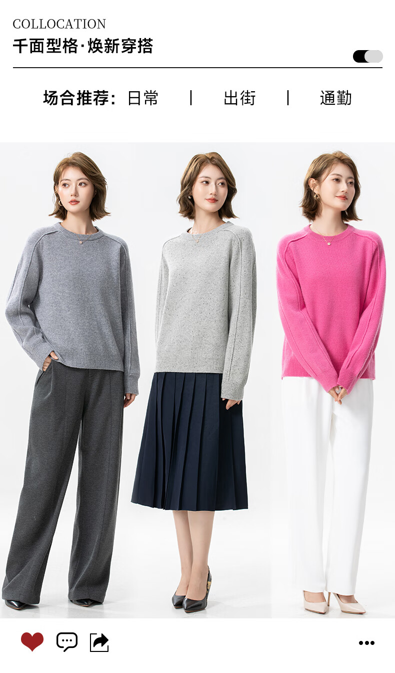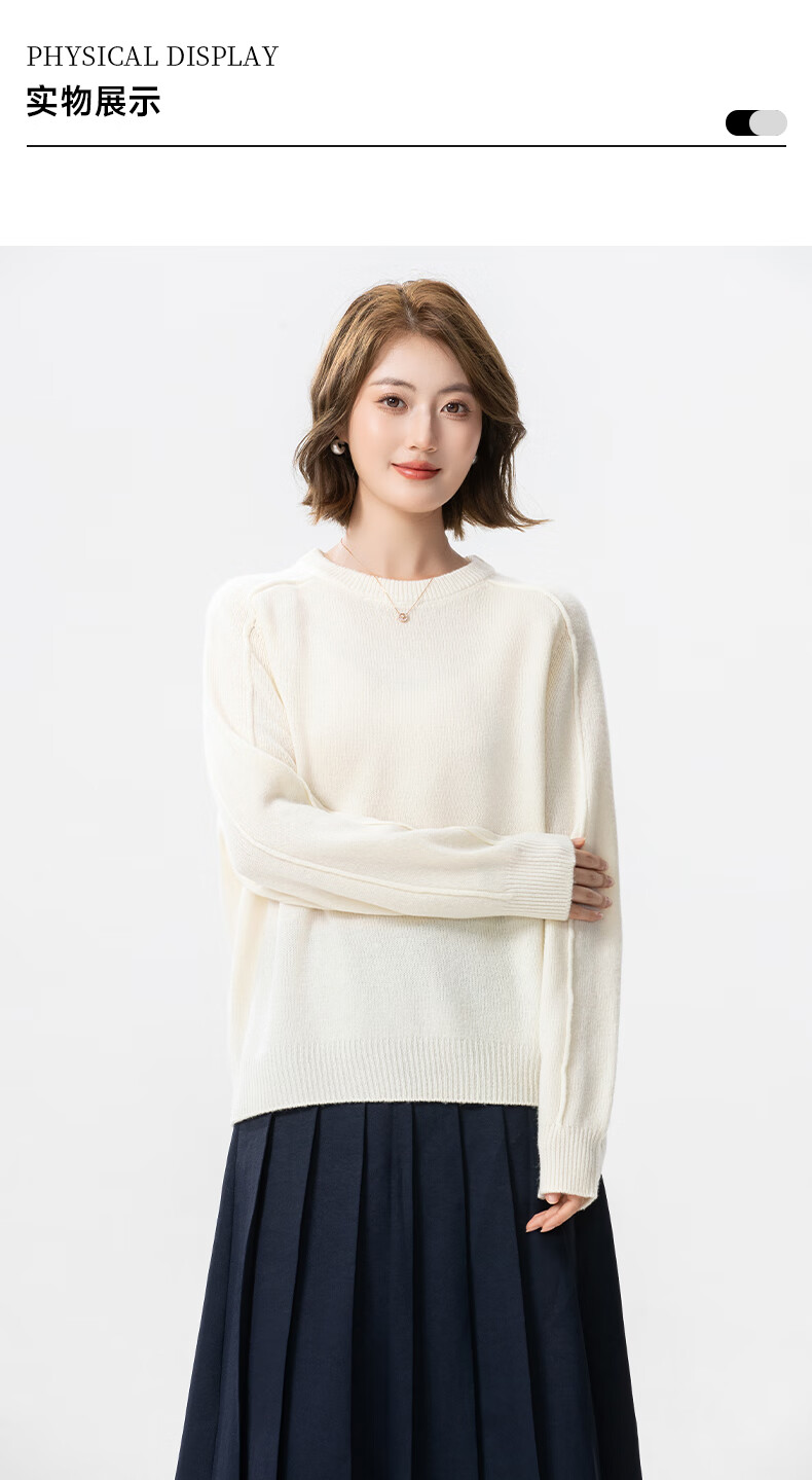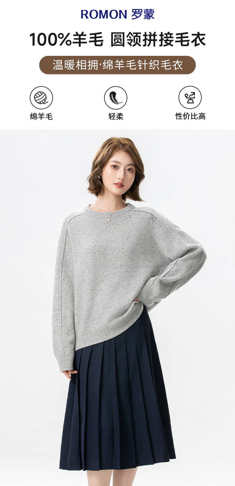 Romon 100% sheep wool pure wool sweater for women autumn and winter thick round neck loose bottoming shirt red pullover sweater