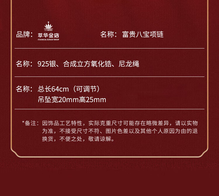 Cuihua Silver Necklace Women's National Trend Eight Treasures Compass Pendant for Girlfriend and Wife Birthday Commemorative Gift Light Luxury Niche