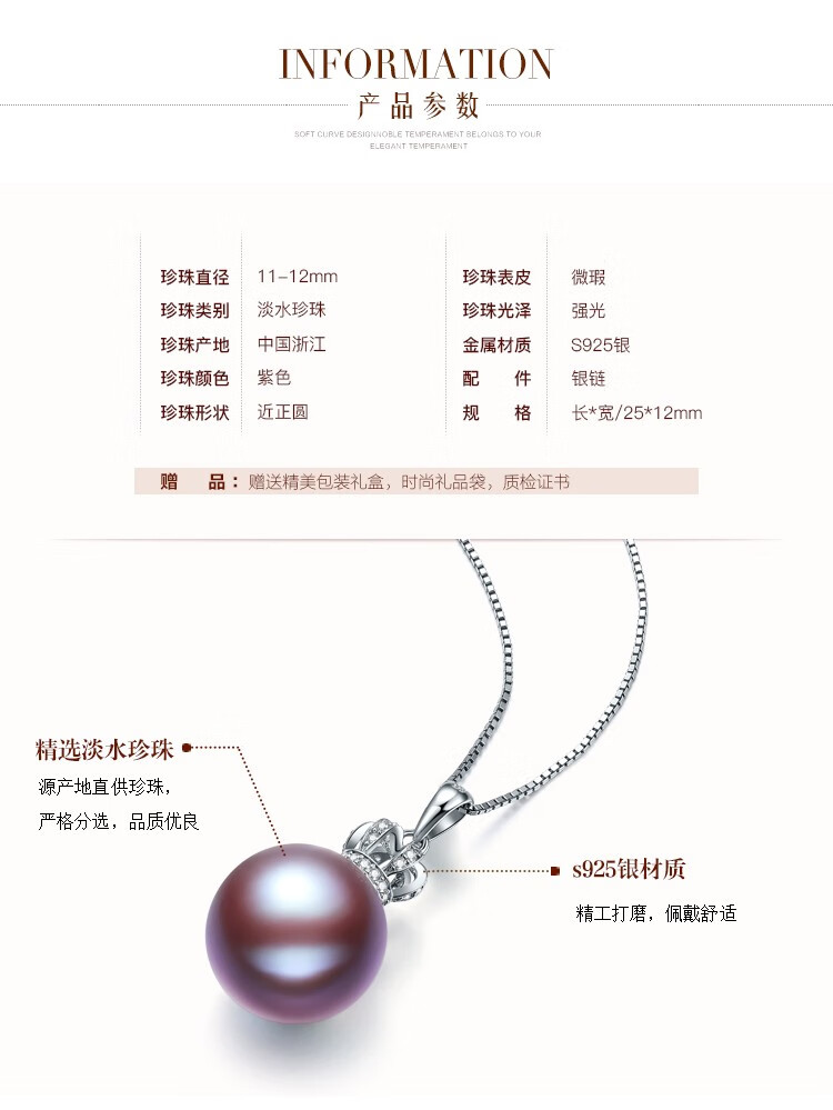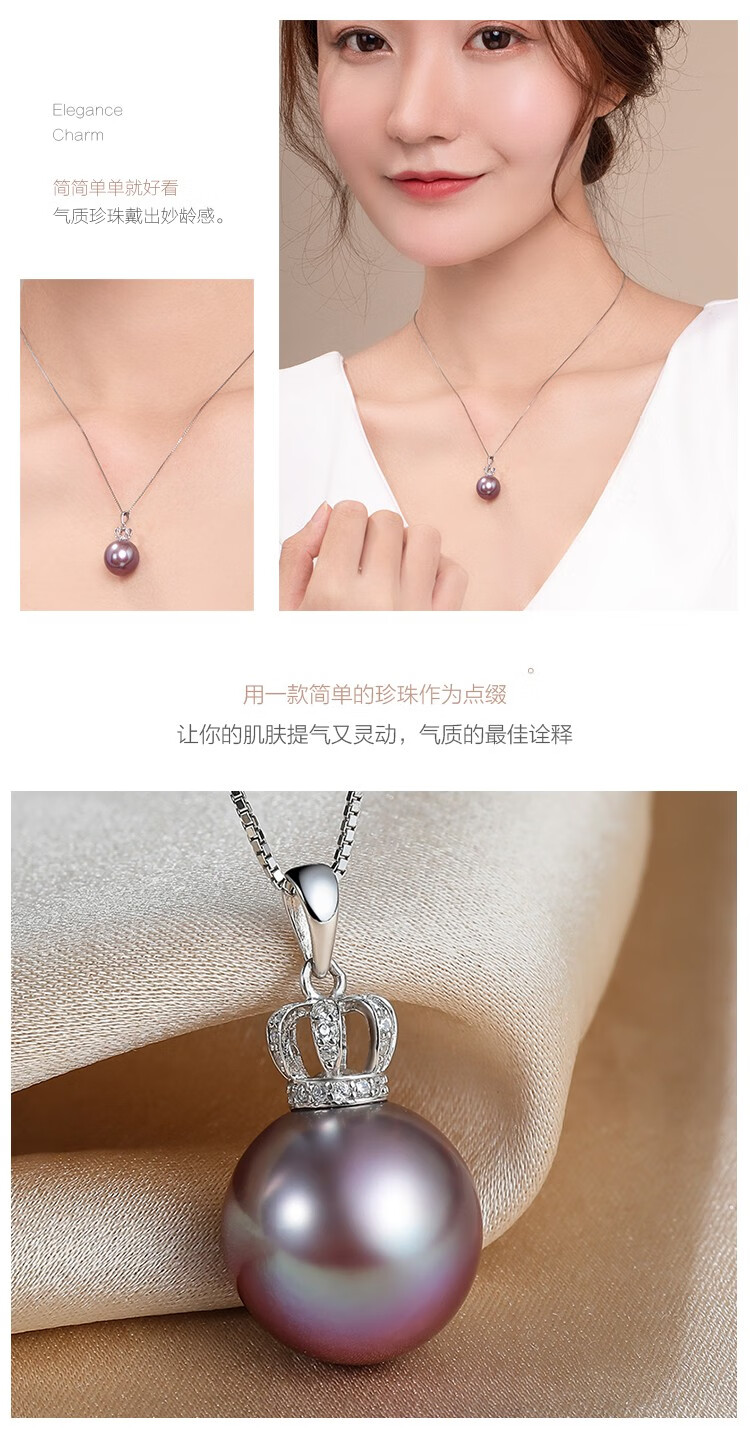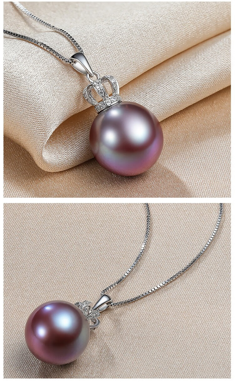 Queen of Pearl Nine Purple Lihuo Freshwater Pearl Pendant Single S925 Silver Pearl Necklace Birthday Gift 12-13mm + S925 Silver Chain + Certificate + Gift Box