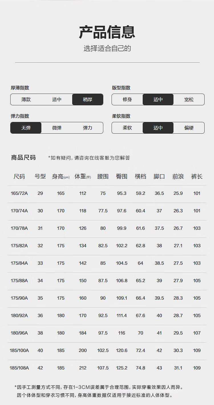China (cm) 160-165/84-86 165-170 / 88-90 167-172 / 92-96 168-173 / 98-102 170-176 / 106-110