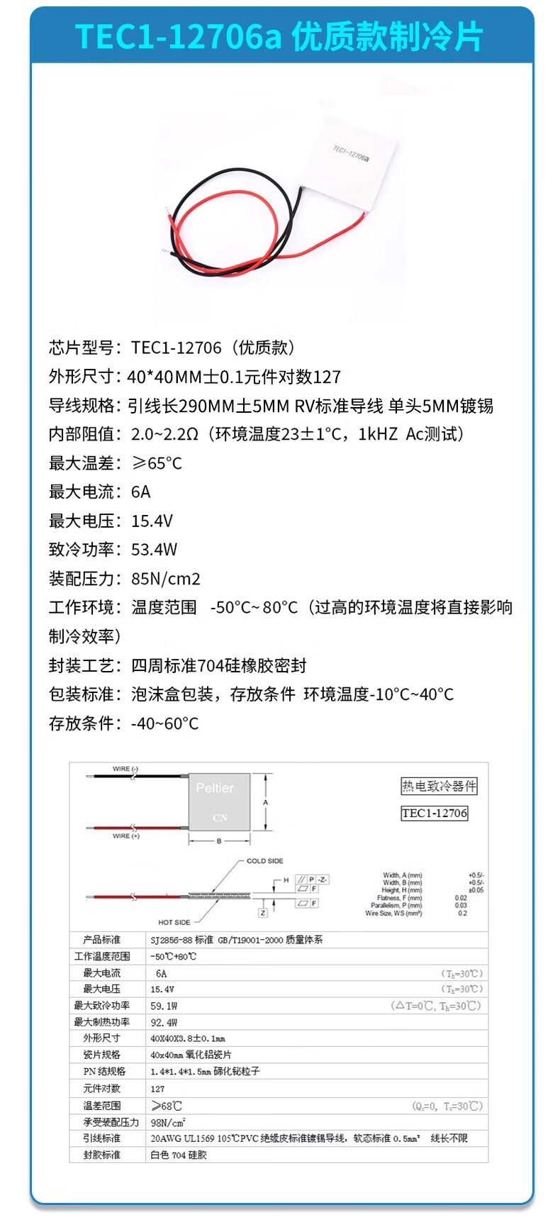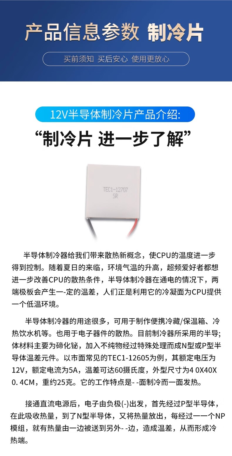 Zave semiconductor refrigeration chip/thermoelectric refrigeration chip/heat pump (12V) 12708 (40*40) high quality model