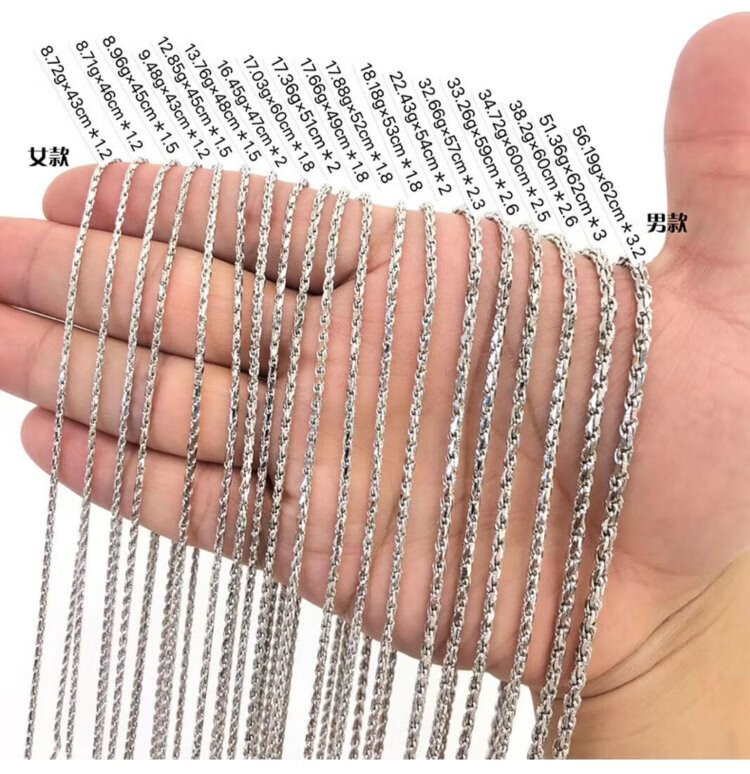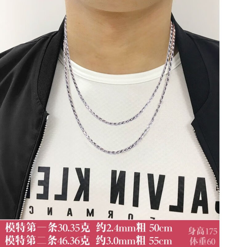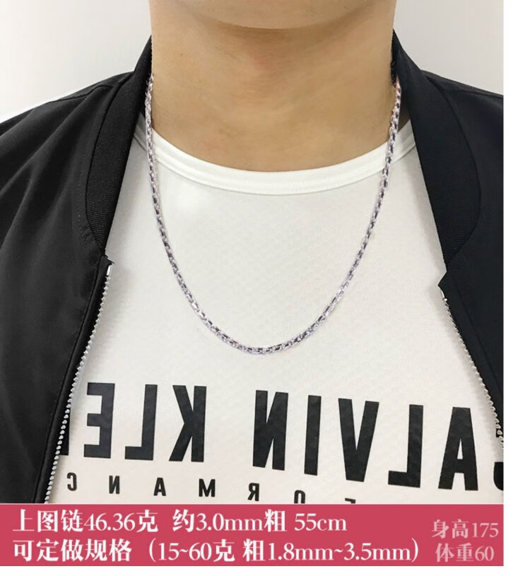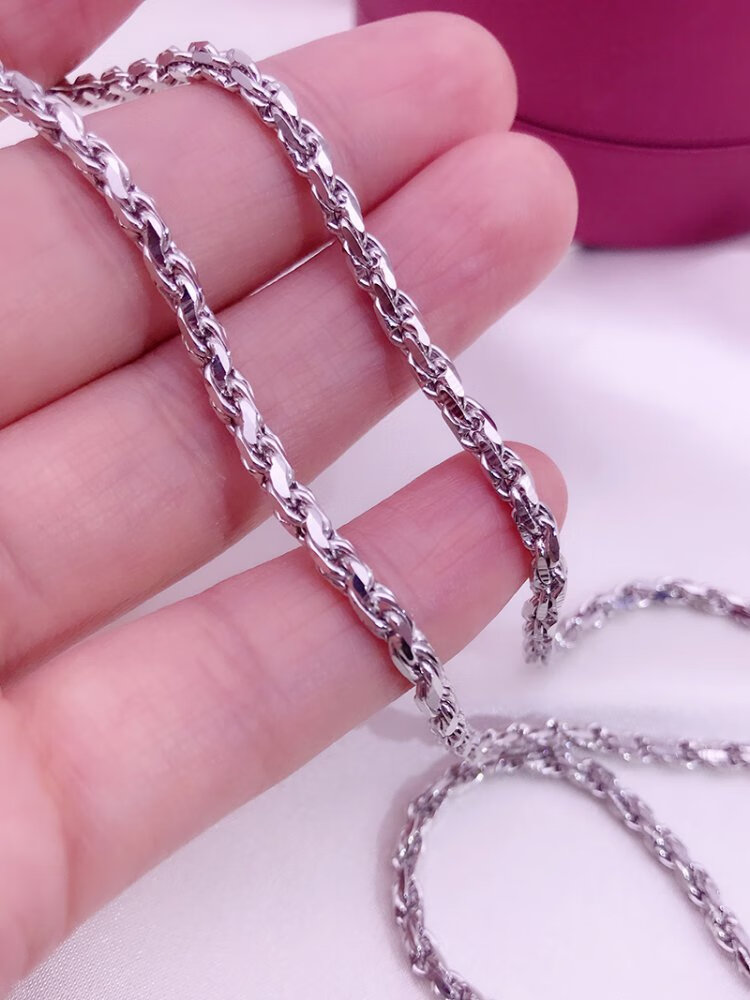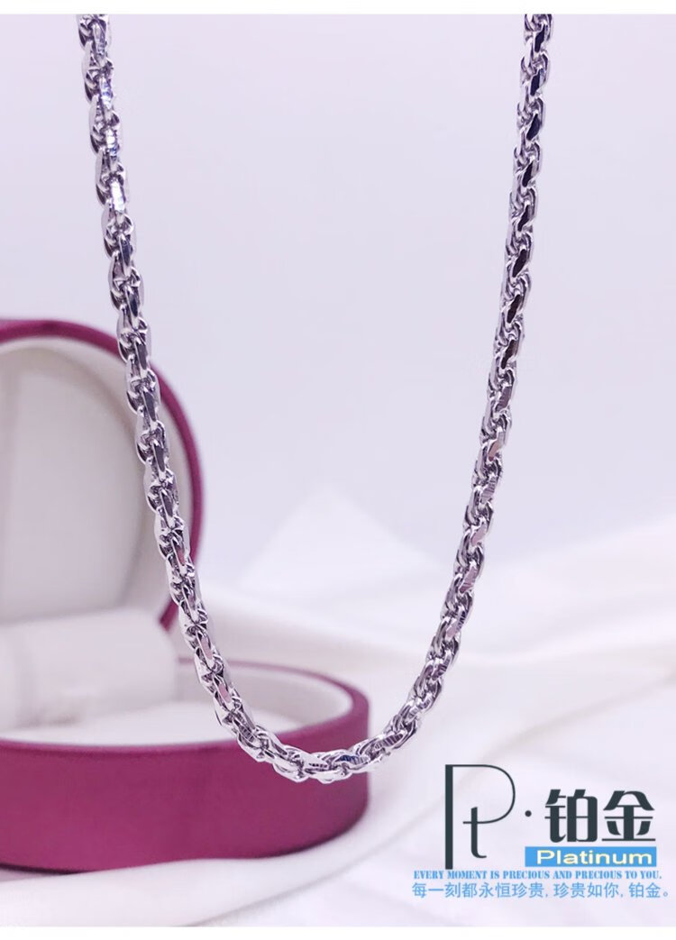 Heye Jewelry Pt950 men's platinum necklace twisted rope chain rope chain hemp rope chain real gold men's platinum couple model 9.30g 43cm 1.4mm thick recommended for women