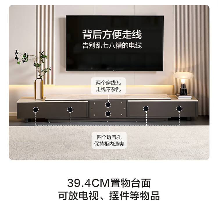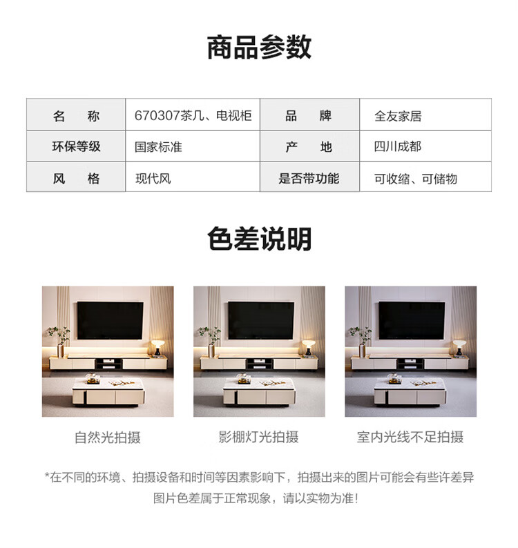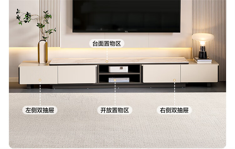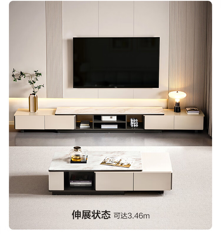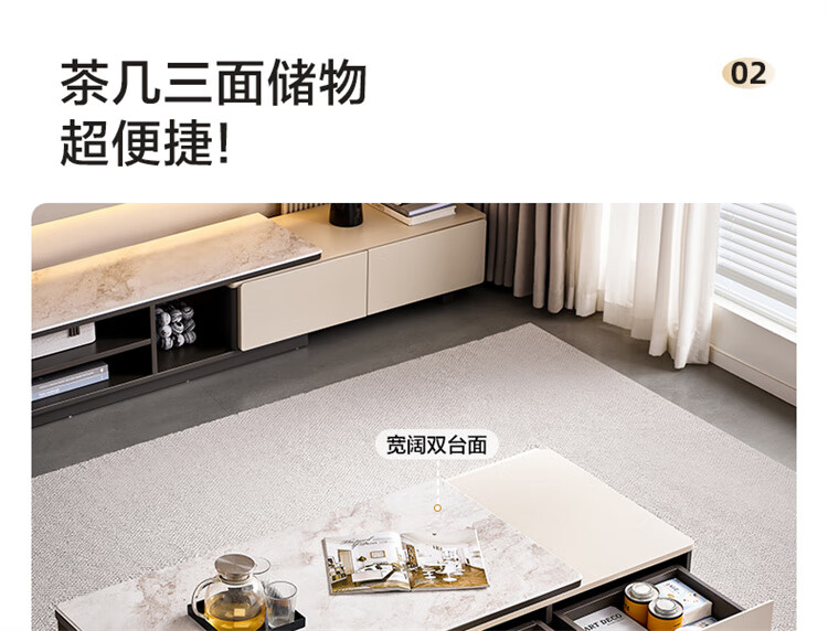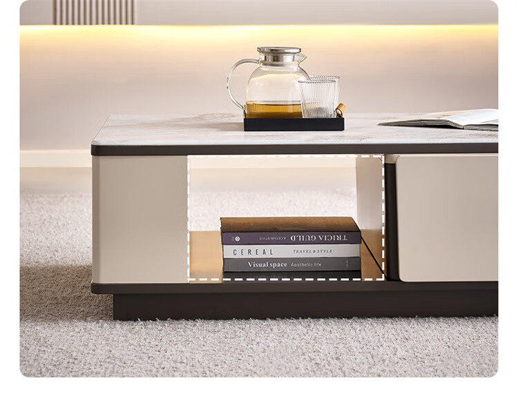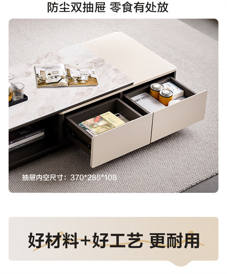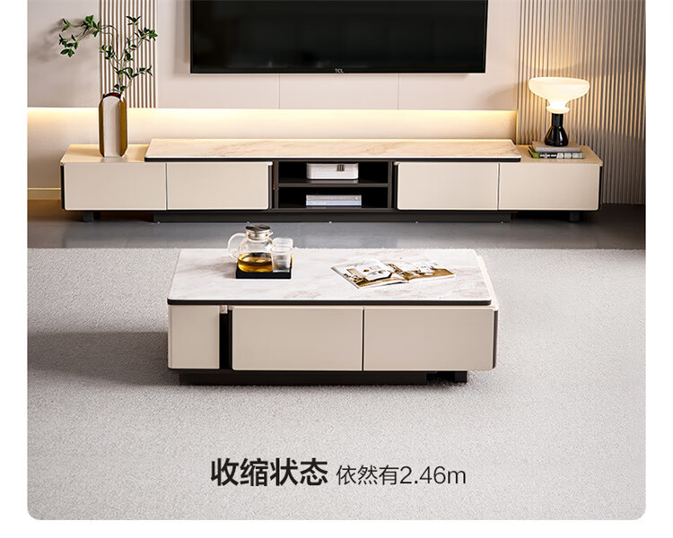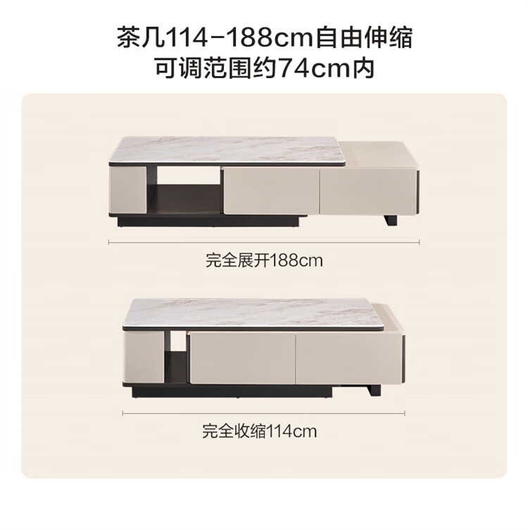 Quanyou Home Tempered Glass Telescopic Coffee Table Living Room Home Modern Simple High-End Atmosphere Storage Storage Cabinet New Style